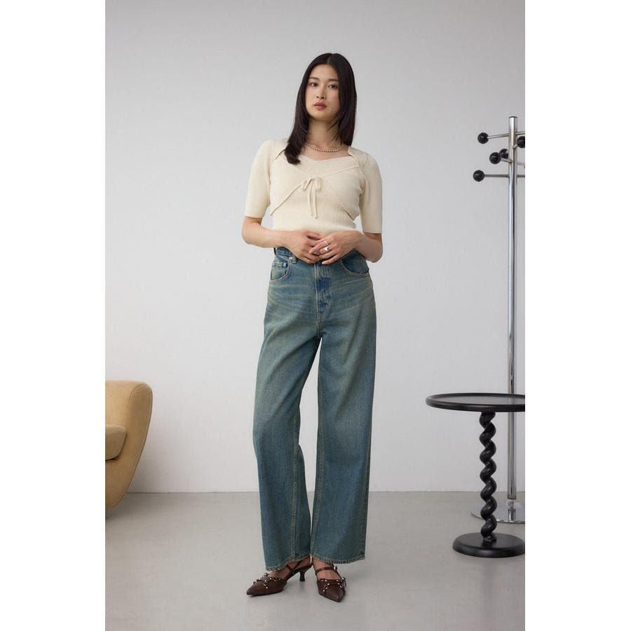 今季はカジュアルなオーバーダイ加工のデニム(250IAC11-037K AZUL DENIM オーバーダイワイドストレート)との合わせがトレンドライクなスタイルに仕上がりおすすめです。