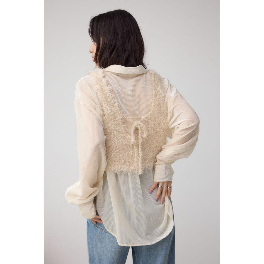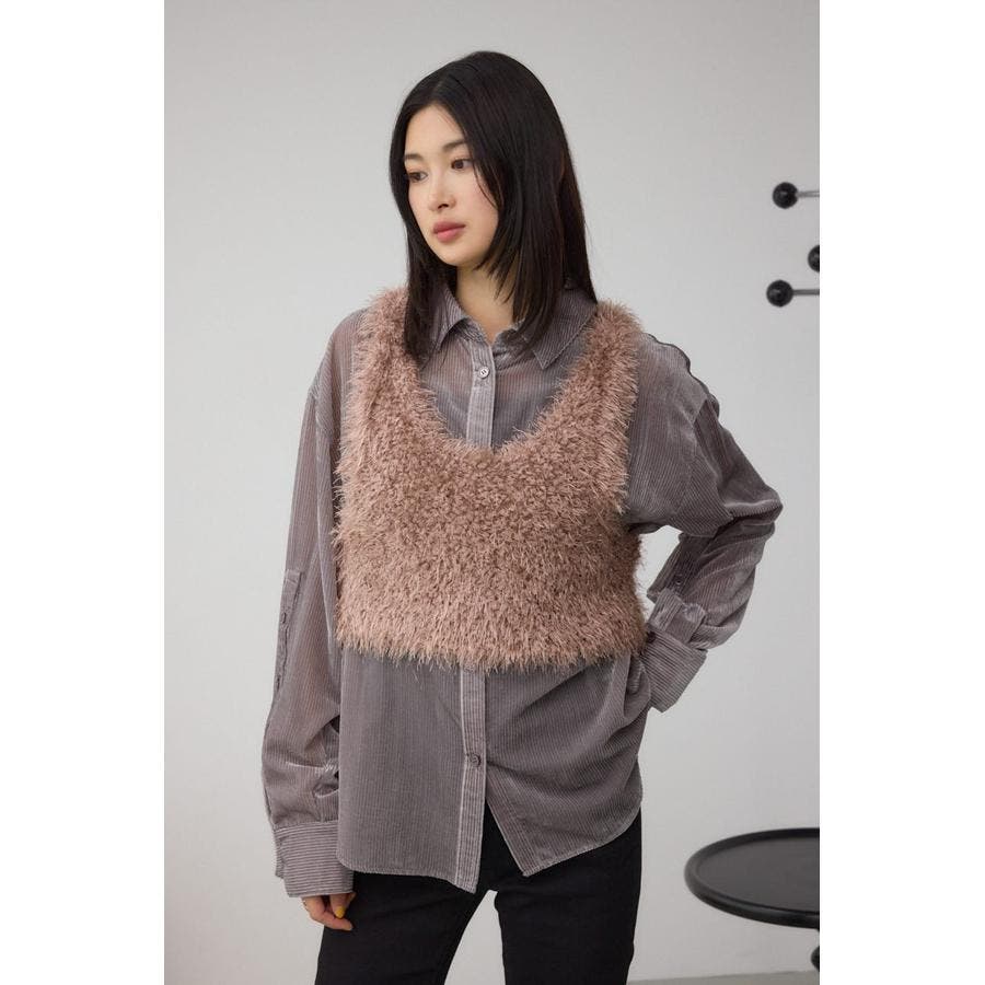 250IAB30-028G シアーコーデュロイ袖スリットボタンシャツとのレイヤードスタイルがおすすめです。