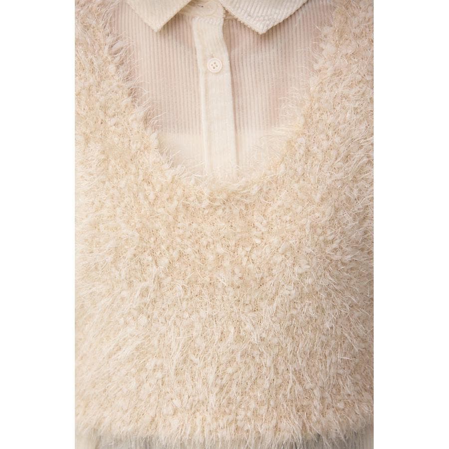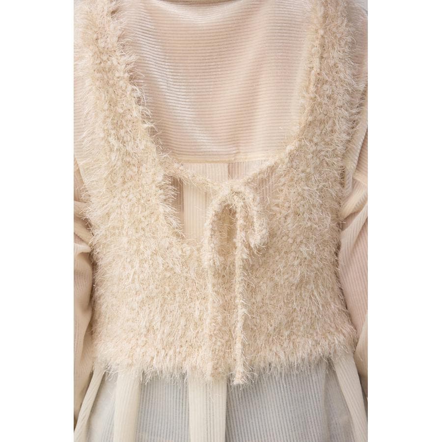 ぽこぽことした表面感のある糸と、ふっくら膨らみのある糸ミックスされたファンシーヤーンを使用したニットベストです。