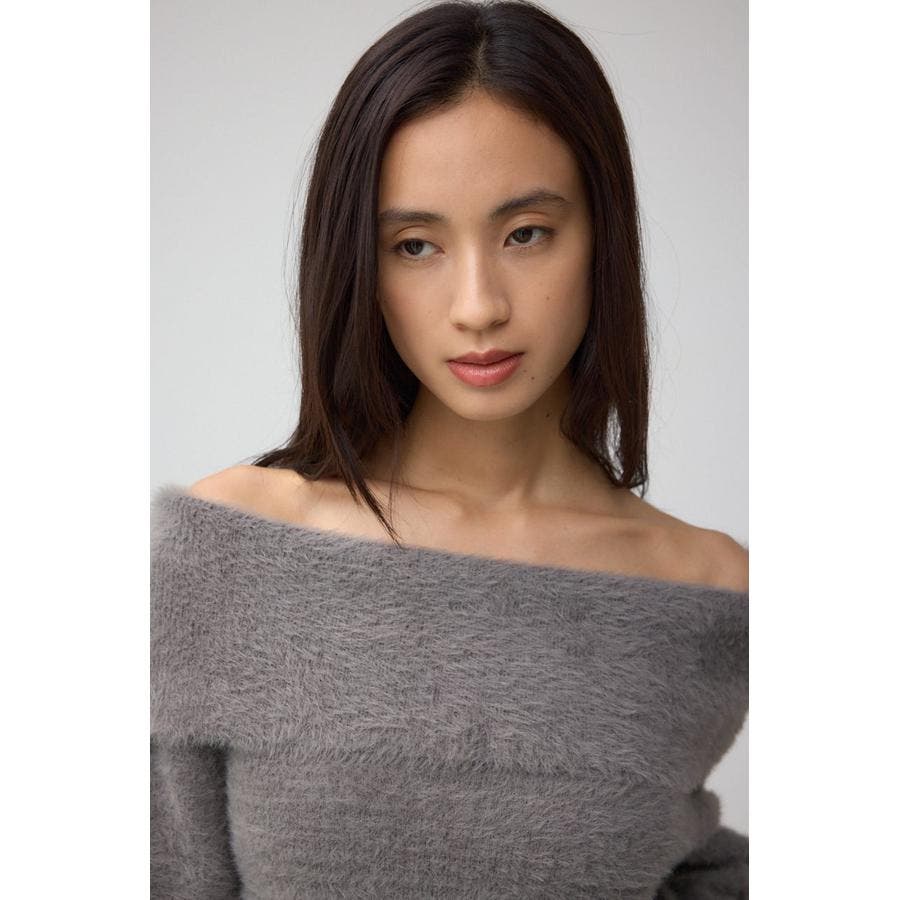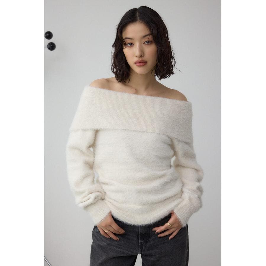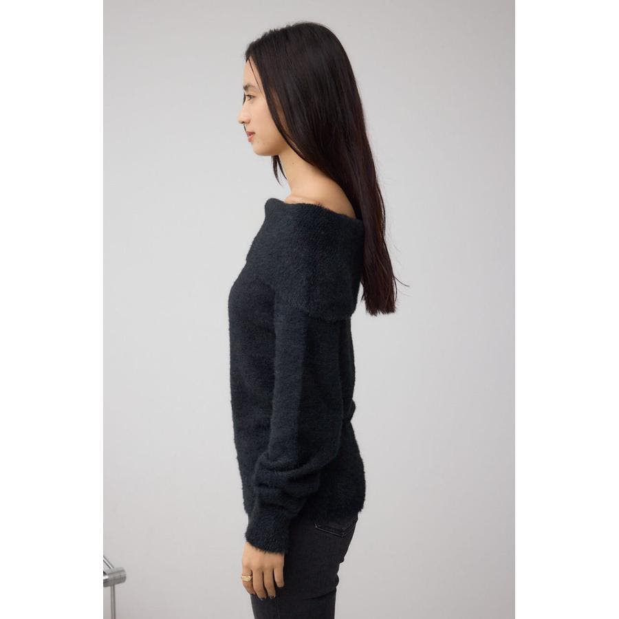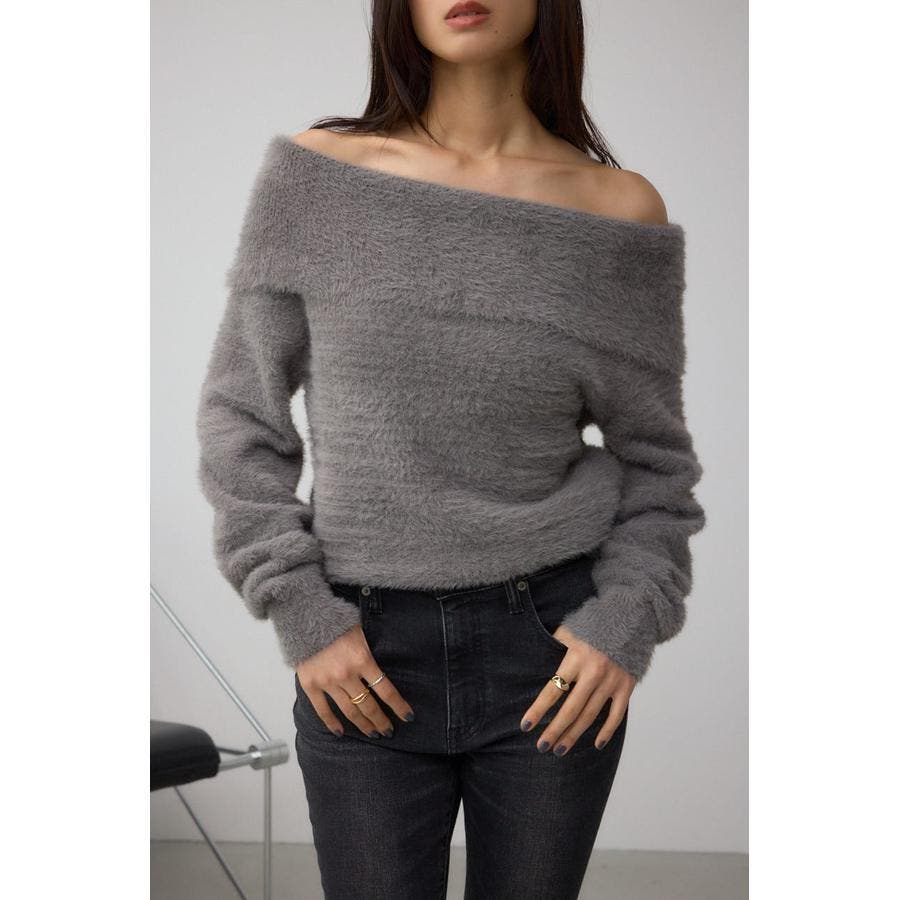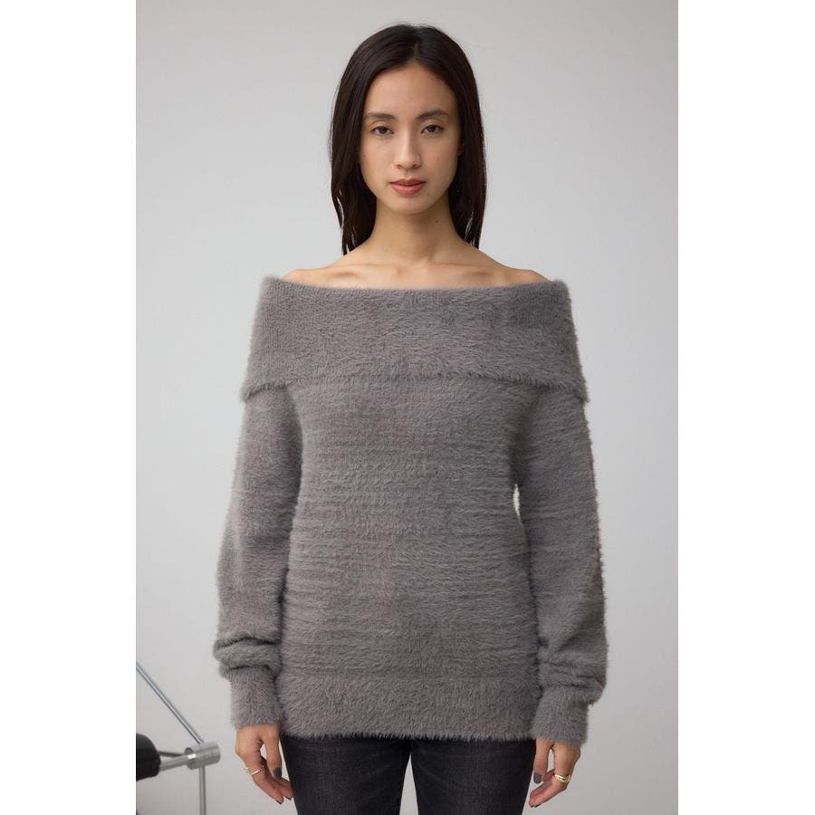 モヘヤの様な毛足のある糸を使用したニットプルオーバー。