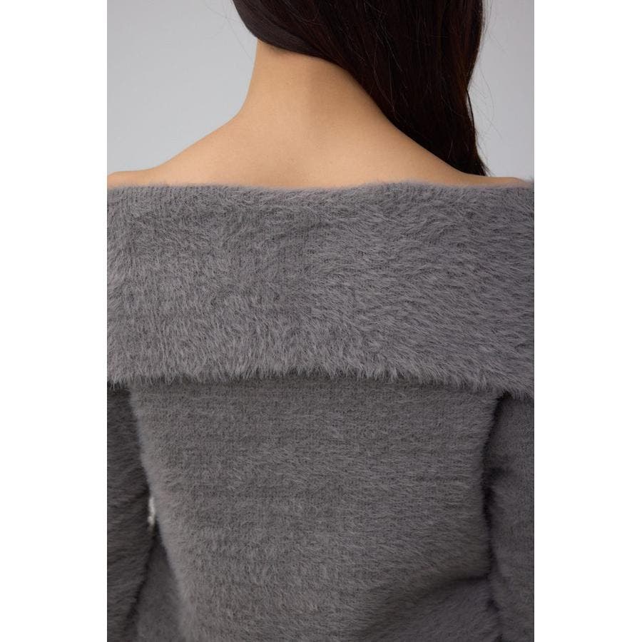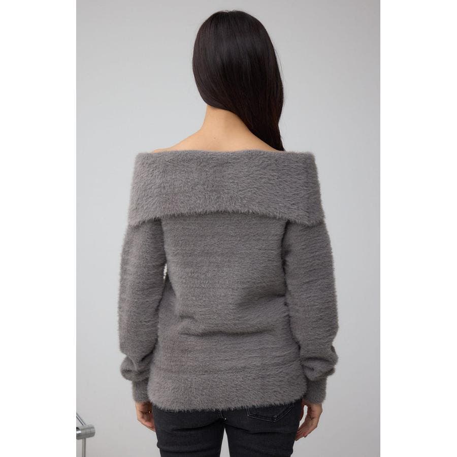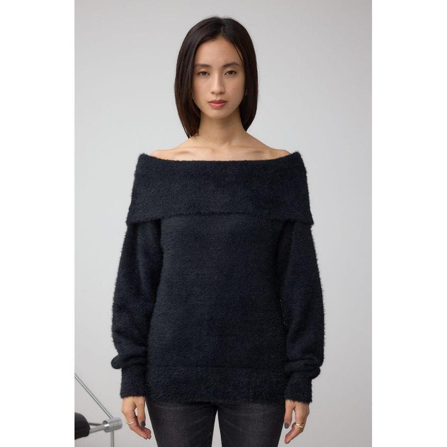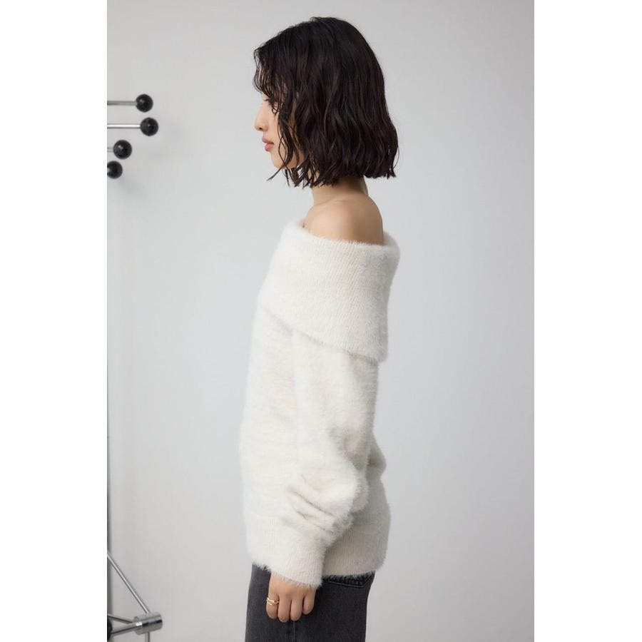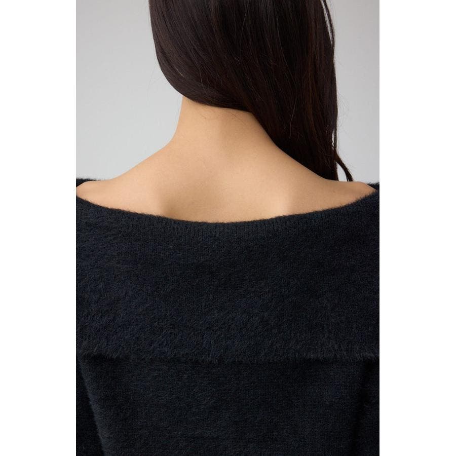 モヘヤの様な毛足のある糸を使用したニットプルオーバー。