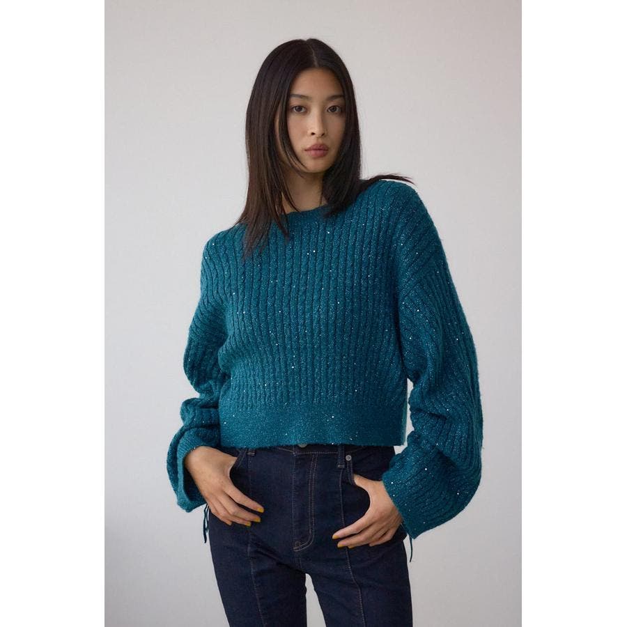 ドロストリングスパンコールラメニット