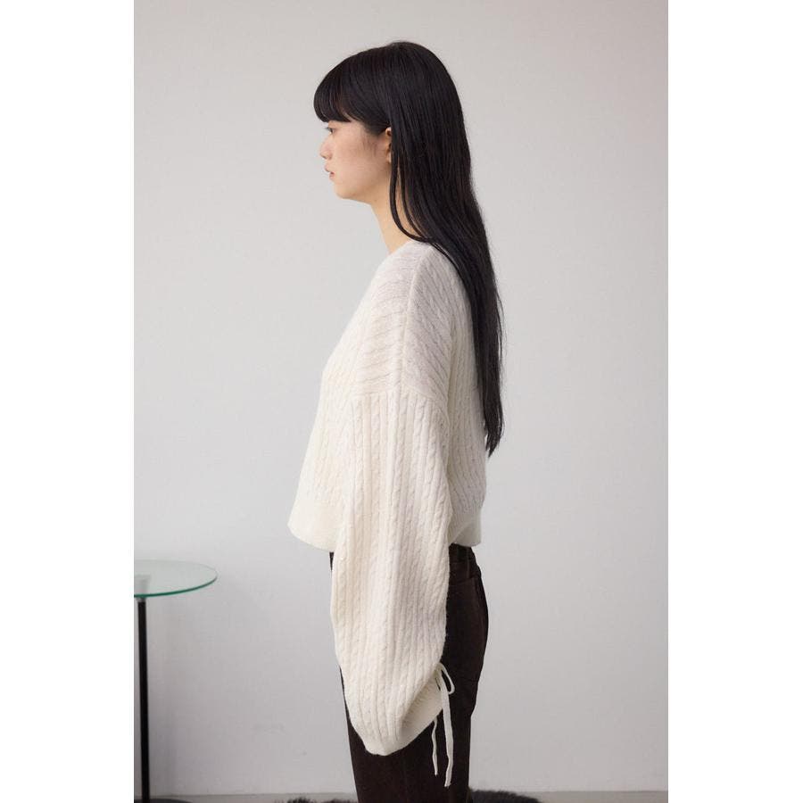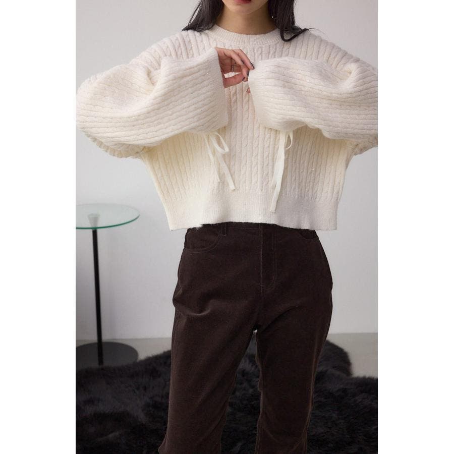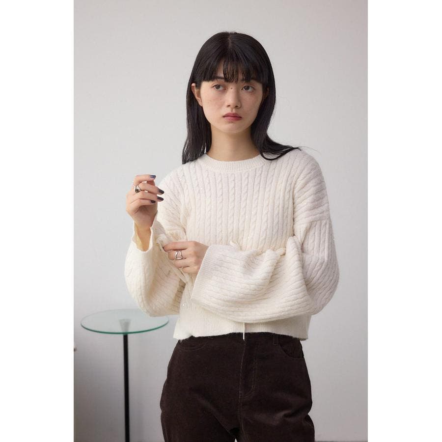 大胆な袖のドロストデザインとボリューム感のある袖が目を惹くニットです。