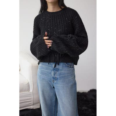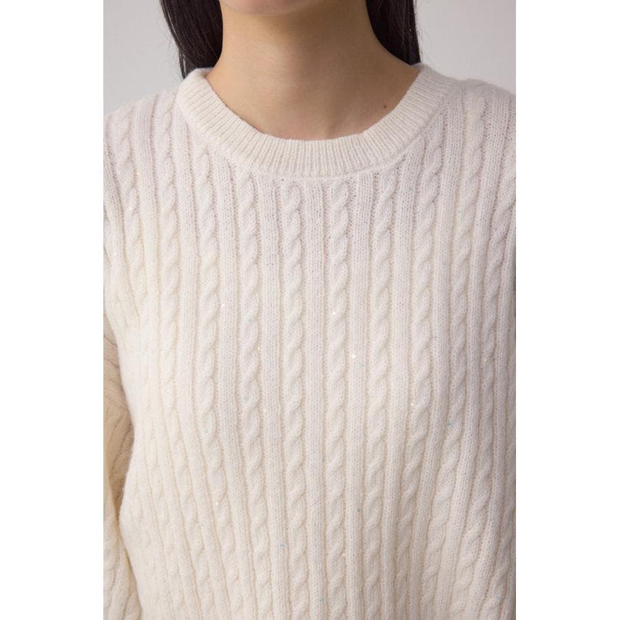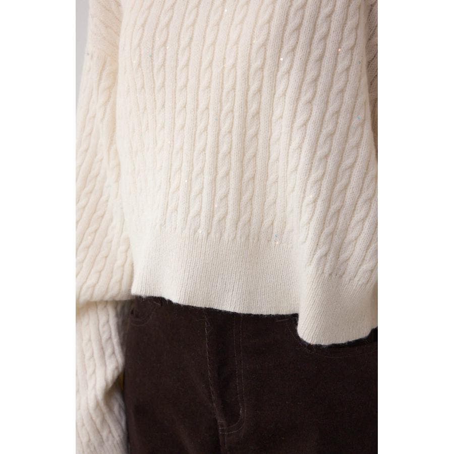 ラメ入りの少し毛足のある糸とスパンコール入りの糸を掛け合わせたニット素材。