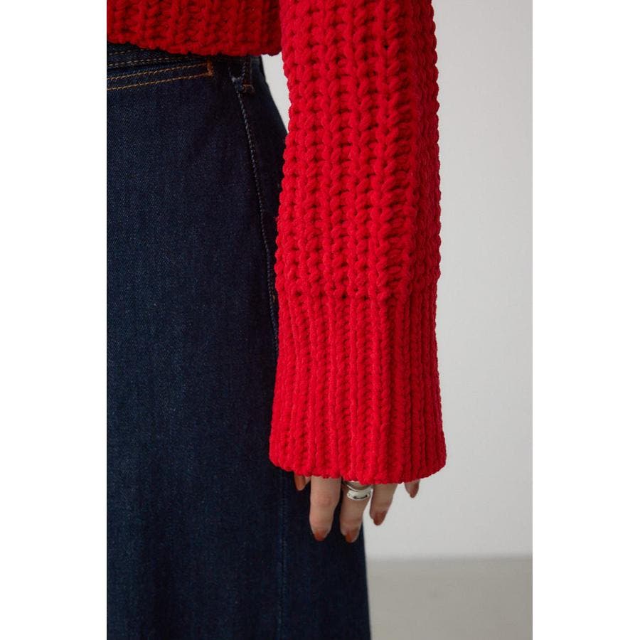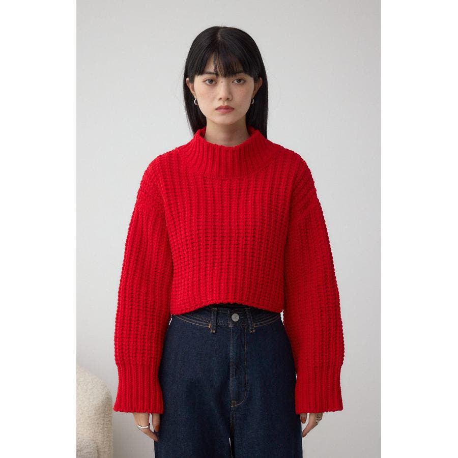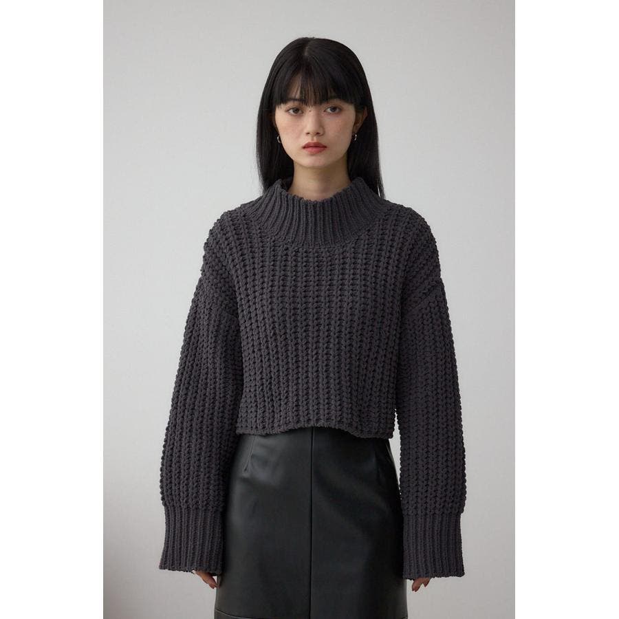 マットモールを使用したざっくりとした見え方が可愛いクロップドニットです。