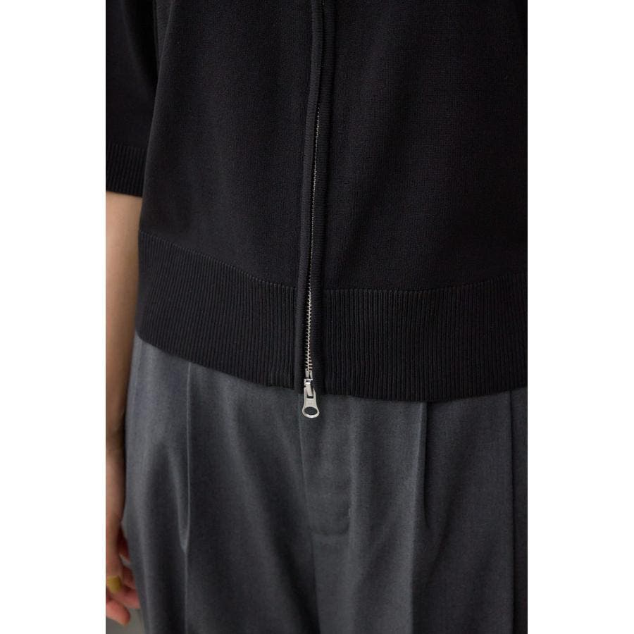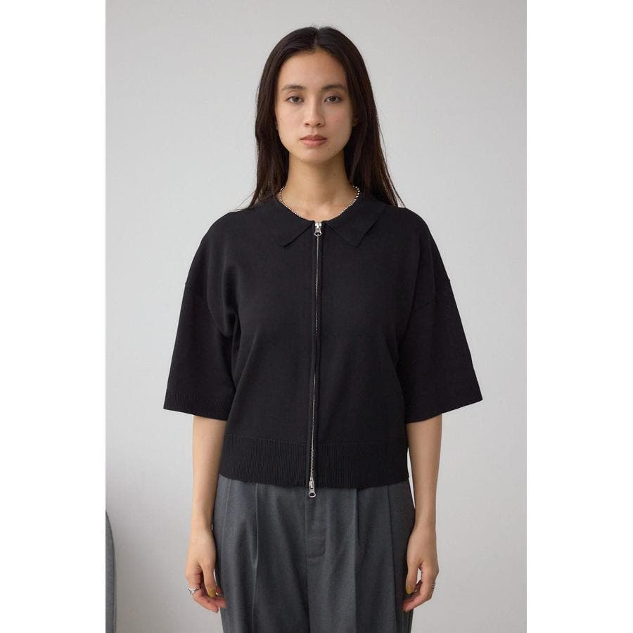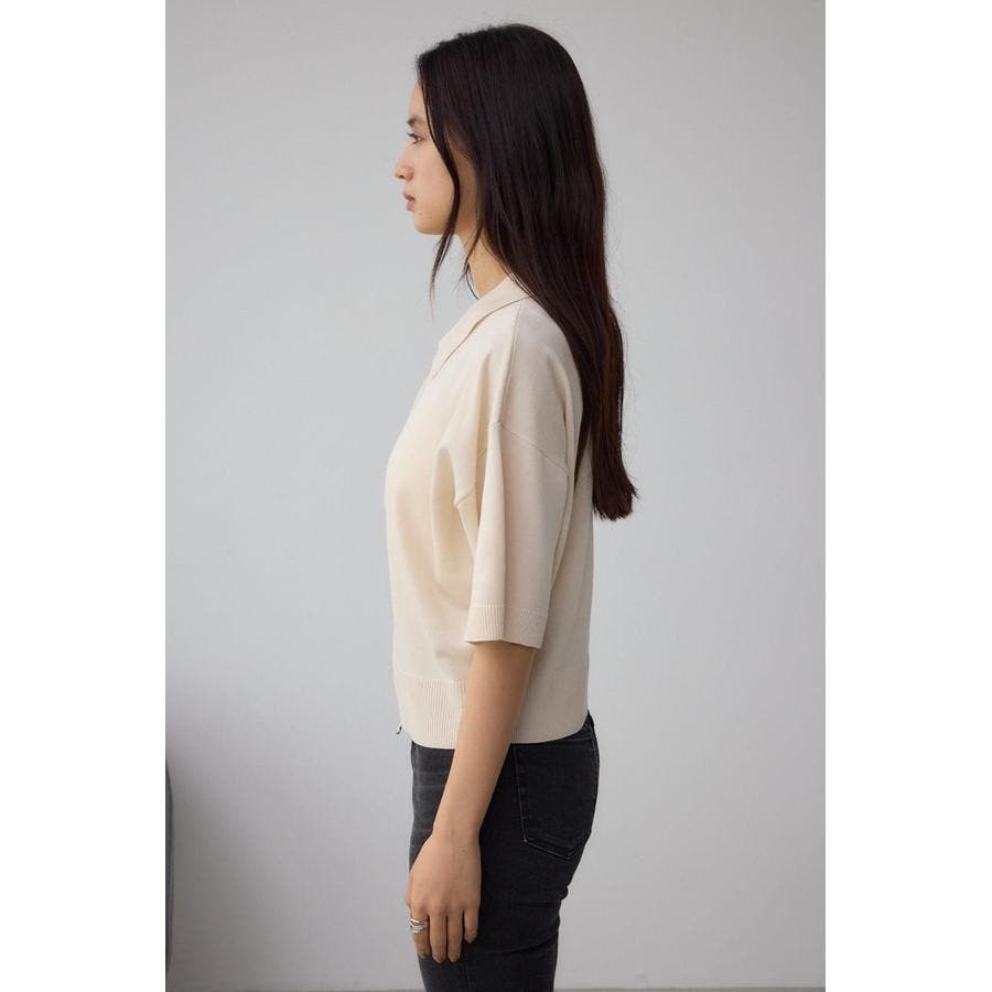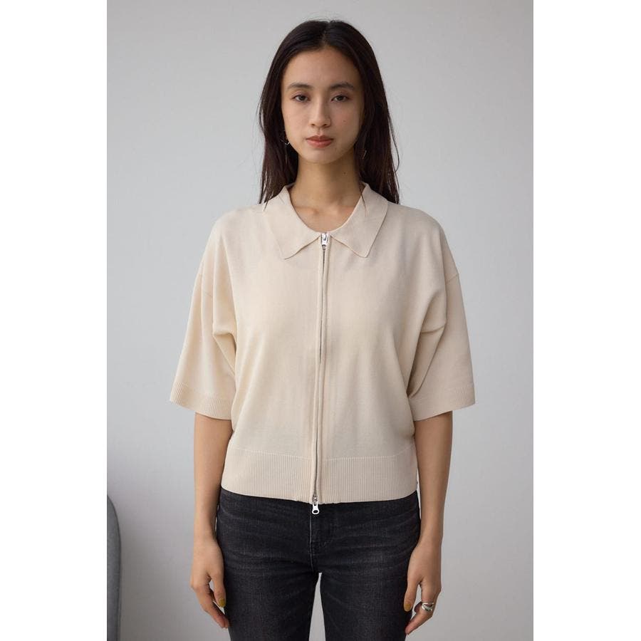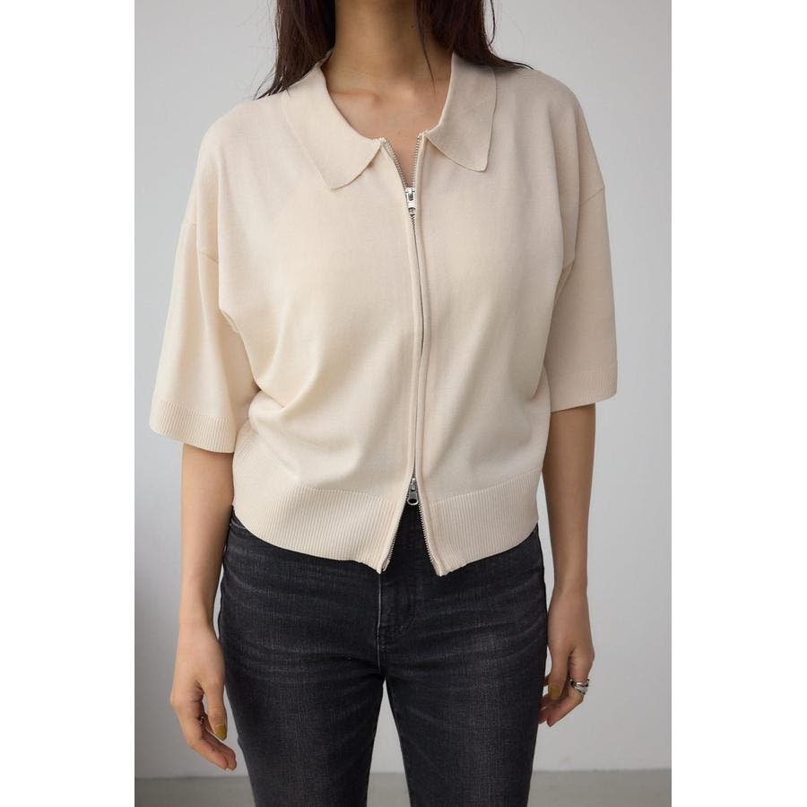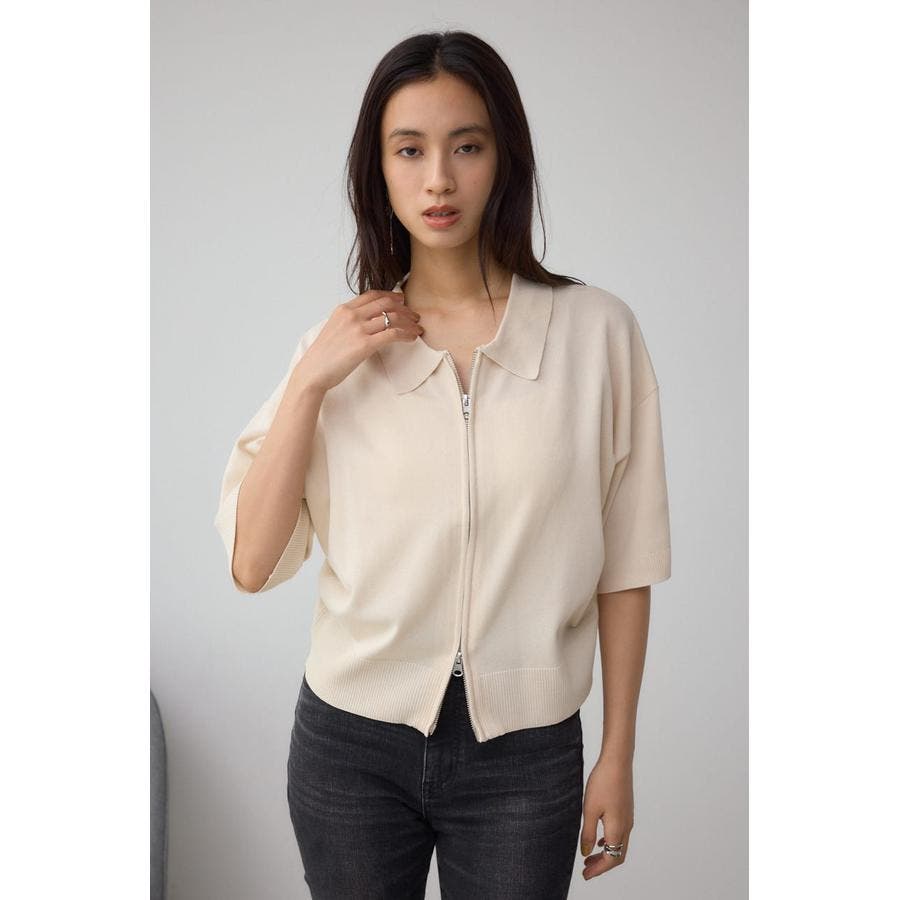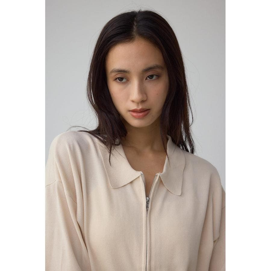 コロンとしたシルエットにエッジのきいた襟とWジップの組み合わせが絶妙なバランスのいいポロニット。