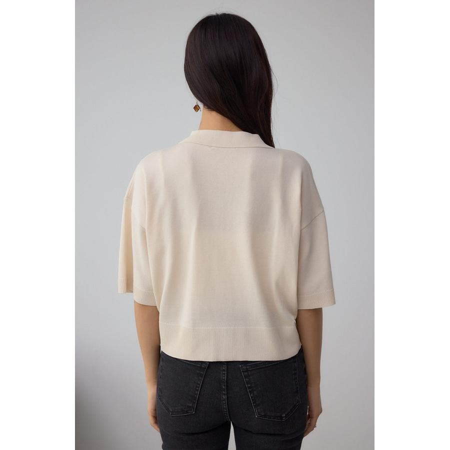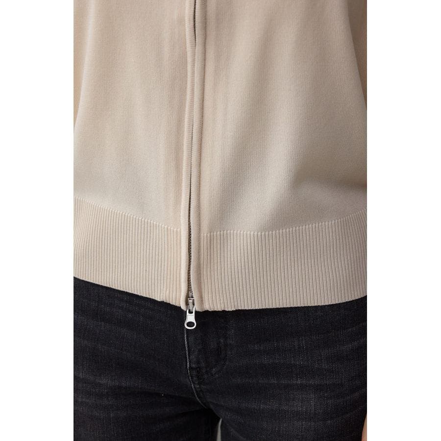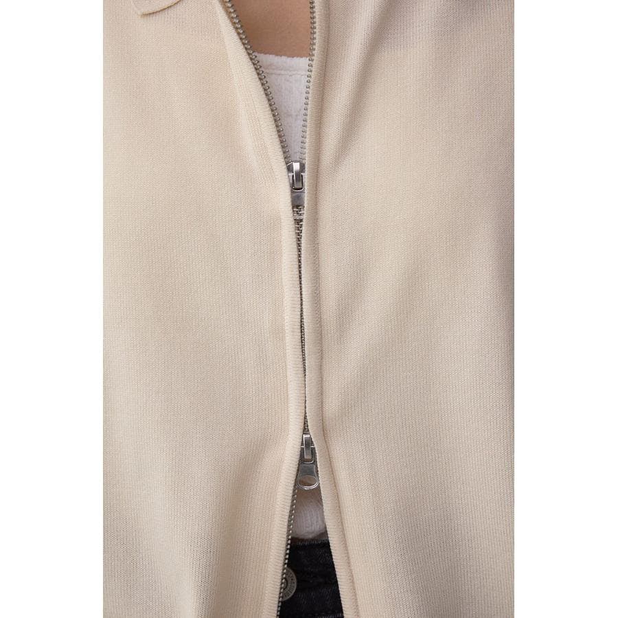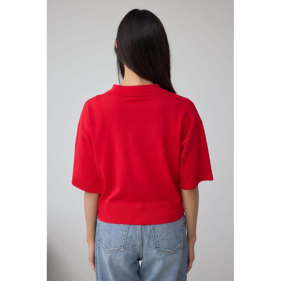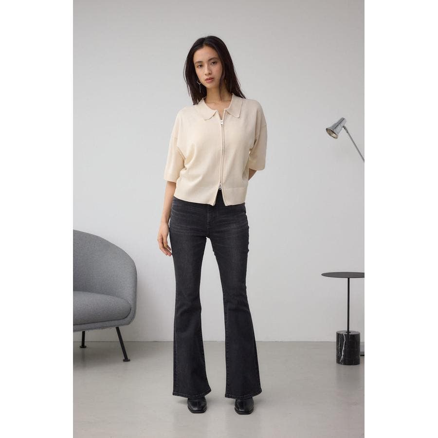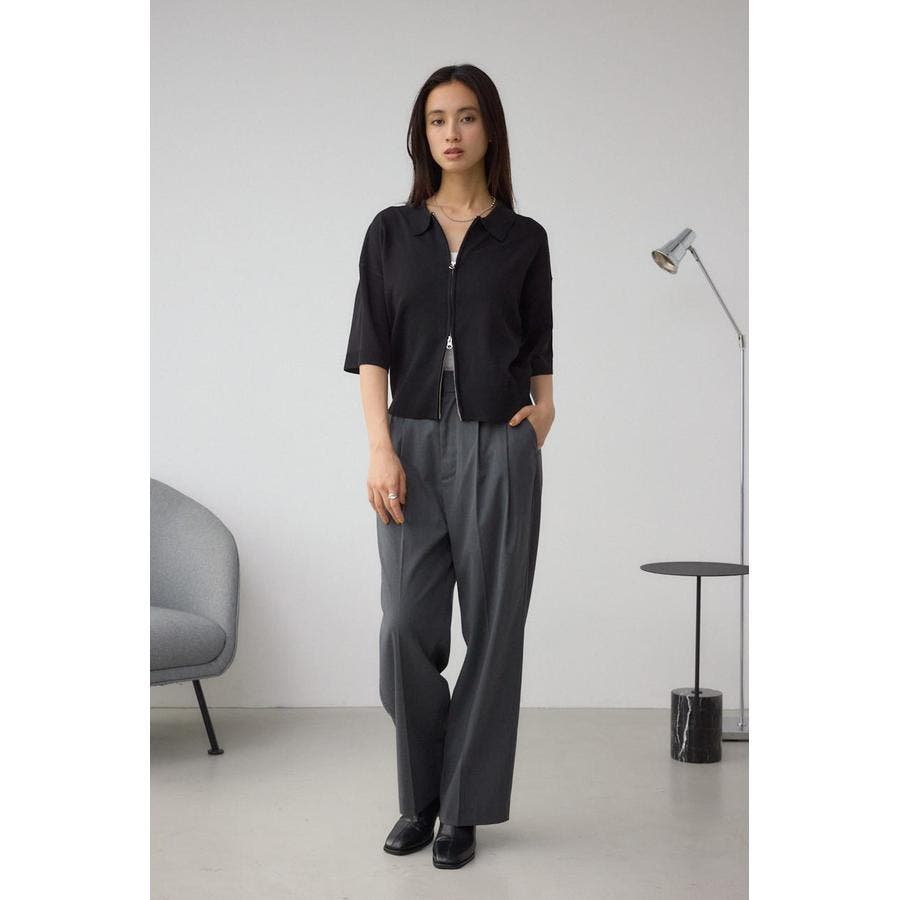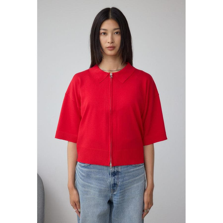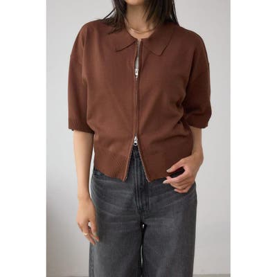 コロンとしたシルエットにエッジのきいた襟とWジップの組み合わせが絶妙なバランスのいいポロニット。