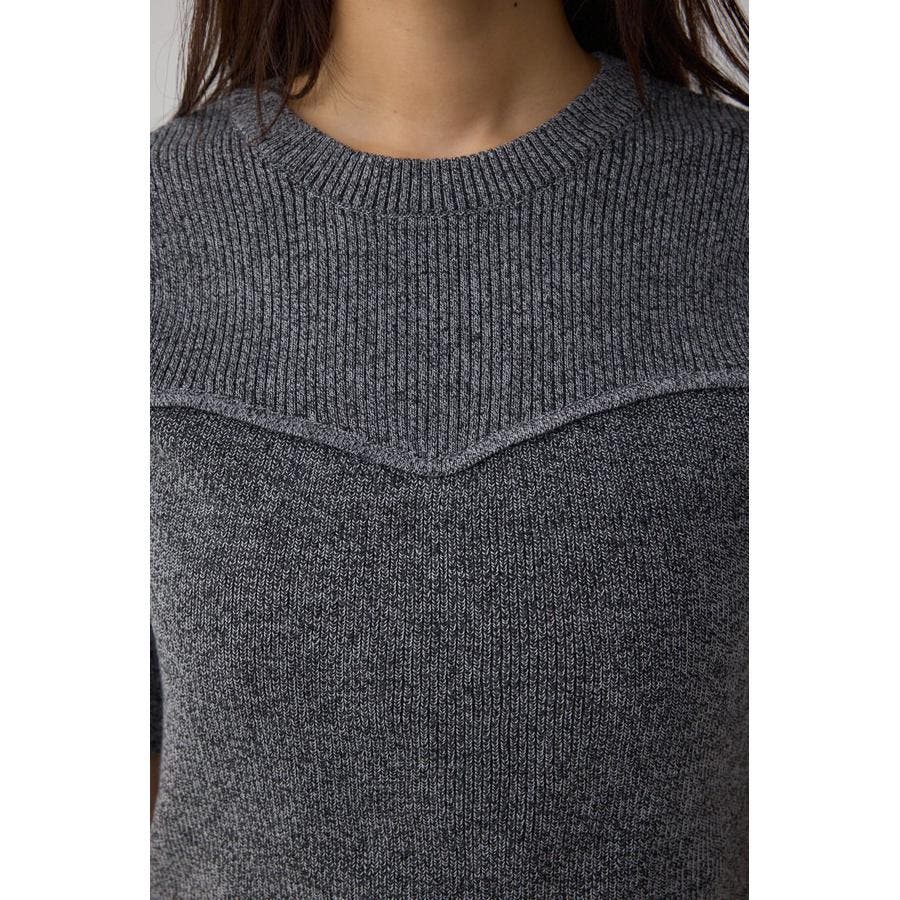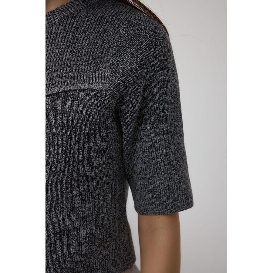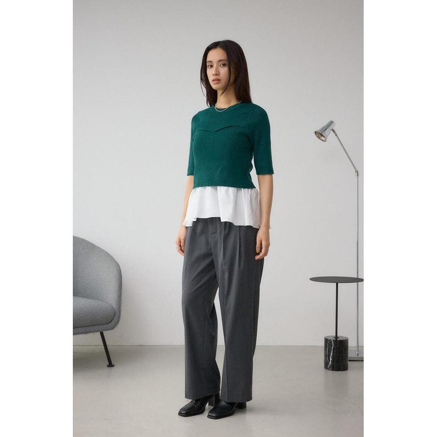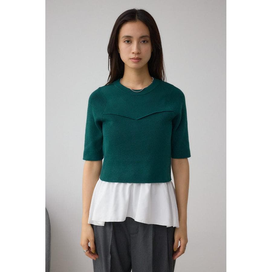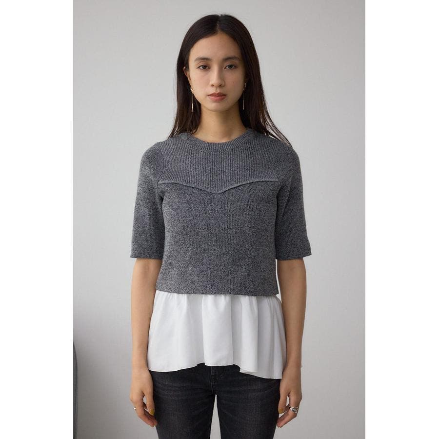 インナーのペプラムデザインタンクトップと5分袖のデザインリブニットがセットになったニットです。
