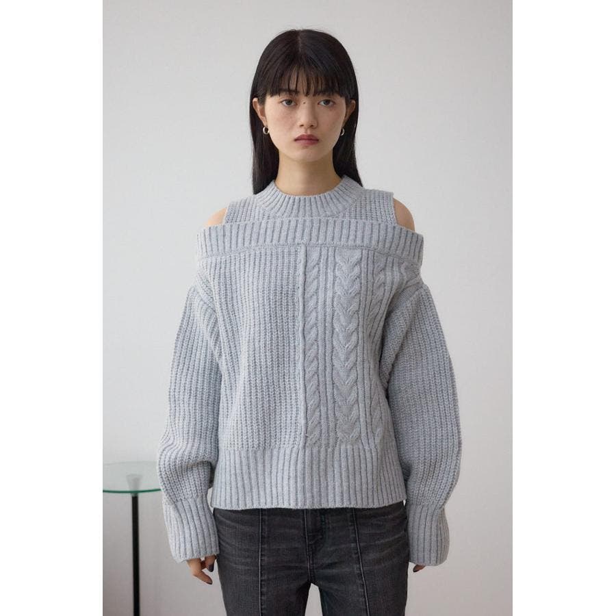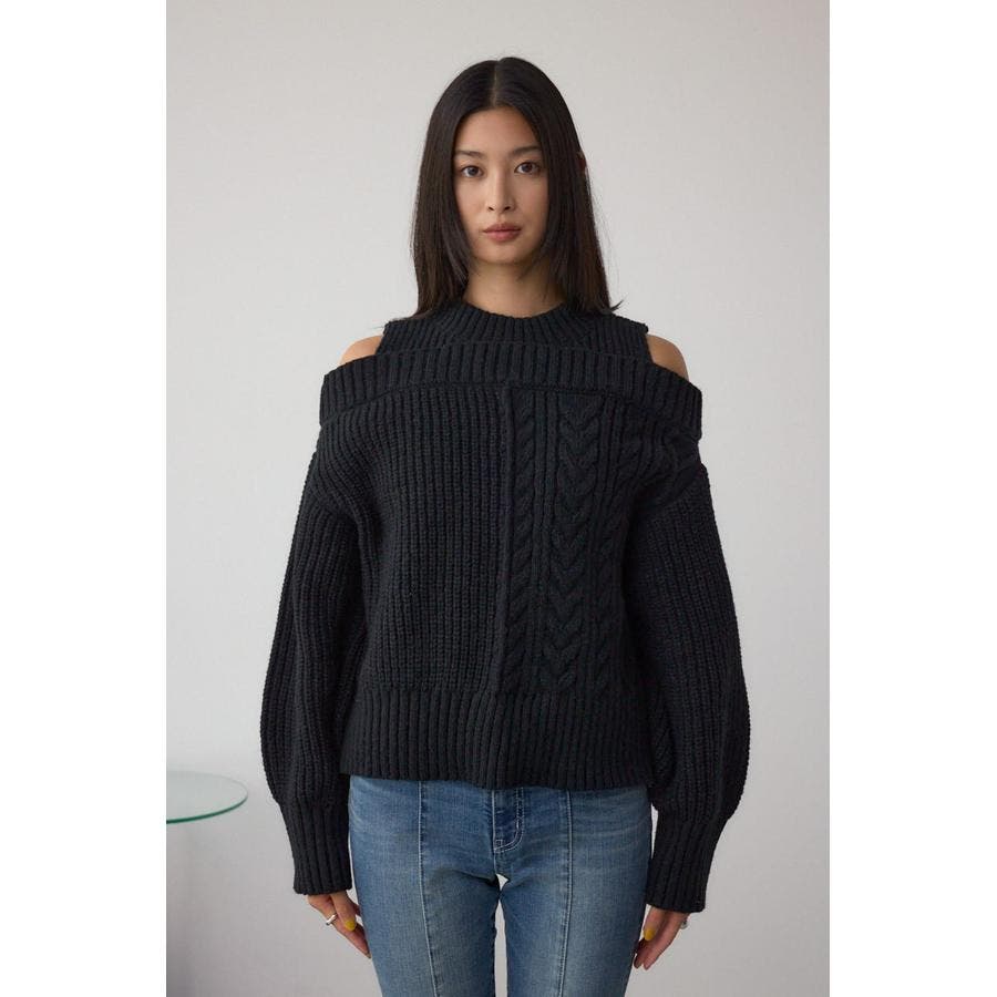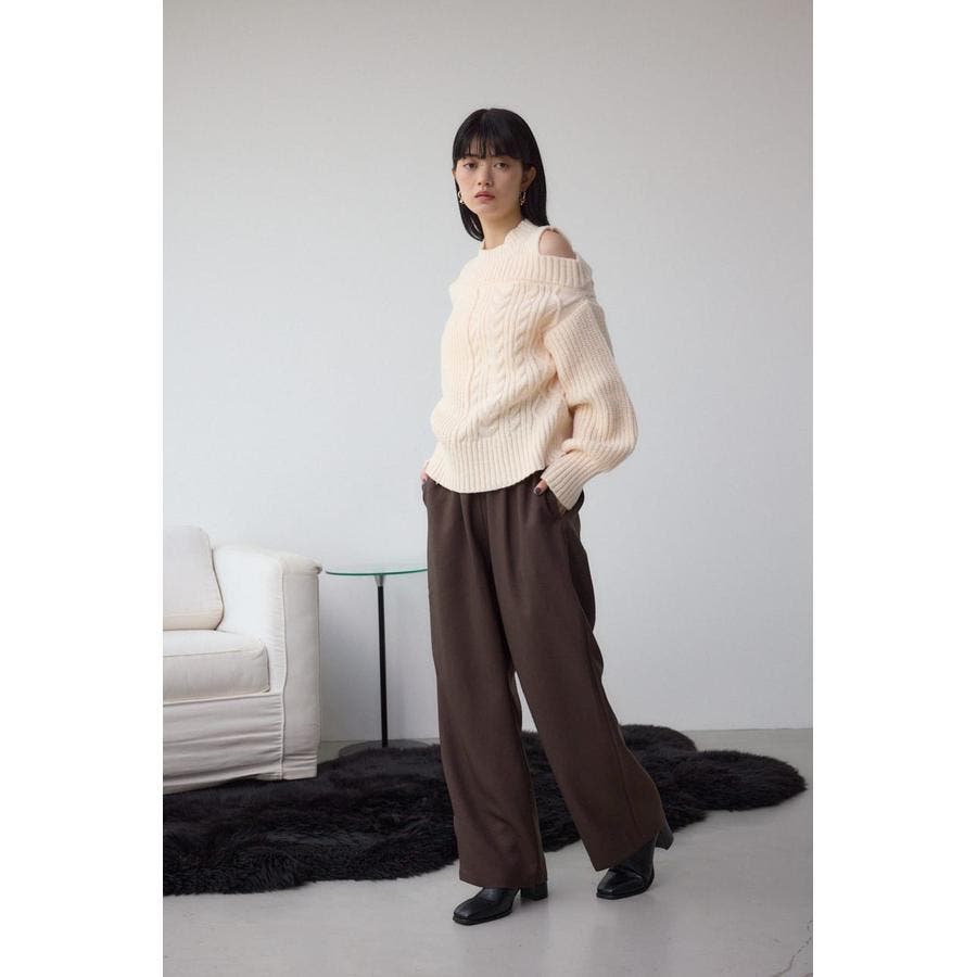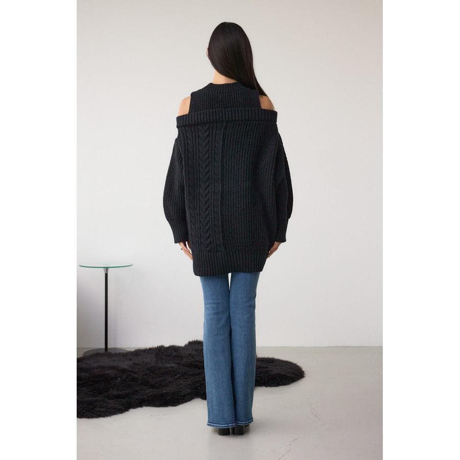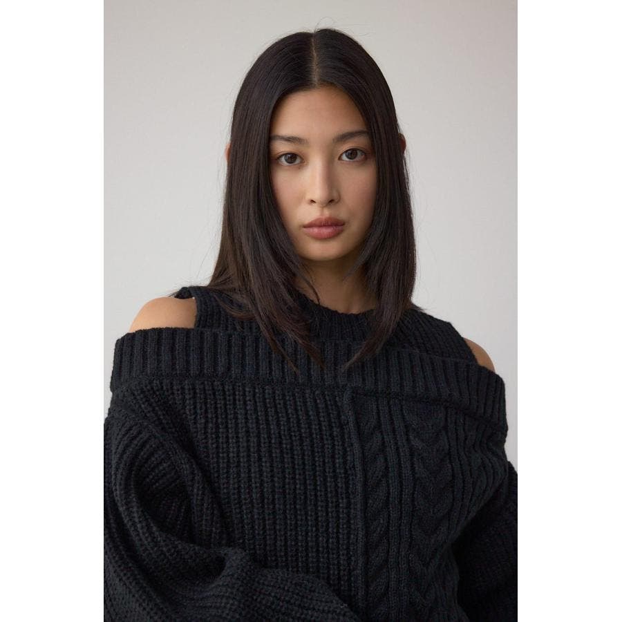 オープンショルダーのデザインで、ざっくりとしたニットも抜け感のある着こなしに仕上がります。