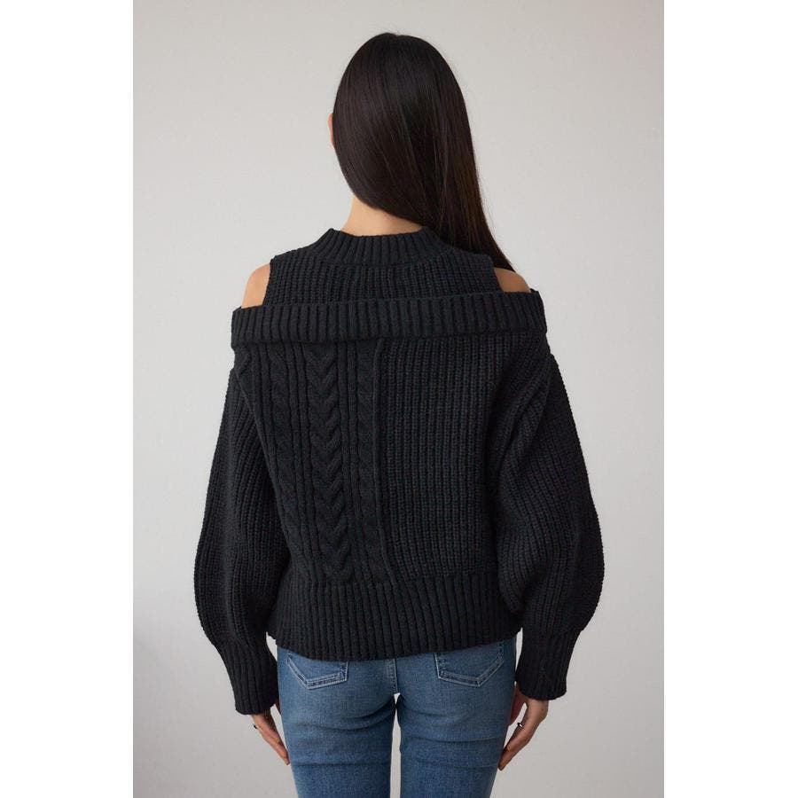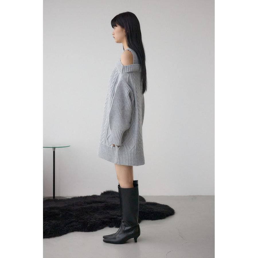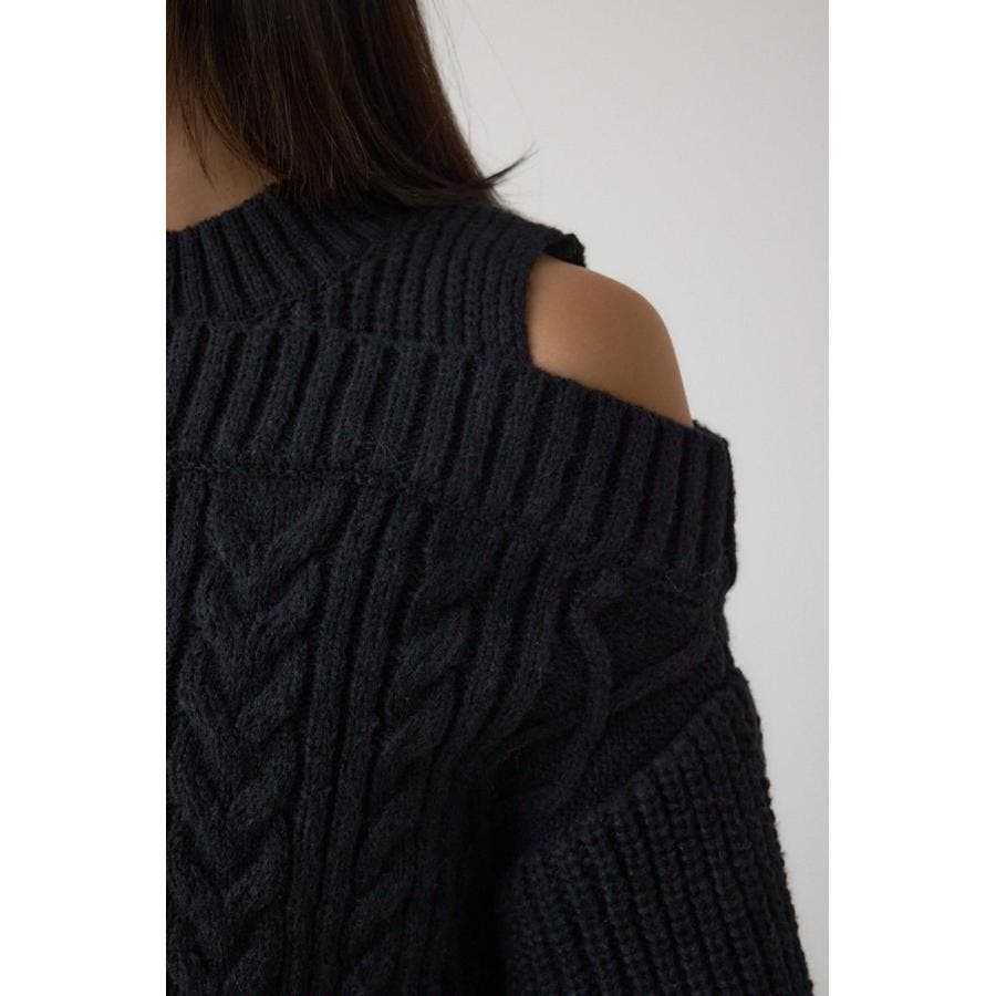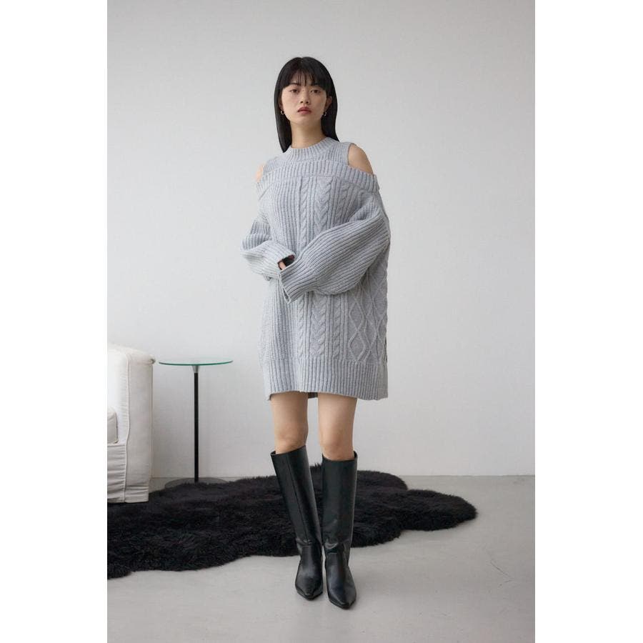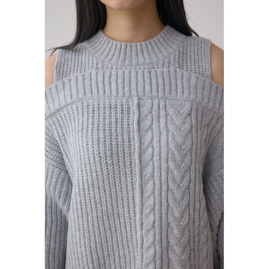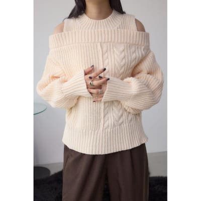 オープンショルダーのデザインで、ざっくりとしたニットも抜け感のある着こなしに仕上がります。