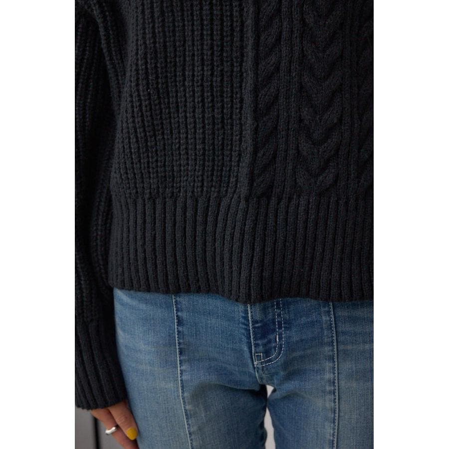 少し毛羽感のある温かみのある糸を使用し、ややしっかりめのケーブル柄で仕上げています。