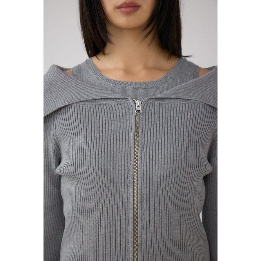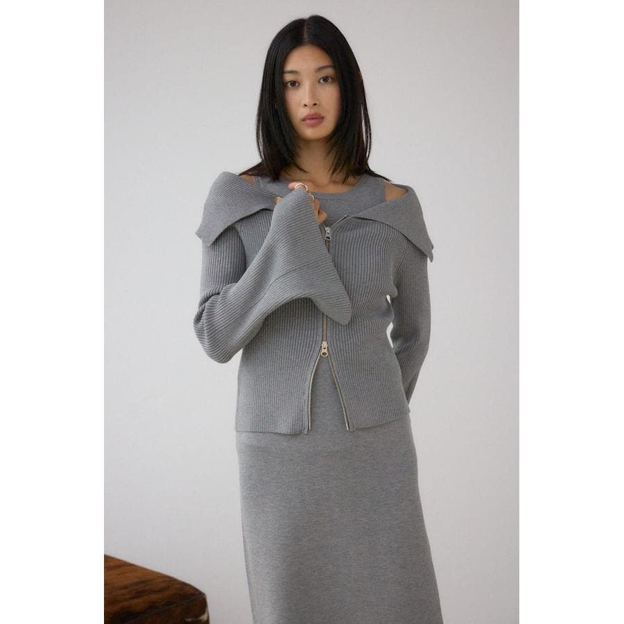 ニットタンクとビッグカラーのジップカーディガンがセットになった、セットで着られるレイヤードワンピースです。