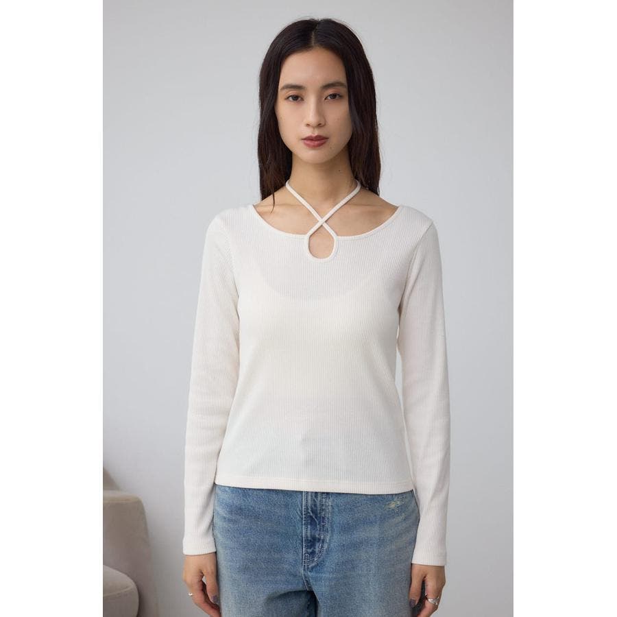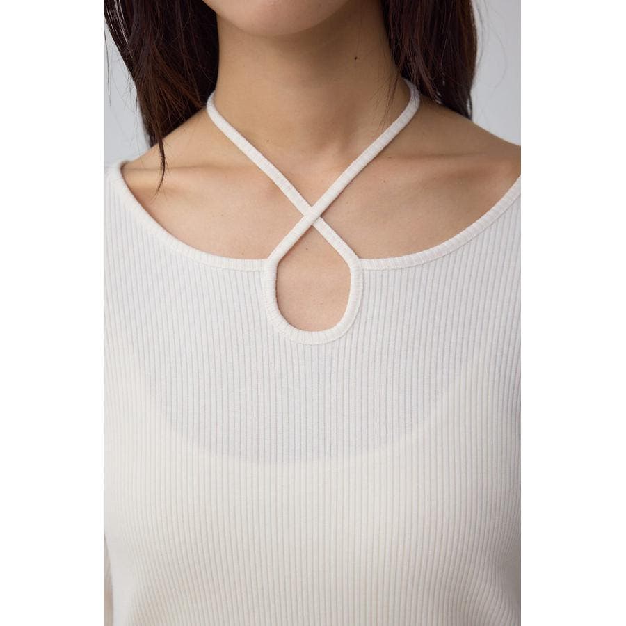 トレンドのチョーカーデザインのリブトップス。