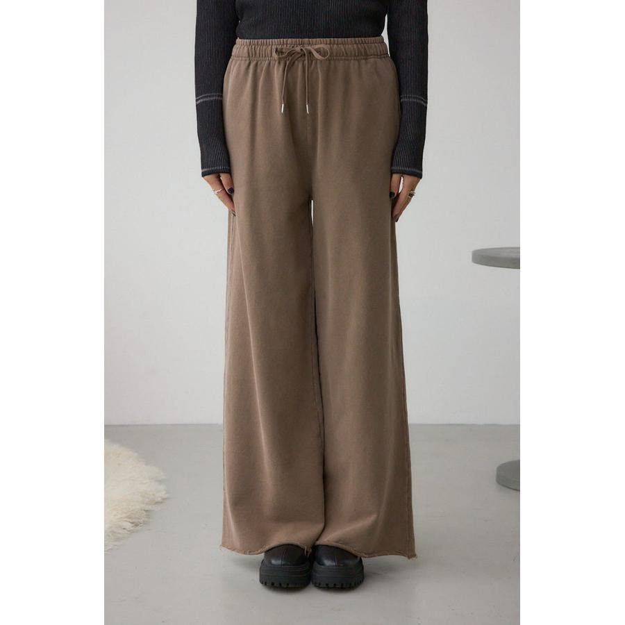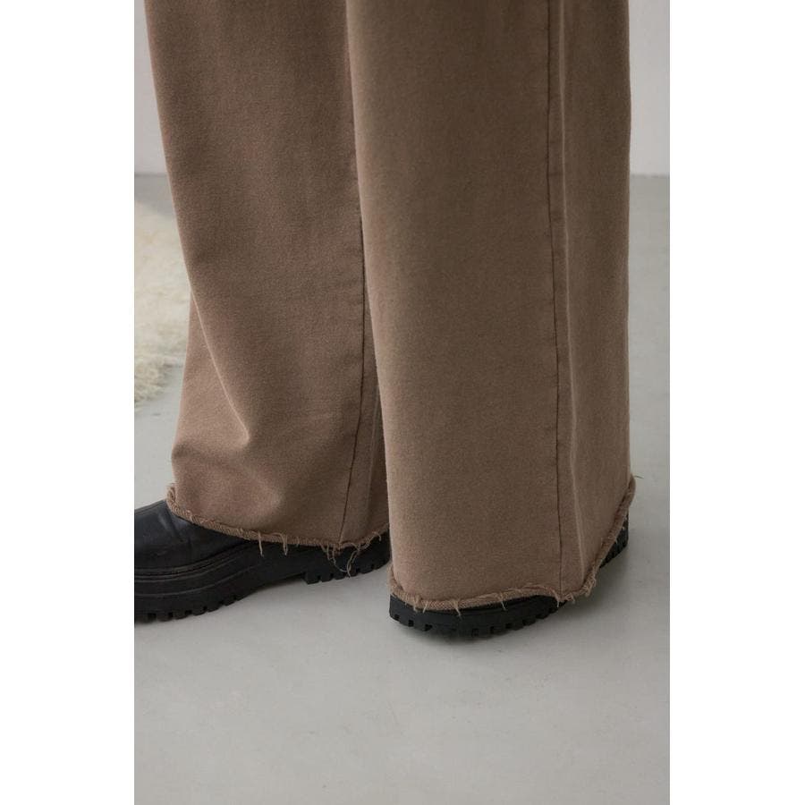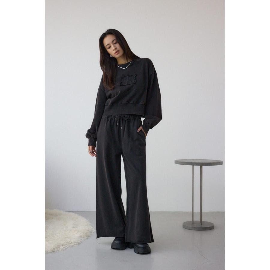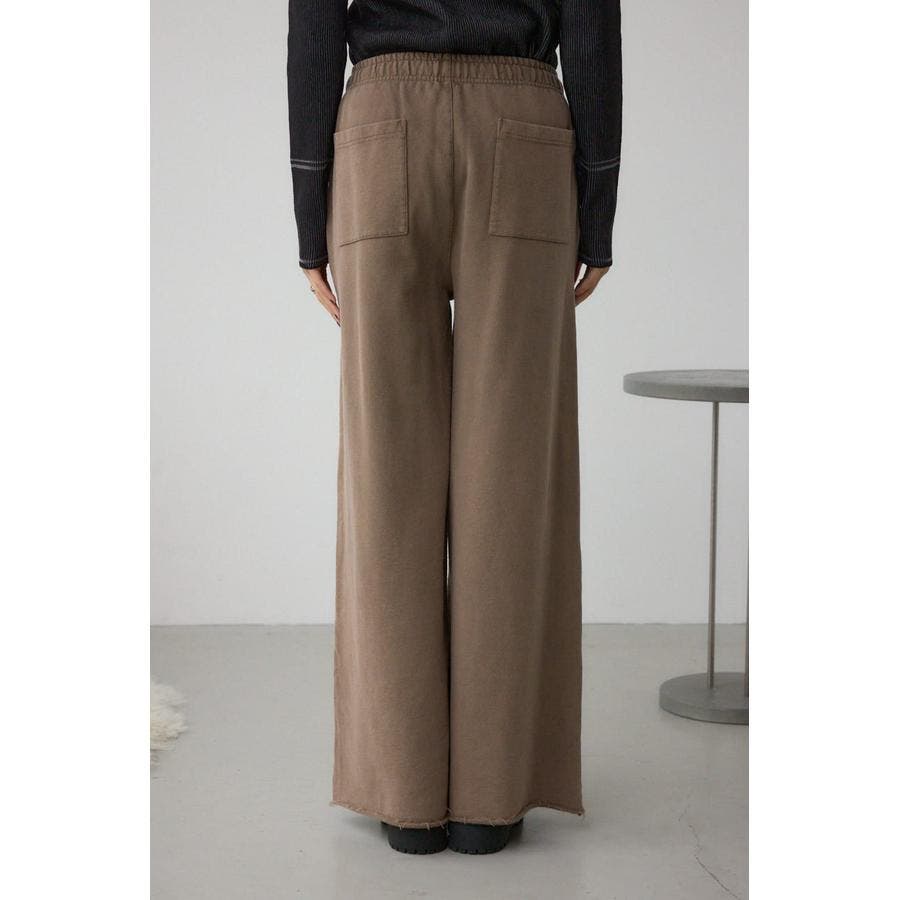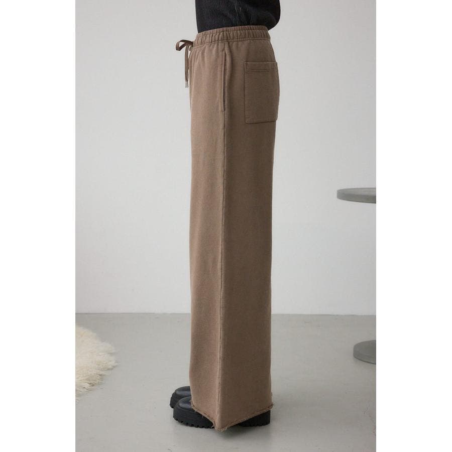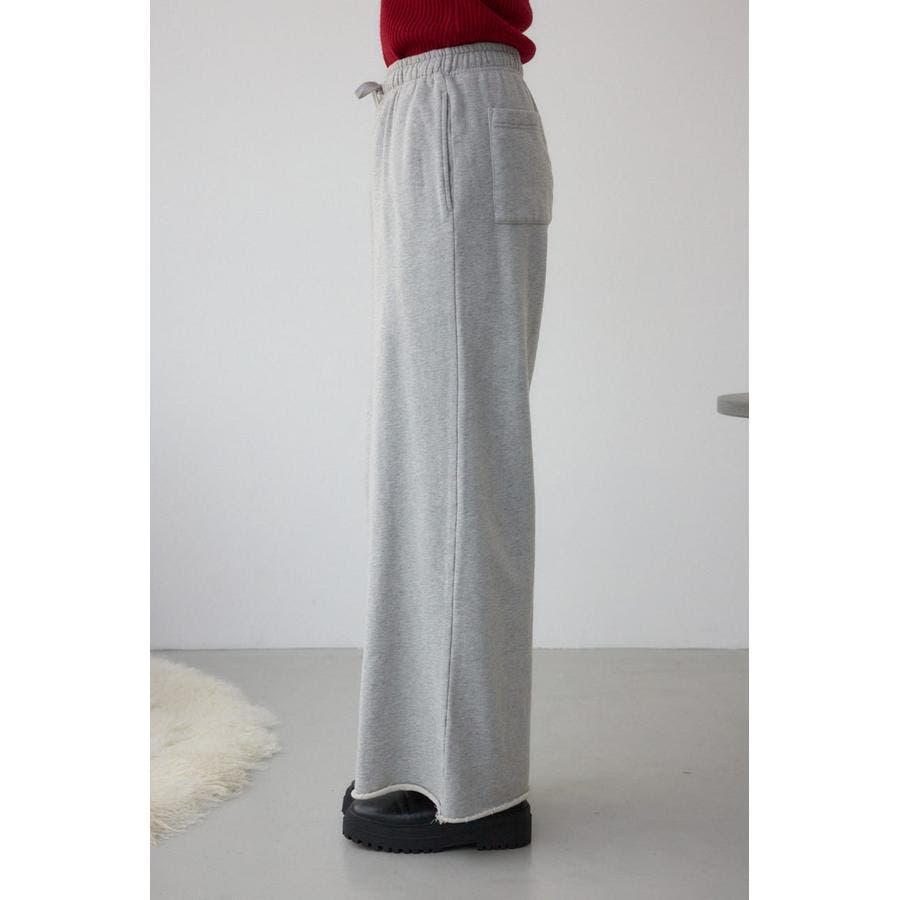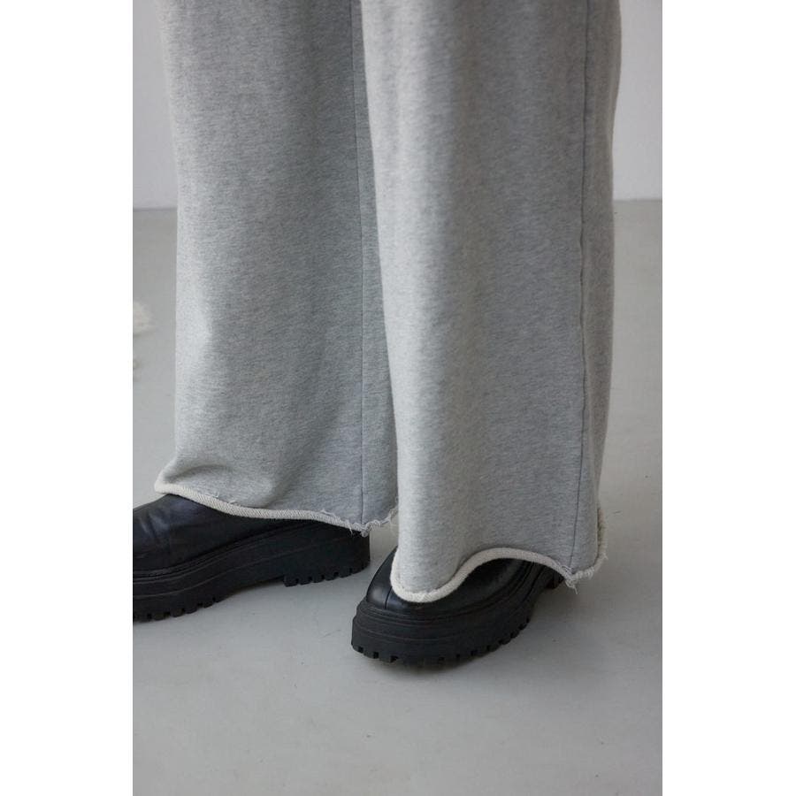 スウェット素材でカジュアルな印象もありつつ、太すぎない程よいワイドシルエットと裾のカットオフデザインがポイント。
