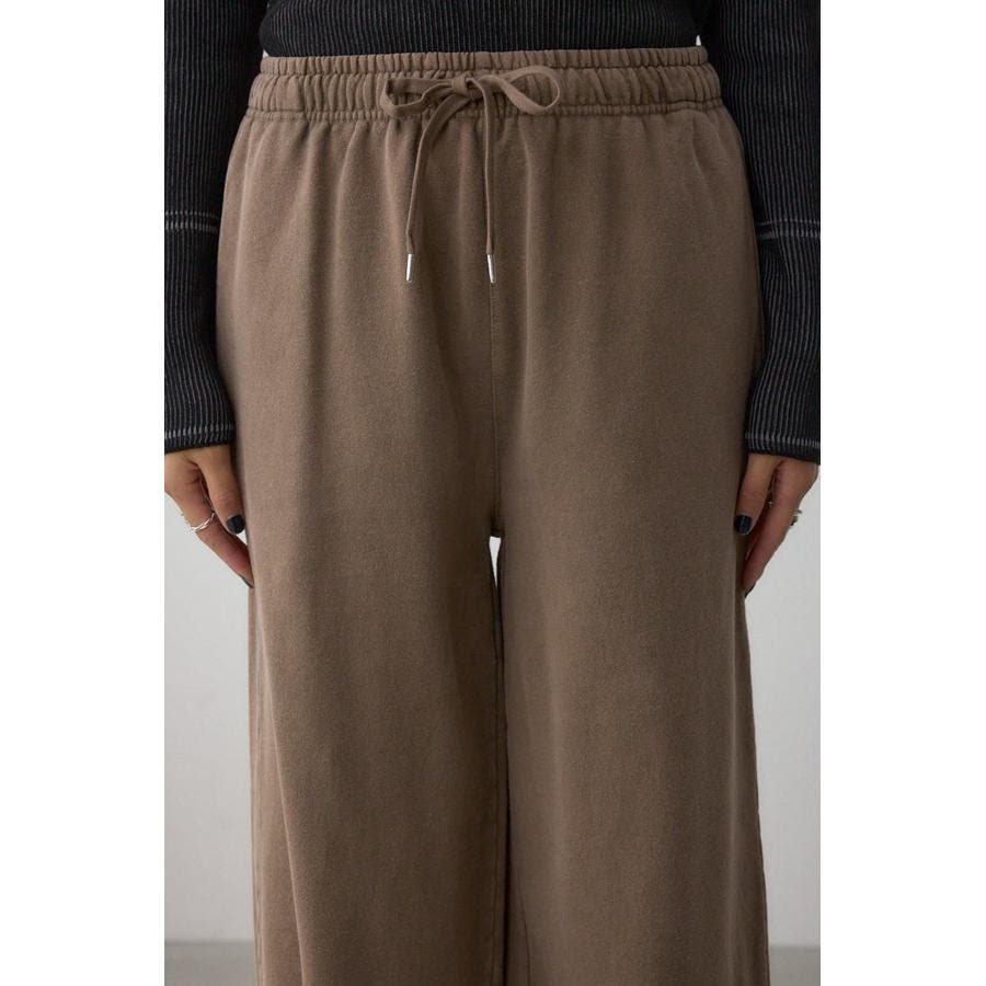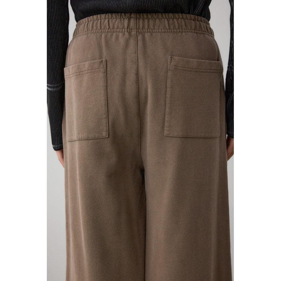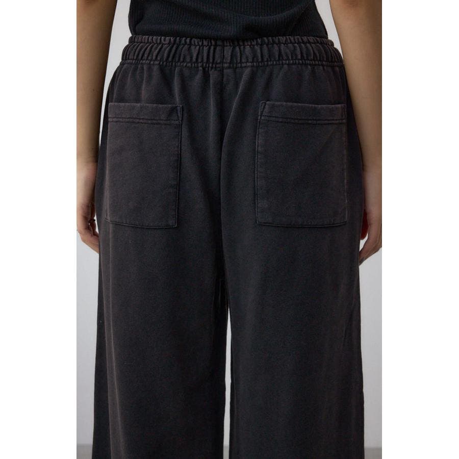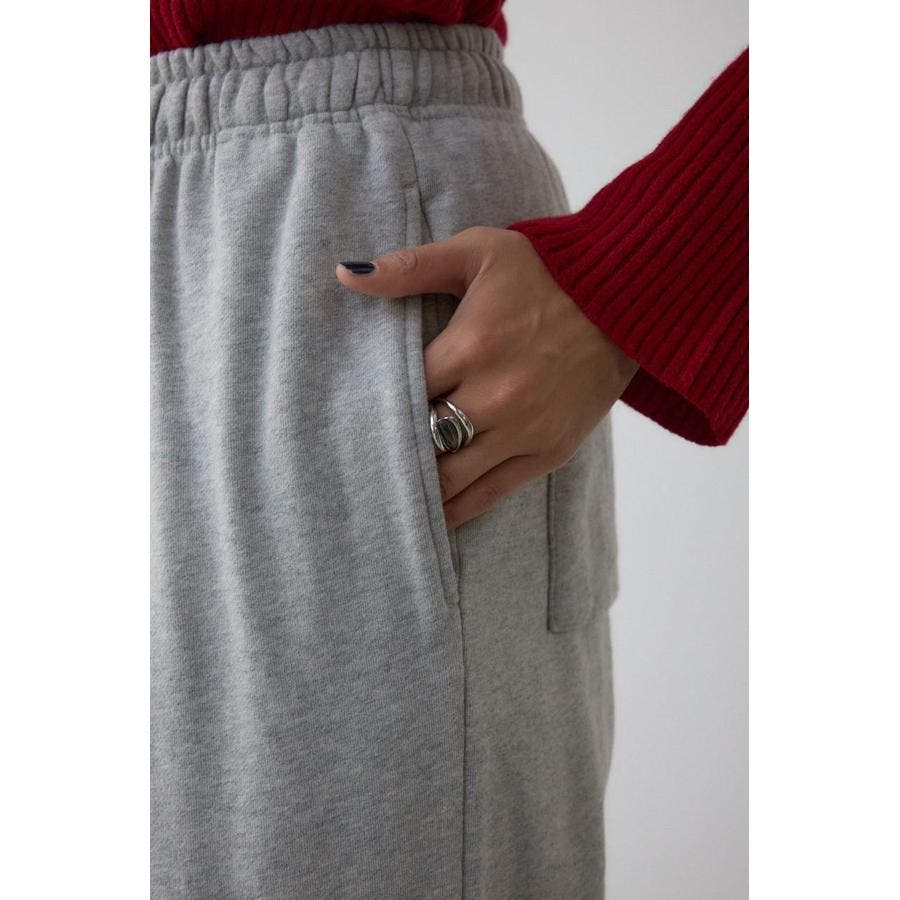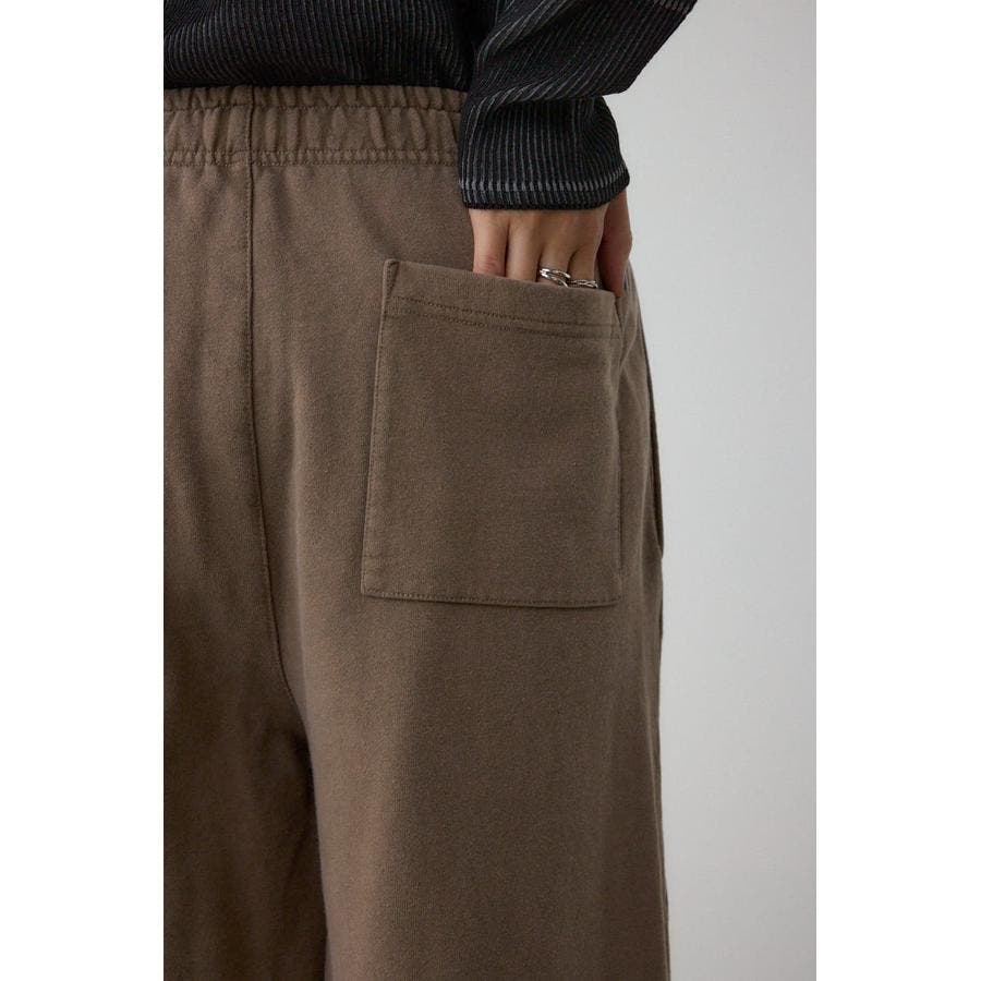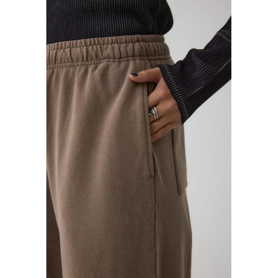スウェット素材でカジュアルな印象もありつつ、太すぎない程よいワイドシルエットと裾のカットオフデザインがポイント。