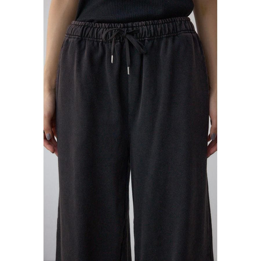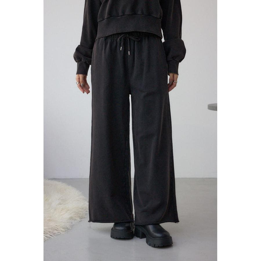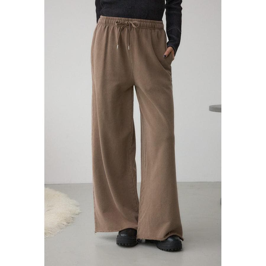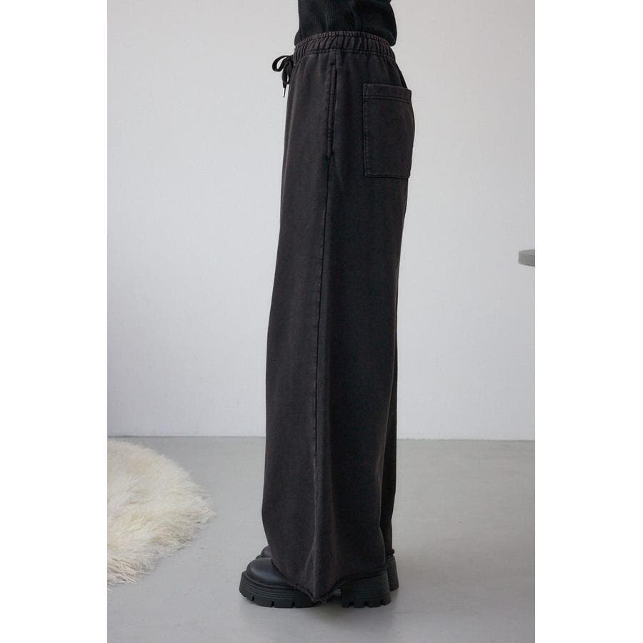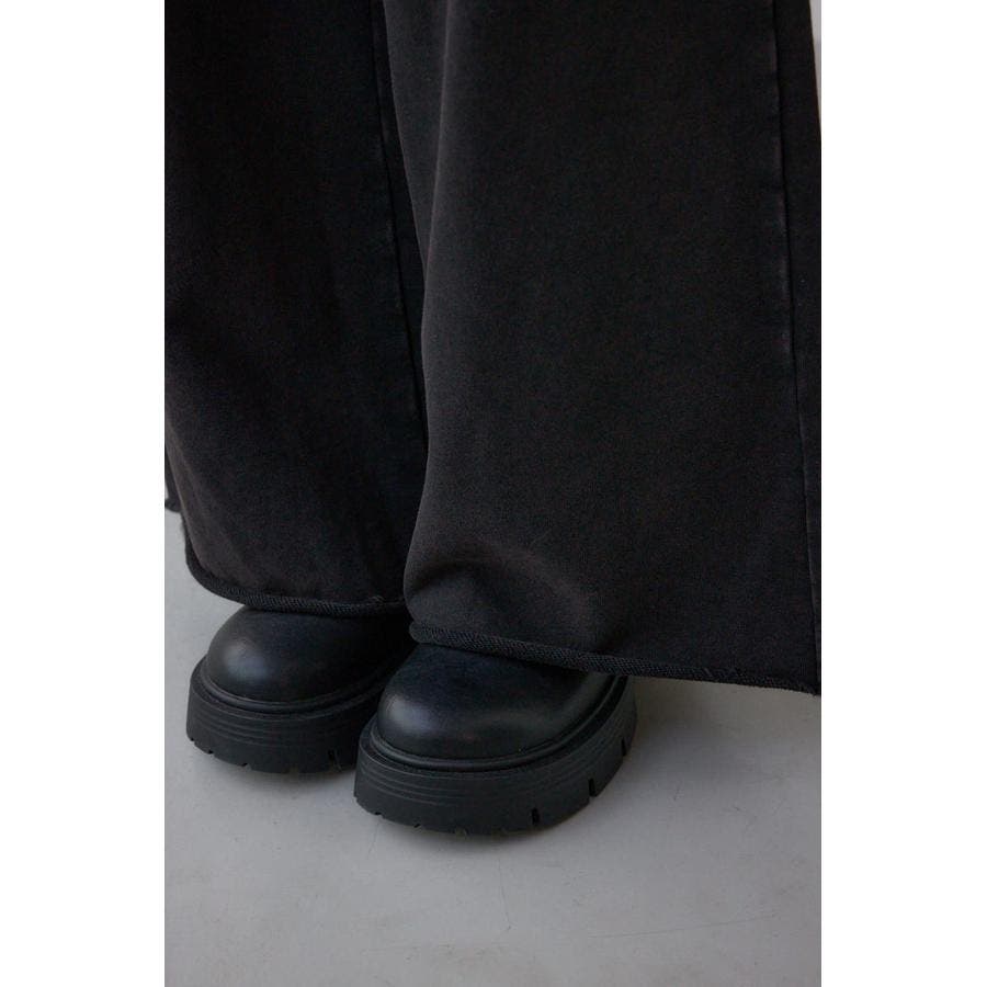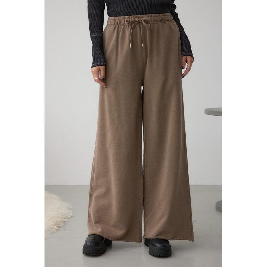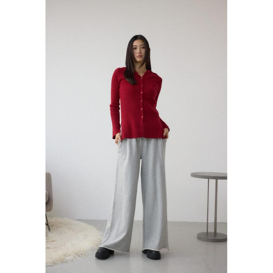 スウェット素材でカジュアルな印象もありつつ、太すぎない程よいワイドシルエットと裾のカットオフデザインがポイント。