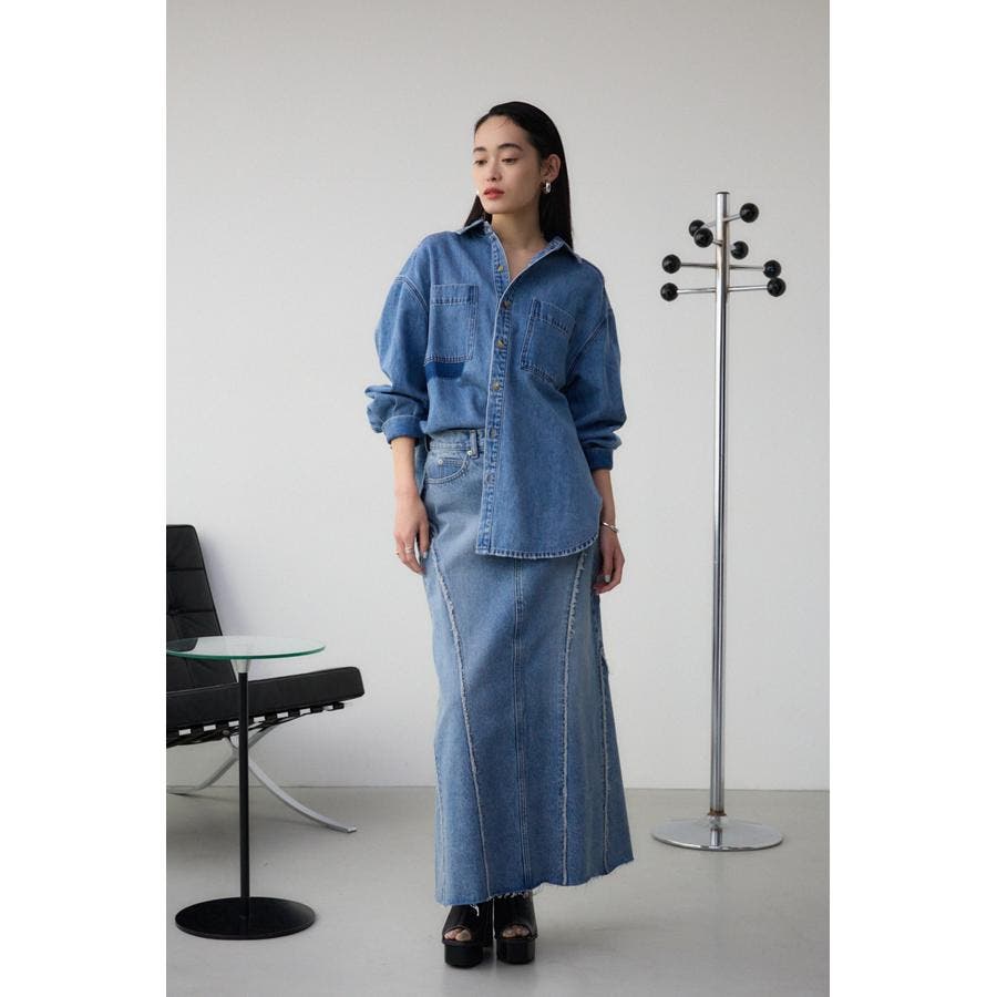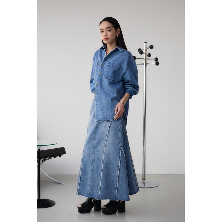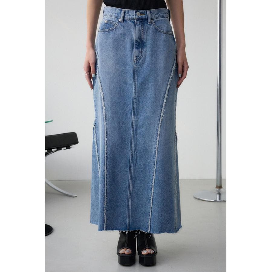 切り替えデザインのデニムロングスカート。