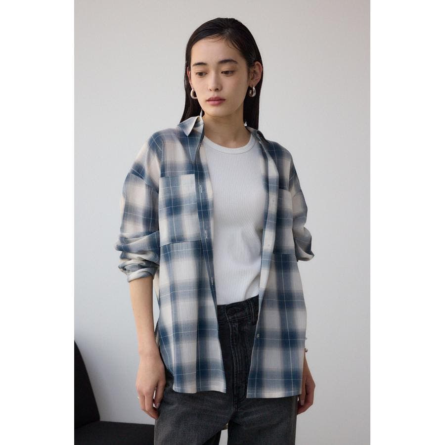 薄くて軽い先染めのオンブレーチェック素材を使用。