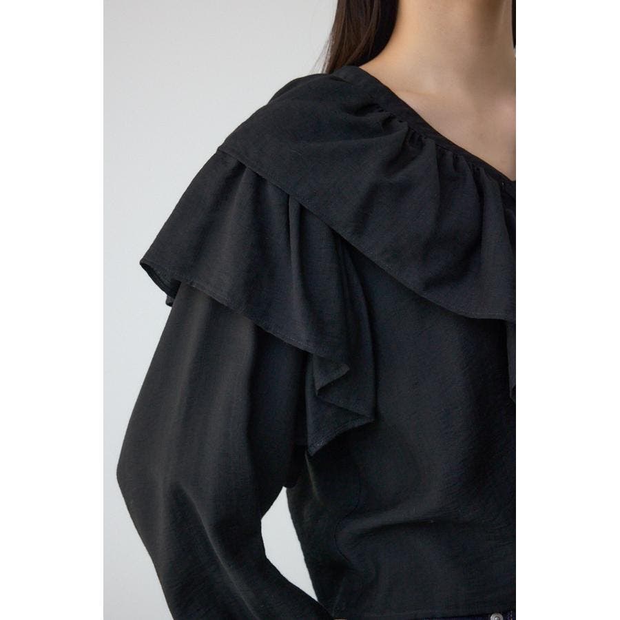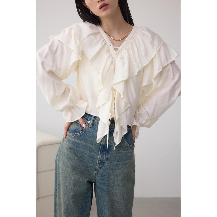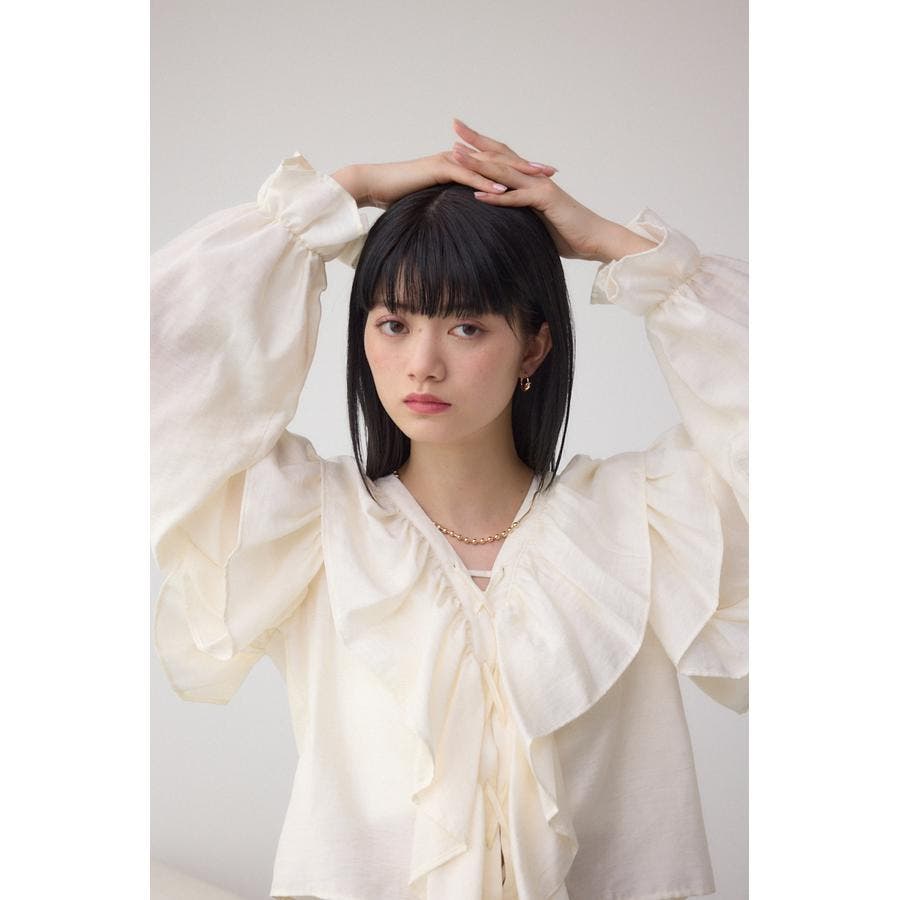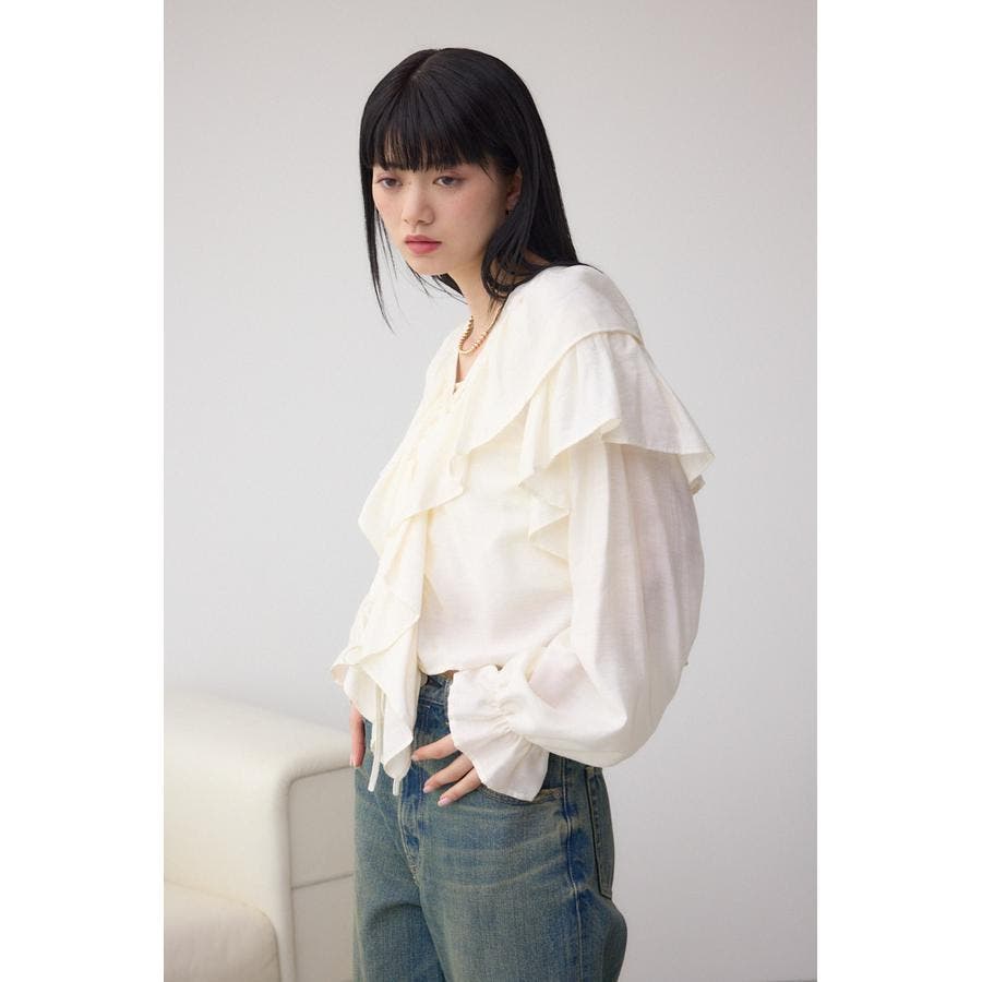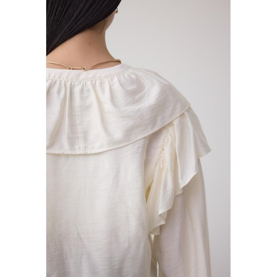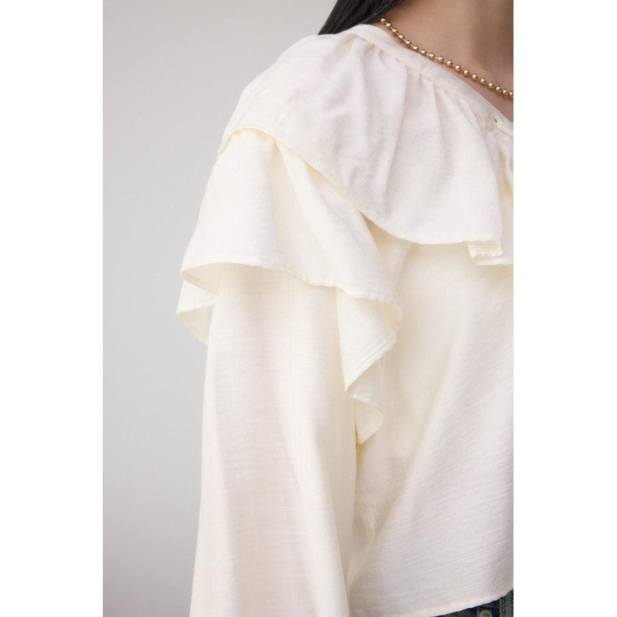 ショルダー部分も2段フリルにしていますが、ネックをあけることでスタイルアップが叶います。