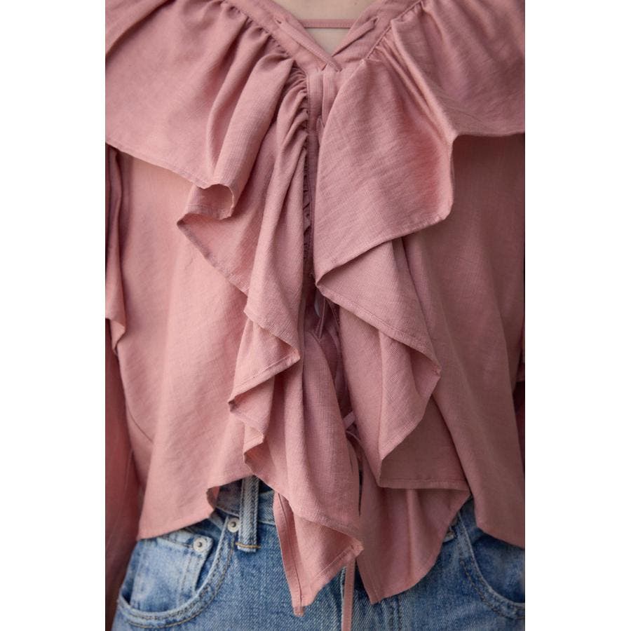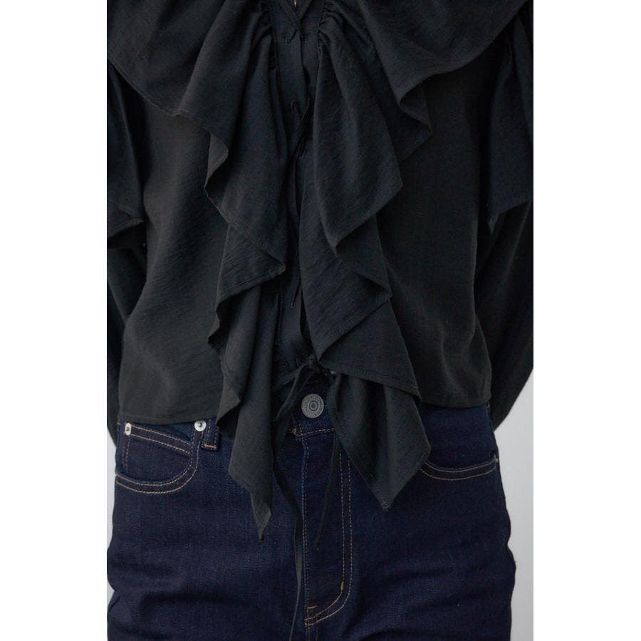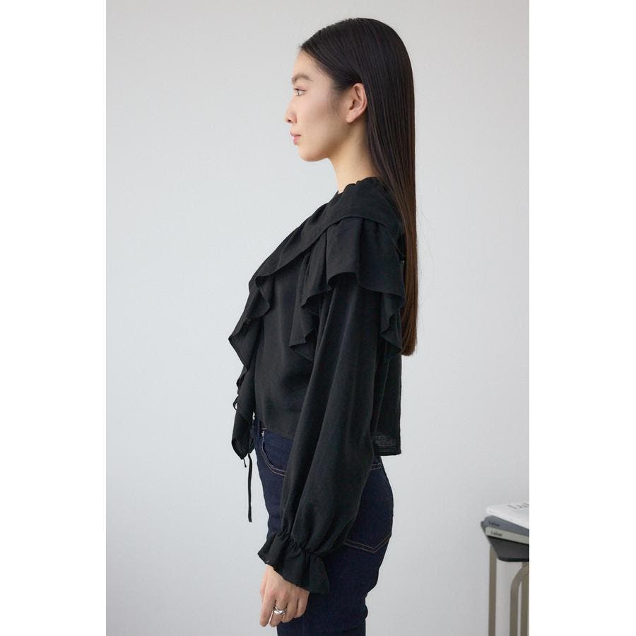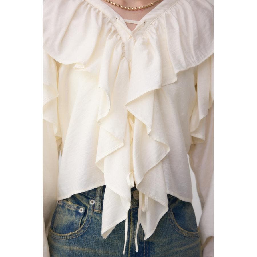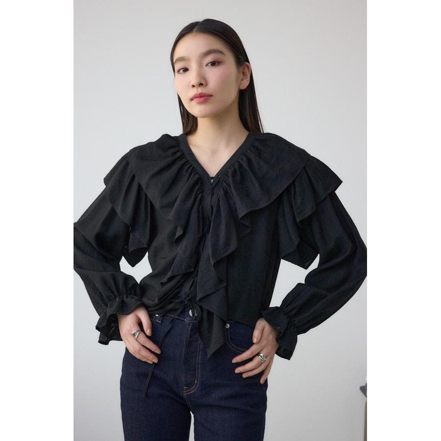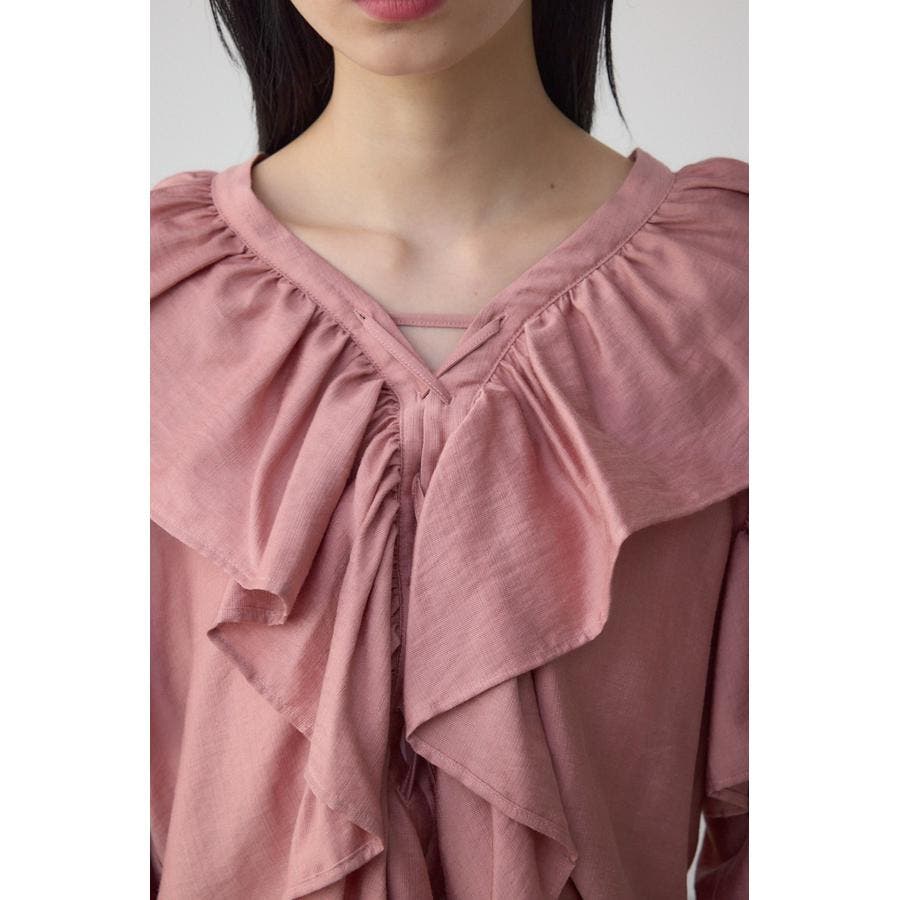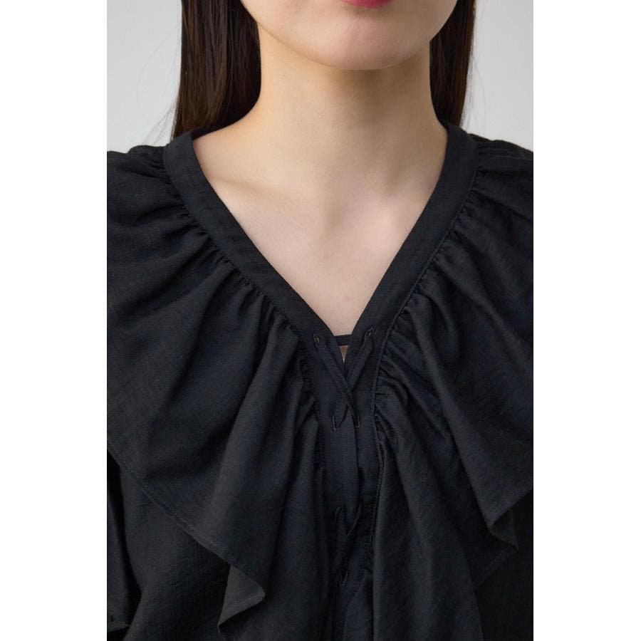 ショルダー部分も2段フリルにしていますが、ネックをあけることでスタイルアップが叶います。