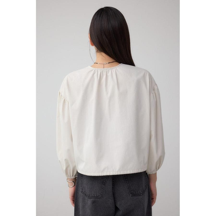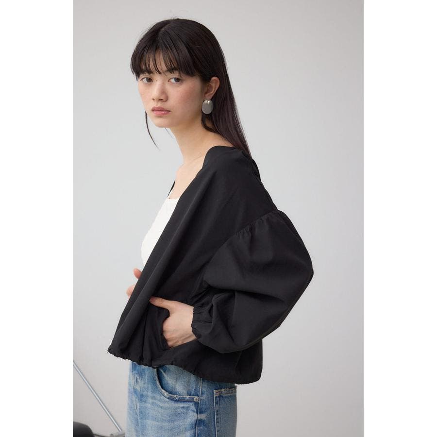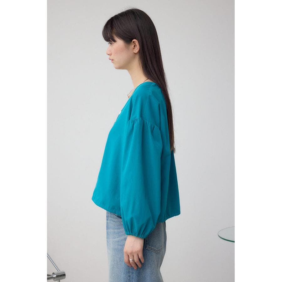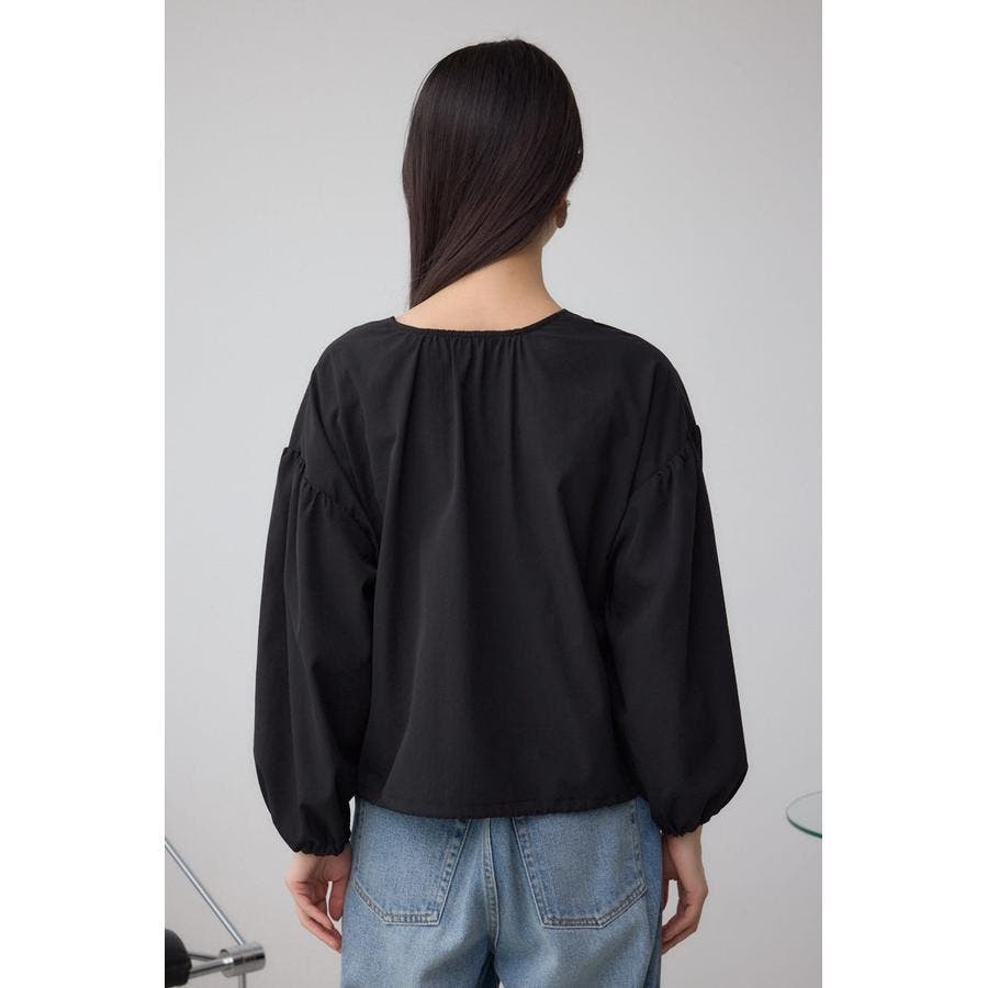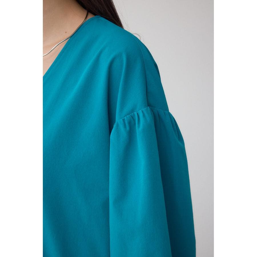 女性らしいバルーンスリーブとVネックデザインに。