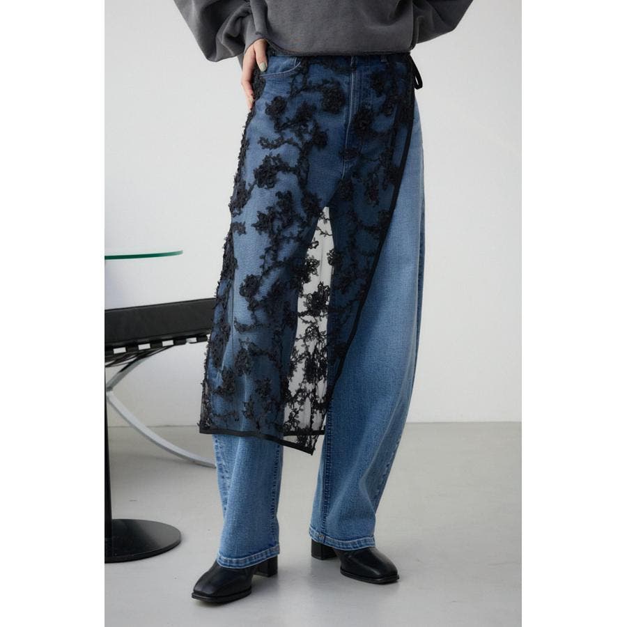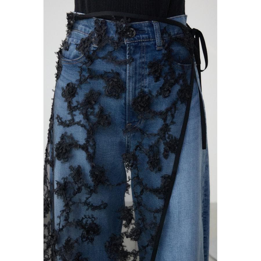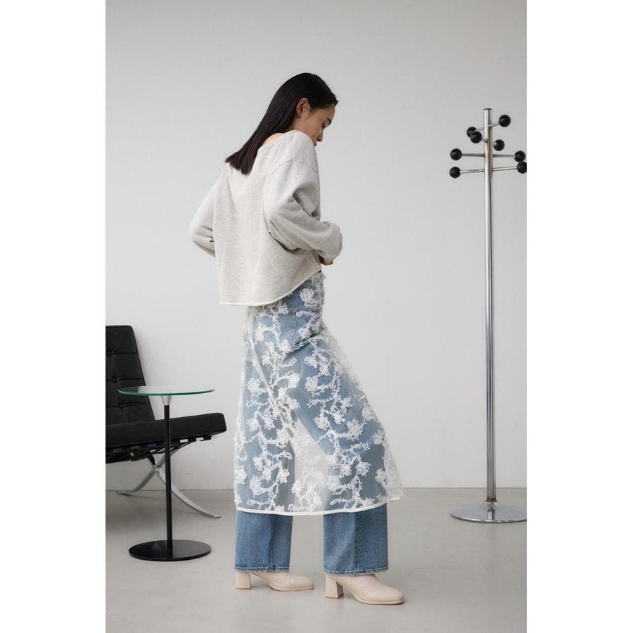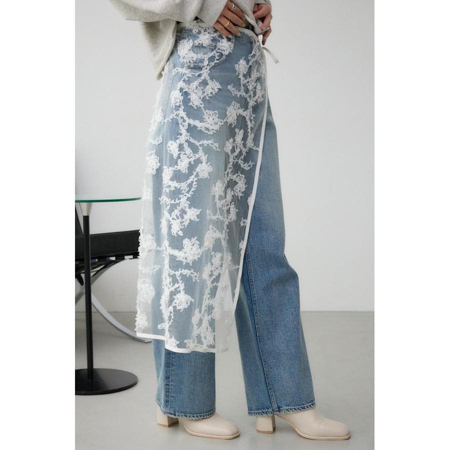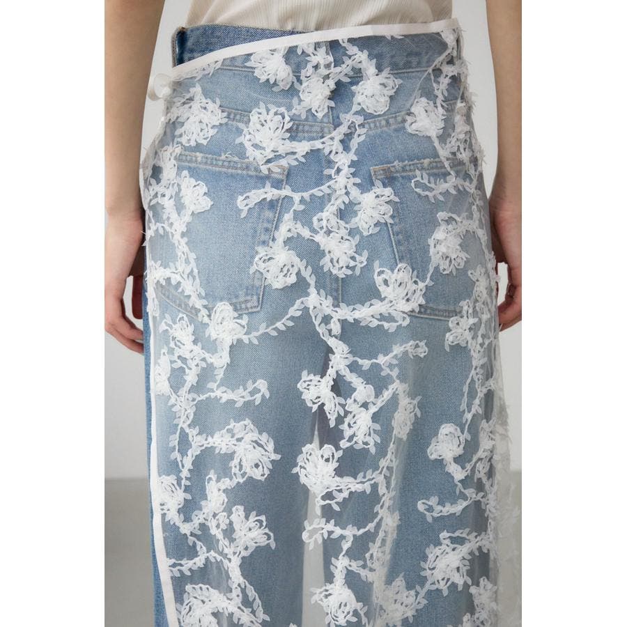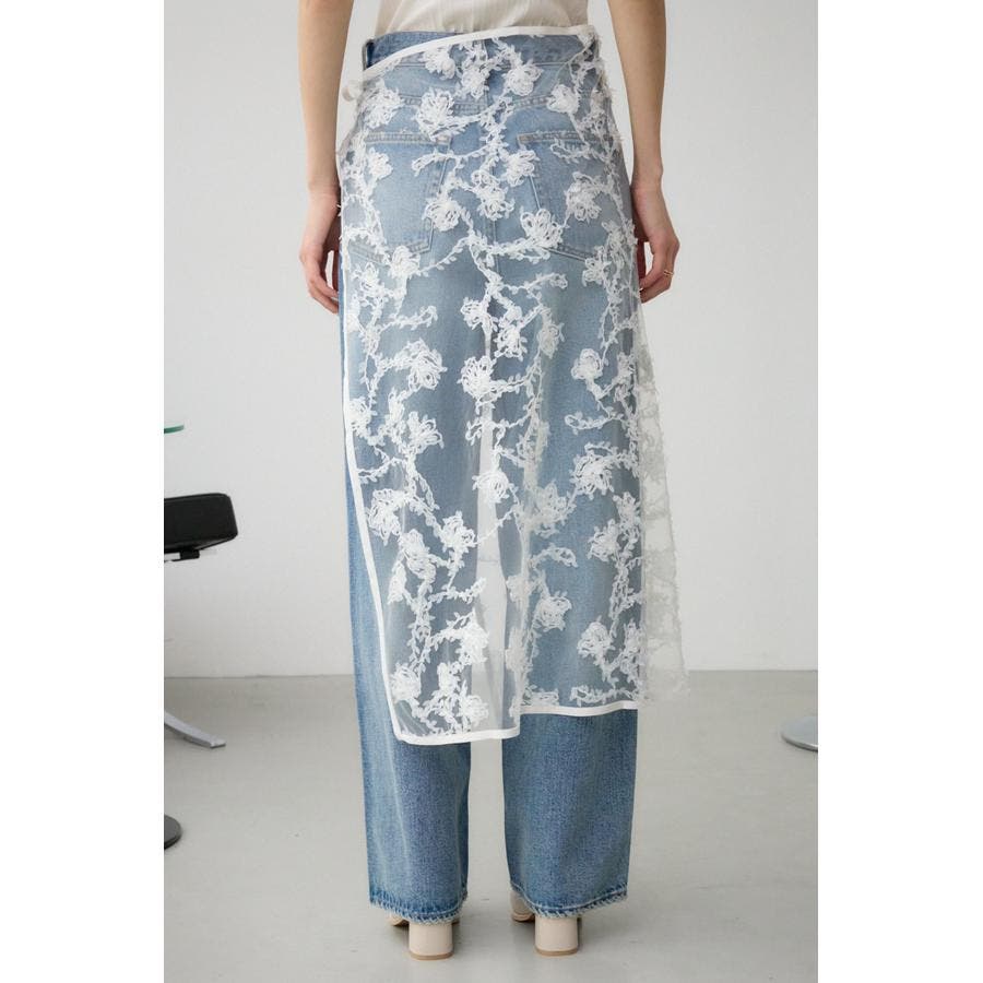 スタイリングのポイントになる、立体的なレースを使用したレーススカート。