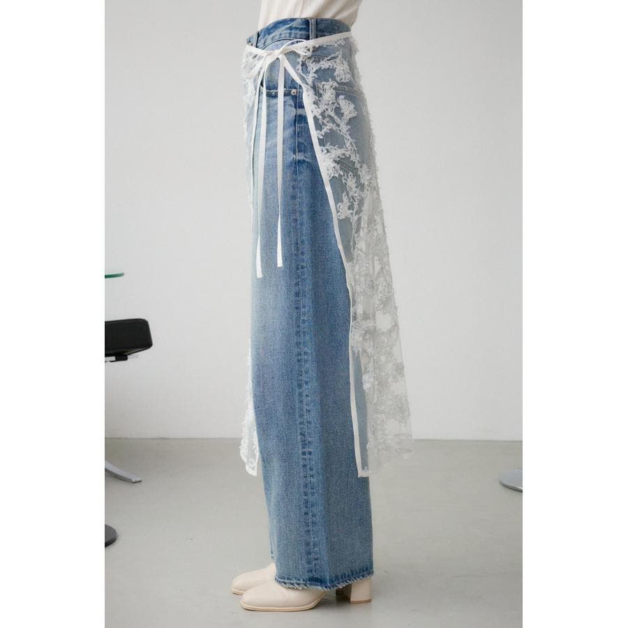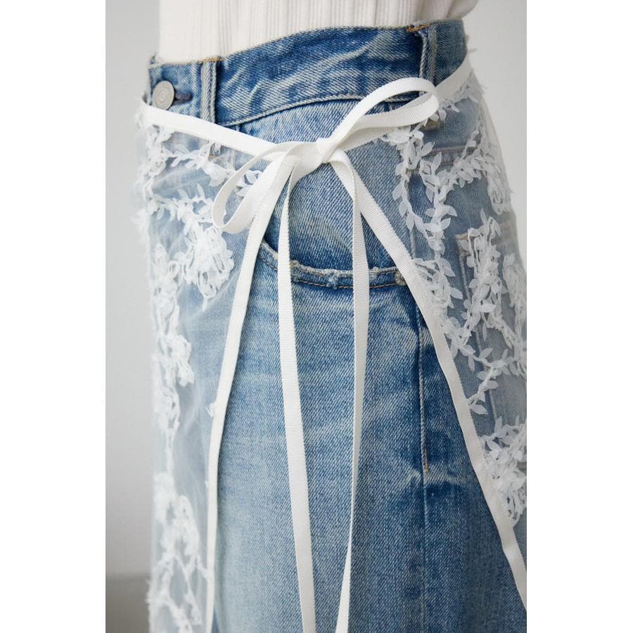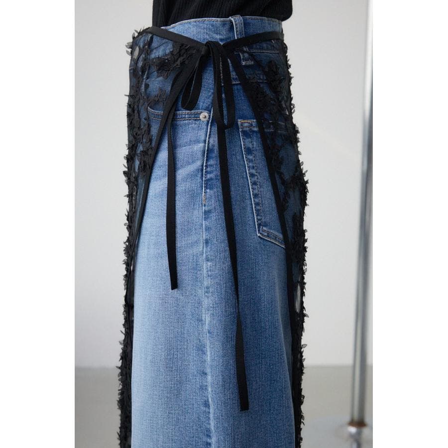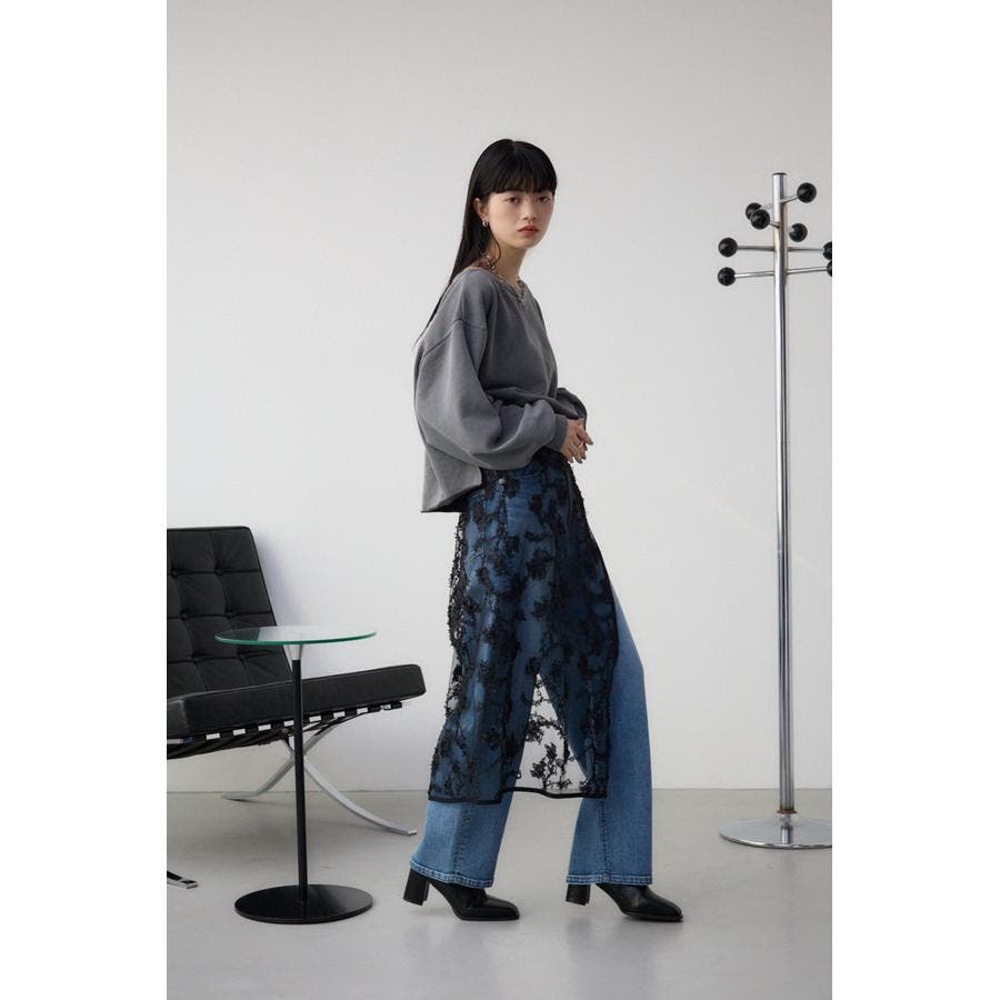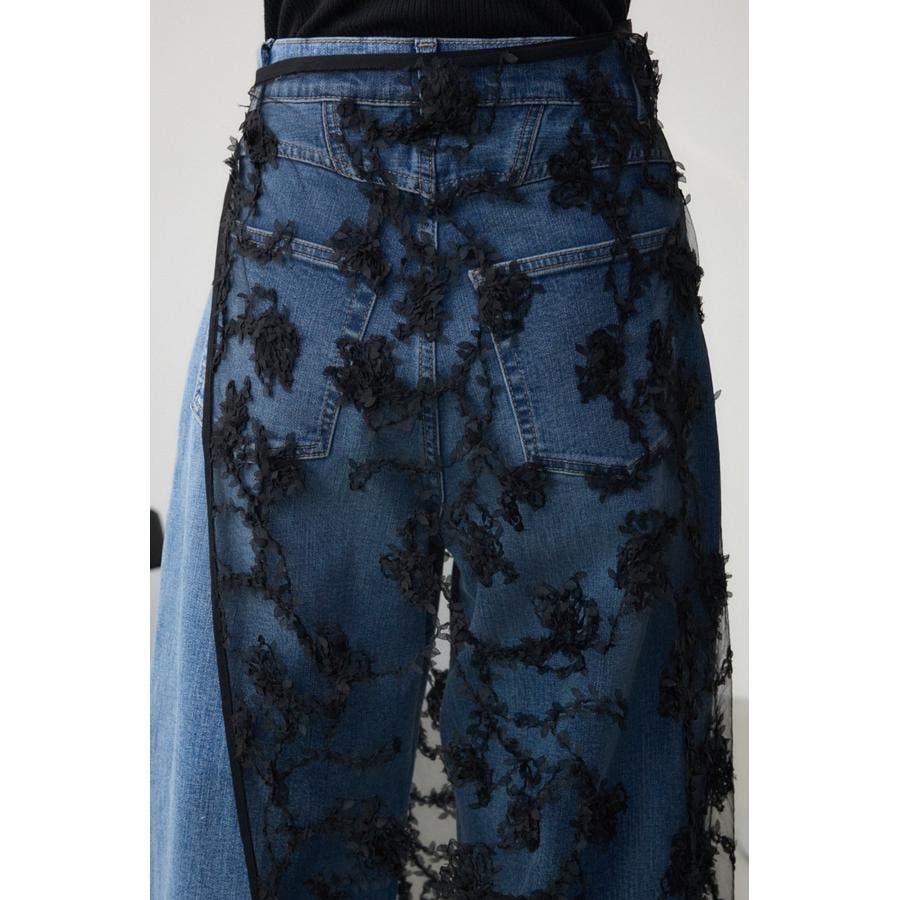 スタイリングのポイントになる、立体的なレースを使用したレーススカート。
