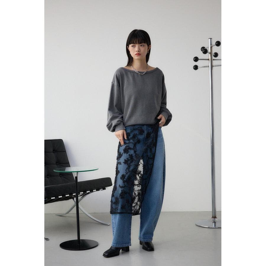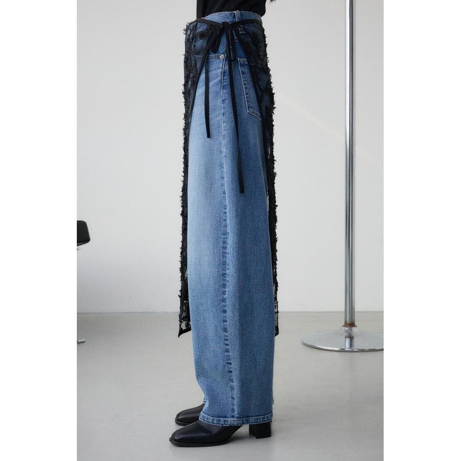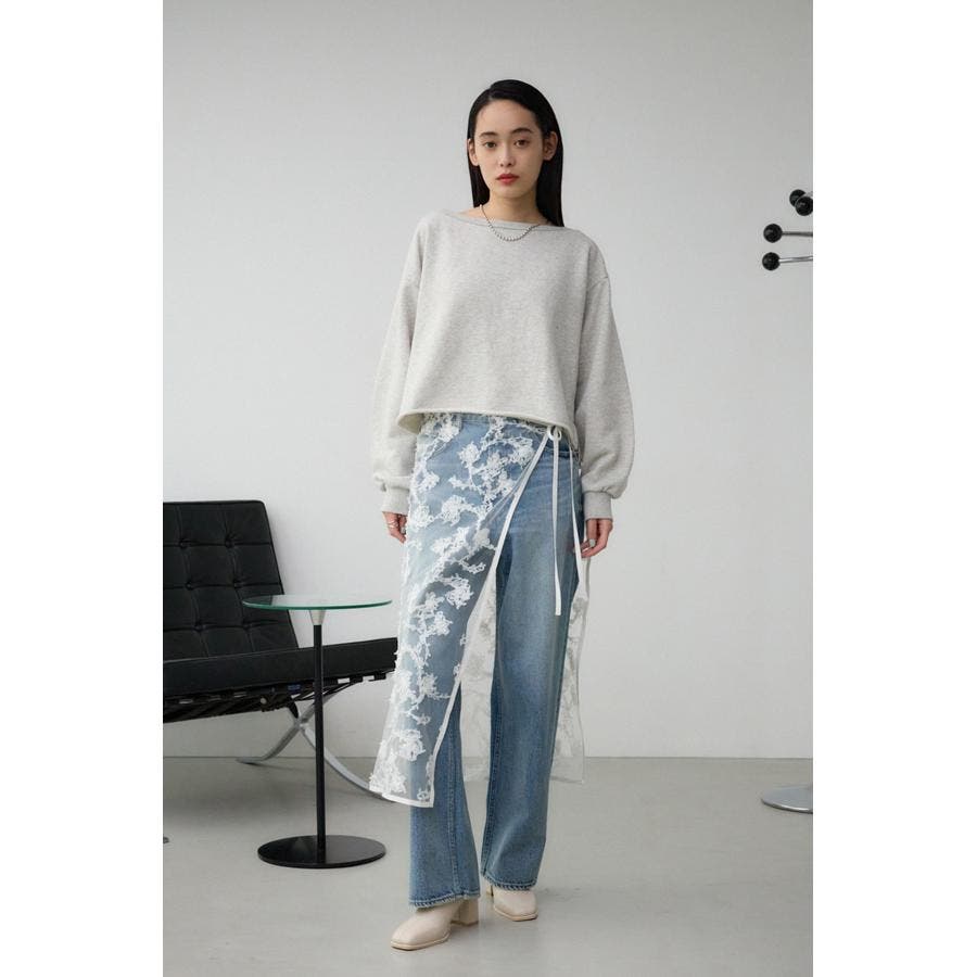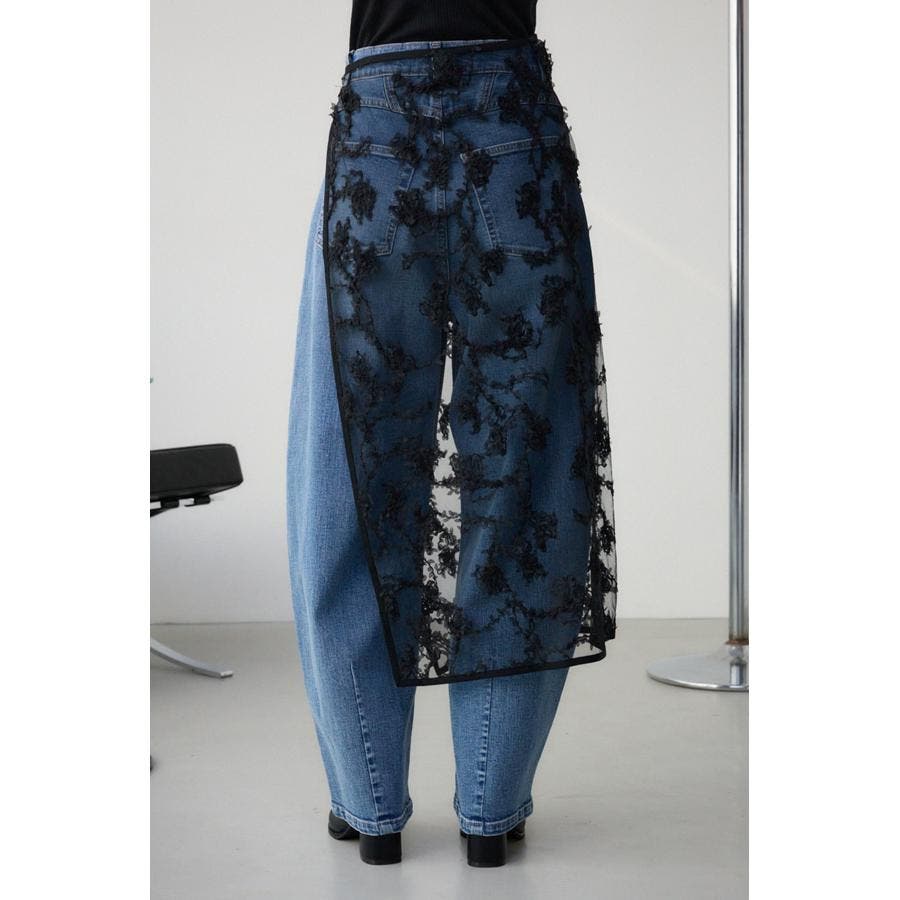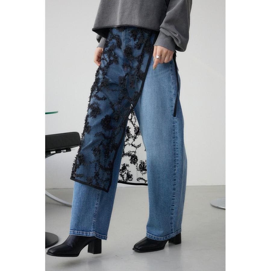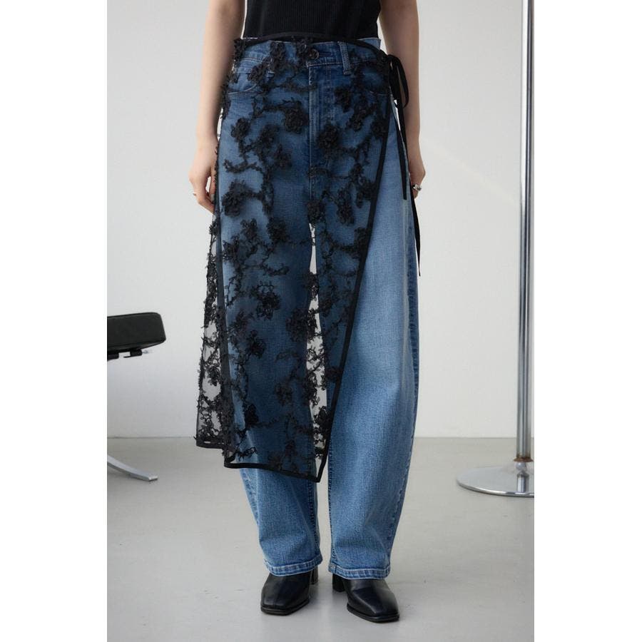 スタイリングのポイントになる、立体的なレースを使用したレーススカート。