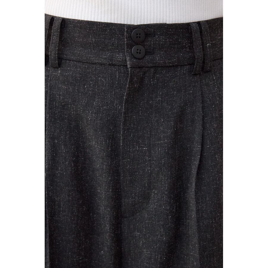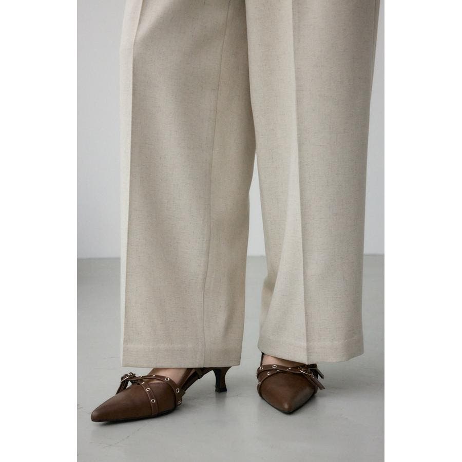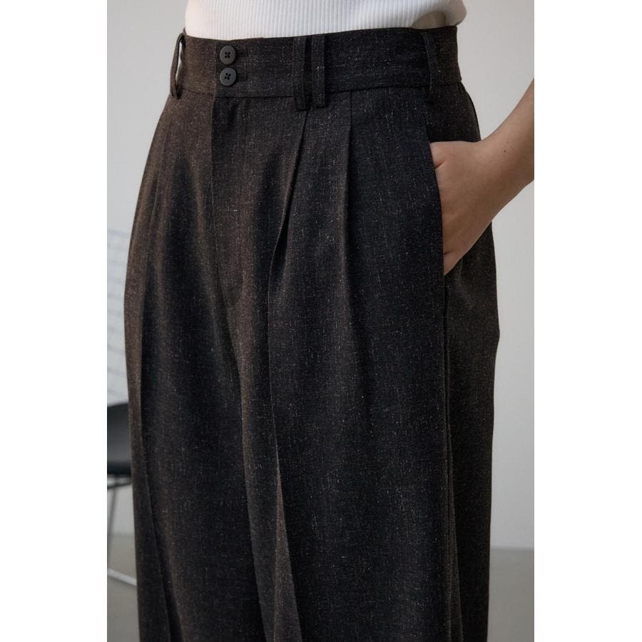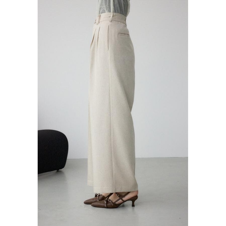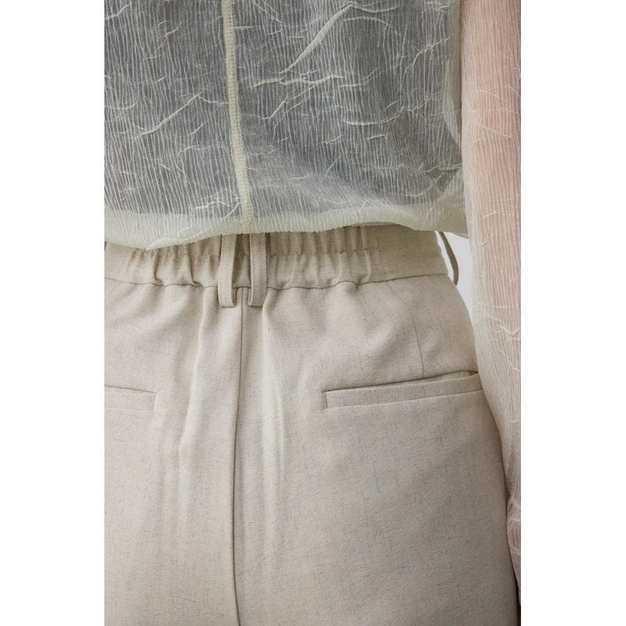 リネン混のポリエステル生地を使用したワイドパンツ。