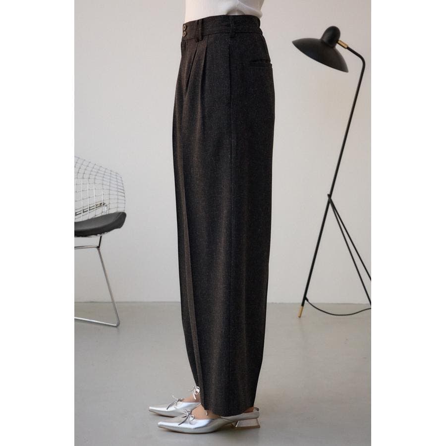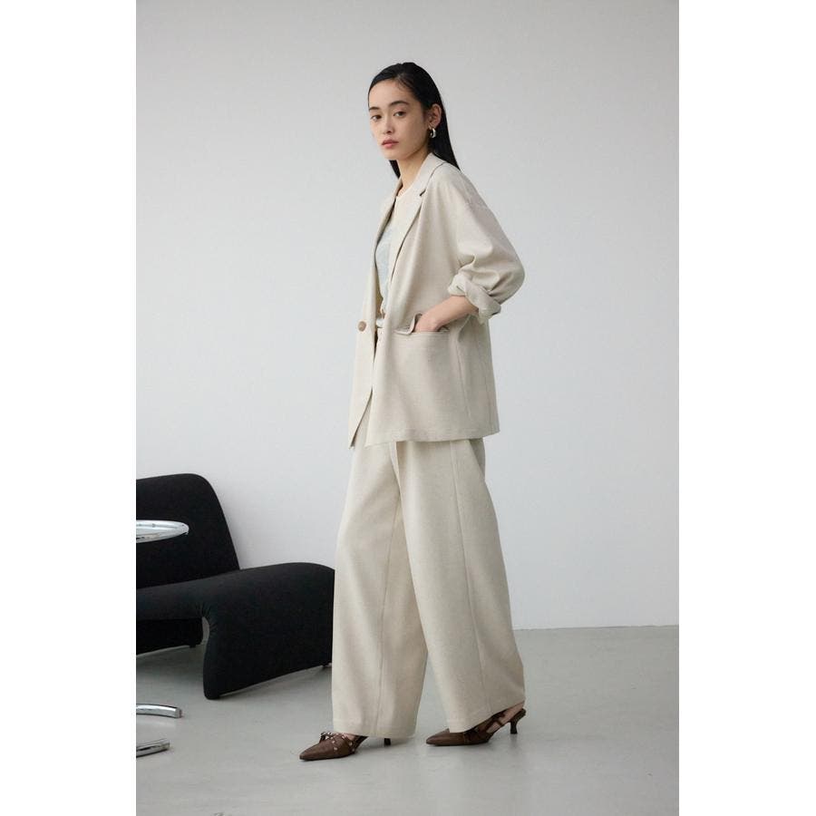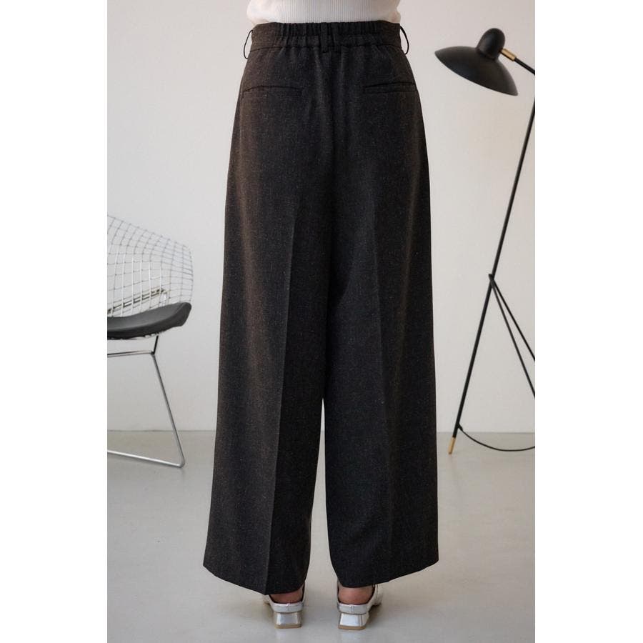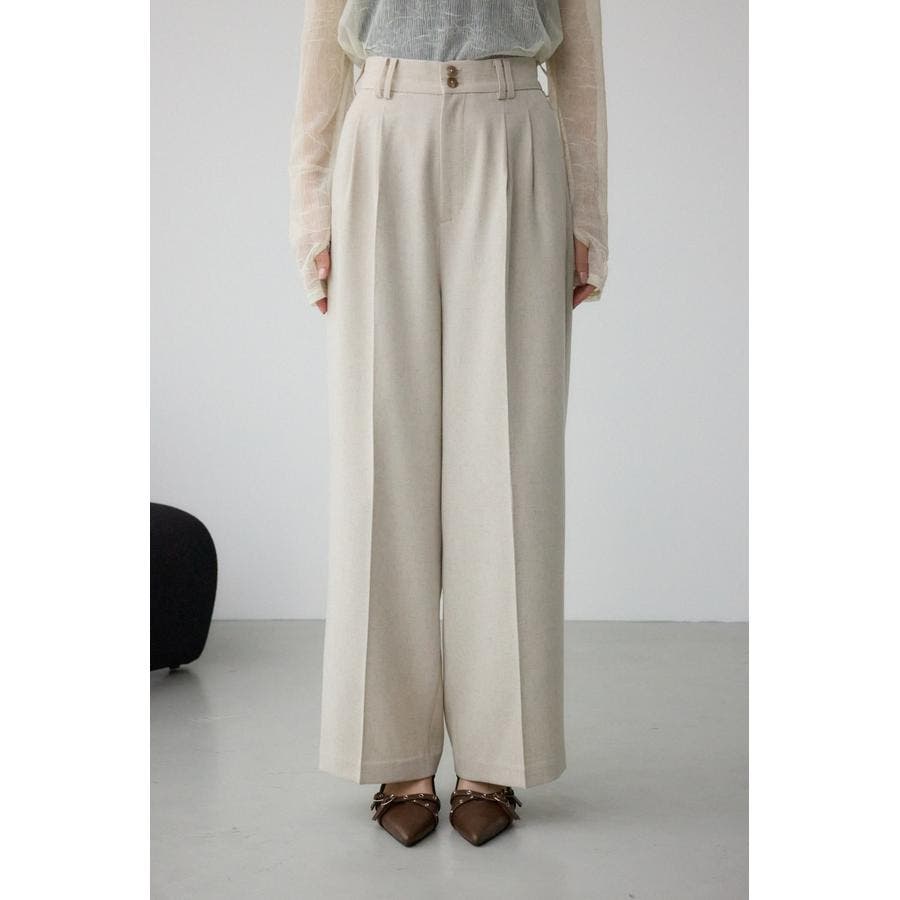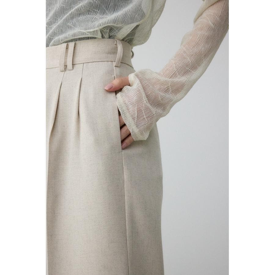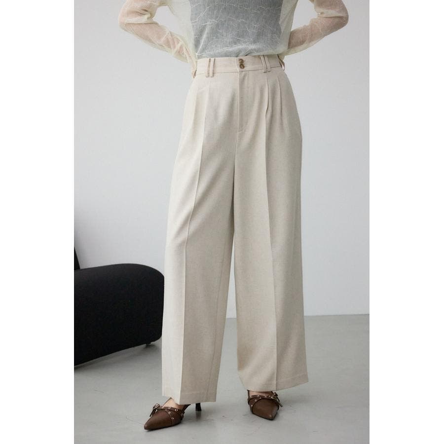 リネン混のポリエステル生地を使用したワイドパンツ。