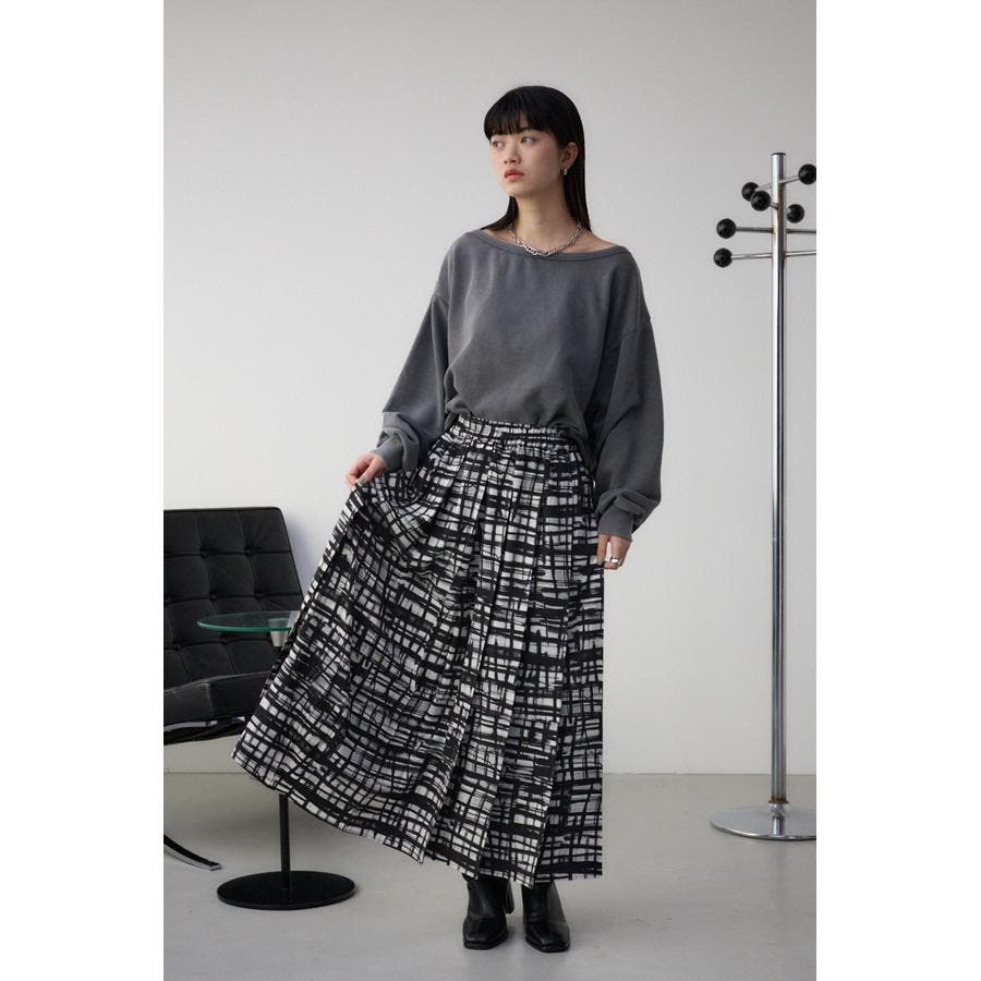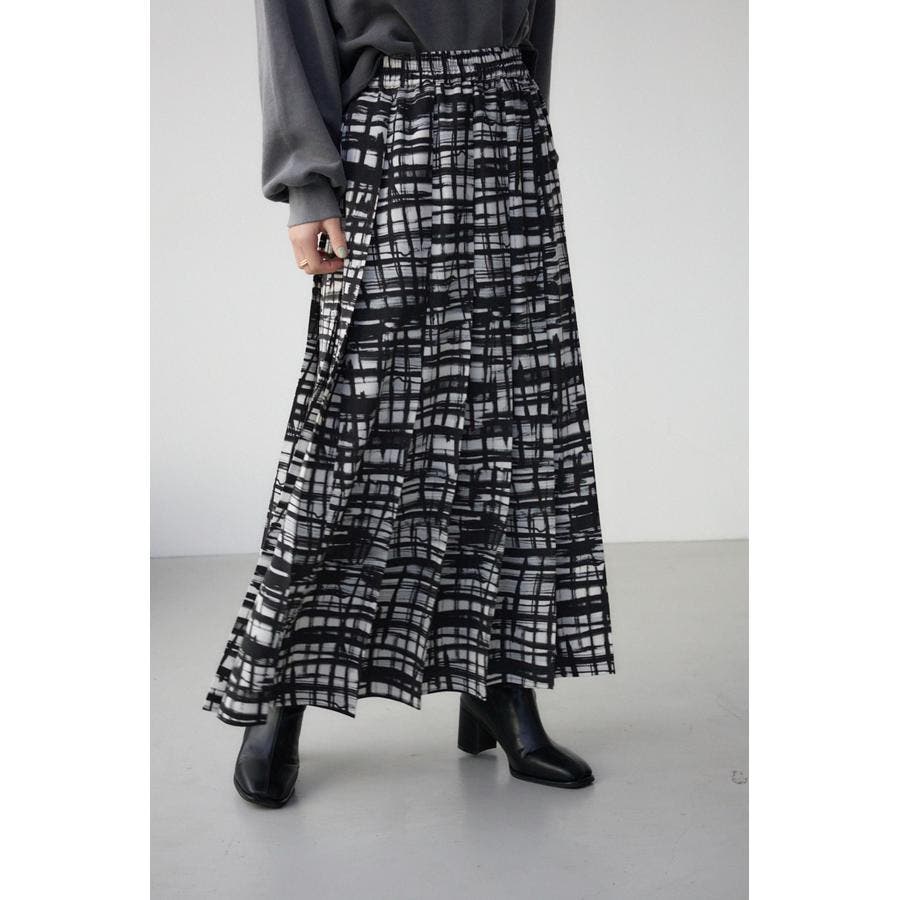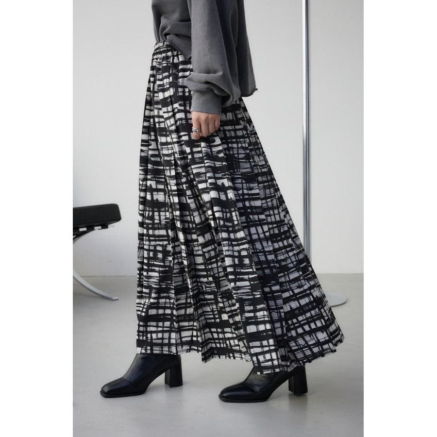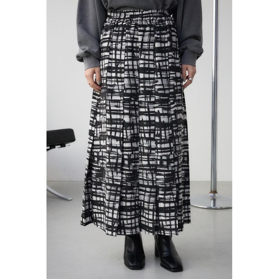 シンプルなシルエットのオリジナルチェックプリントスカート。