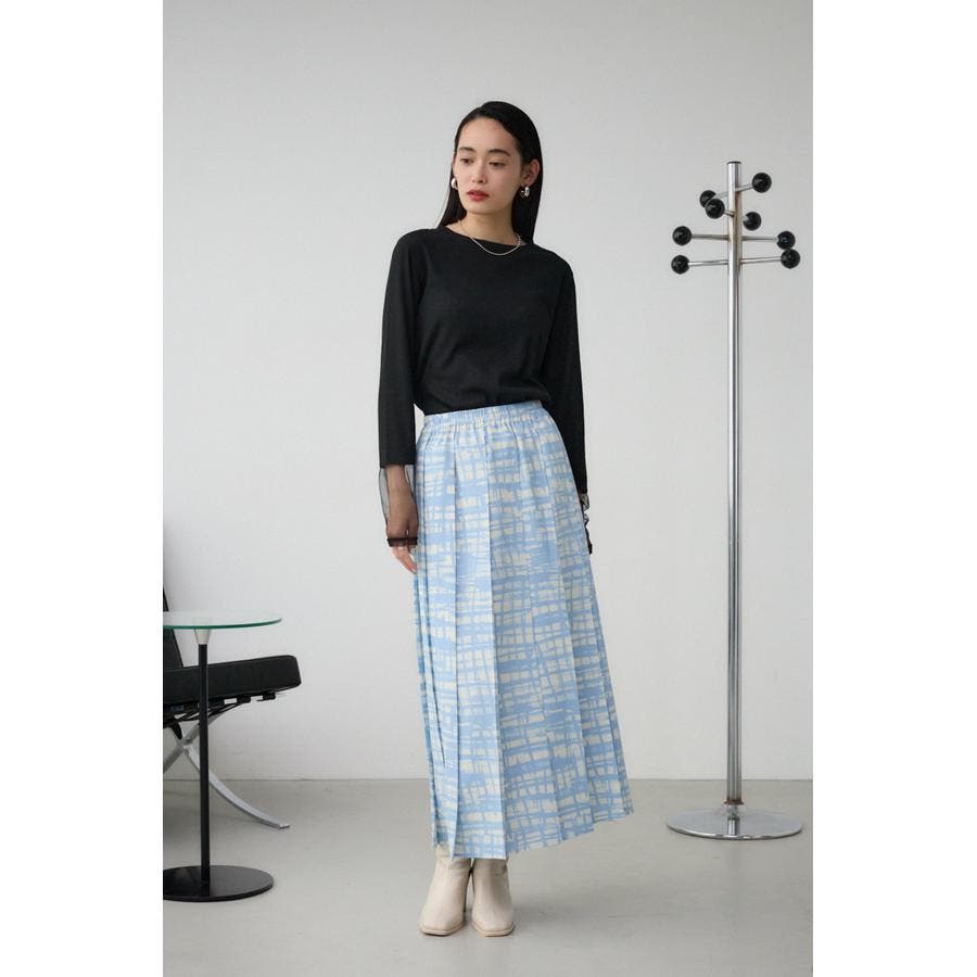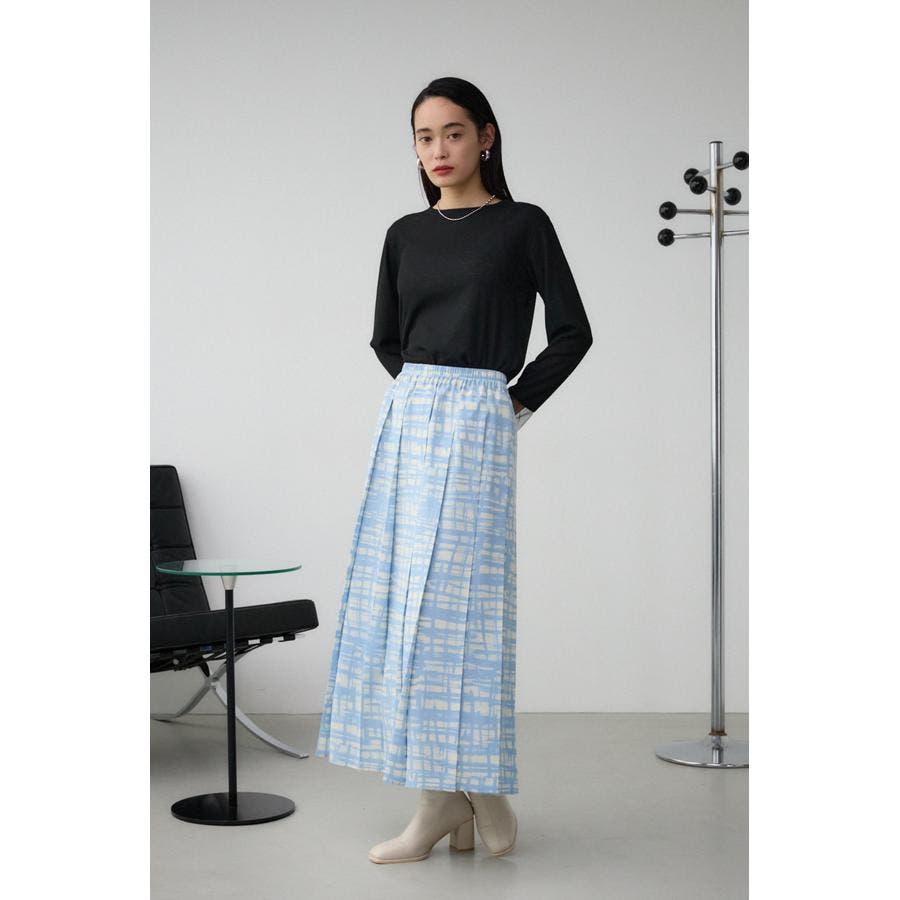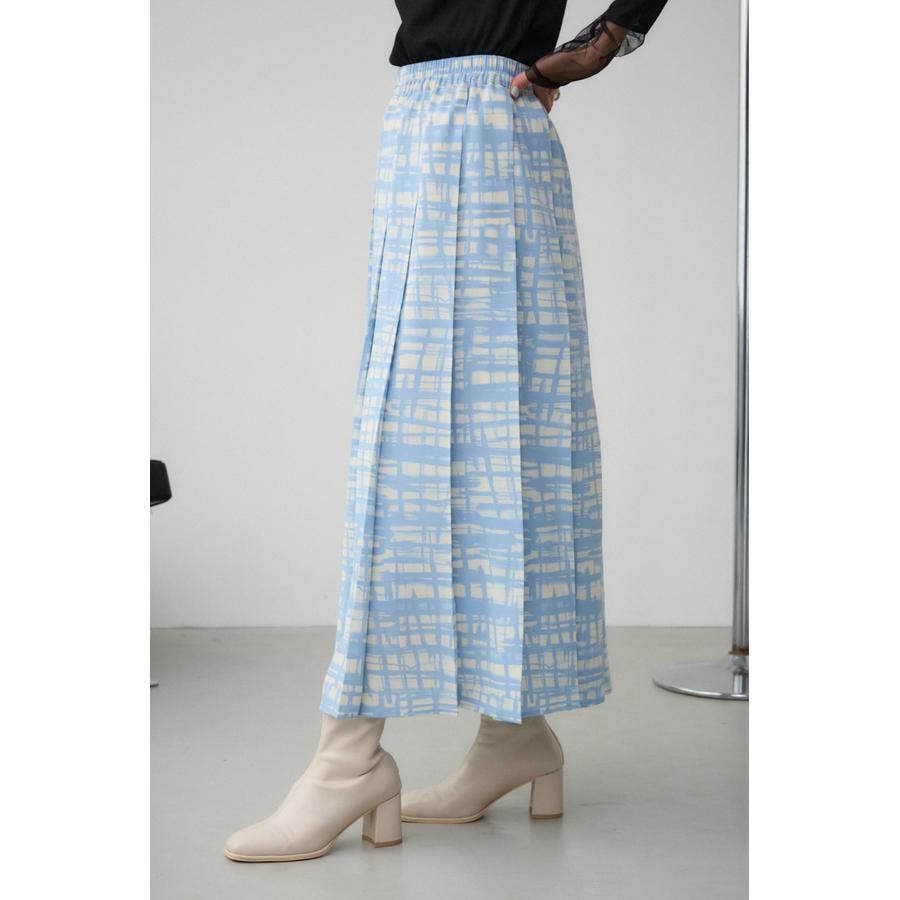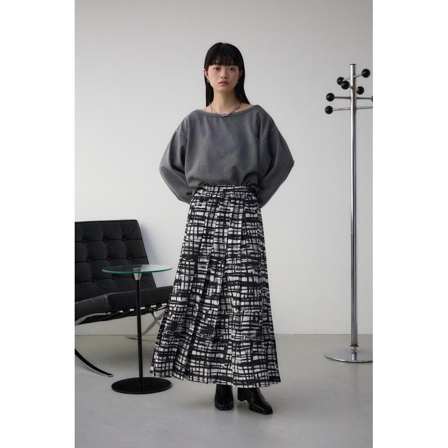 シンプルなシルエットのオリジナルチェックプリントスカート。