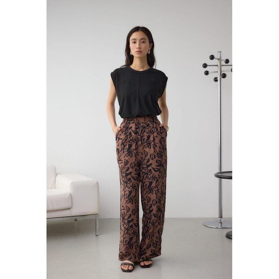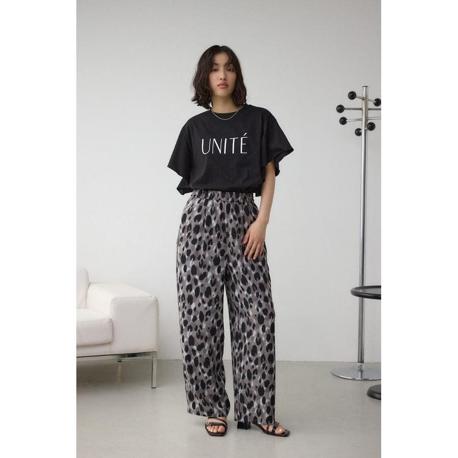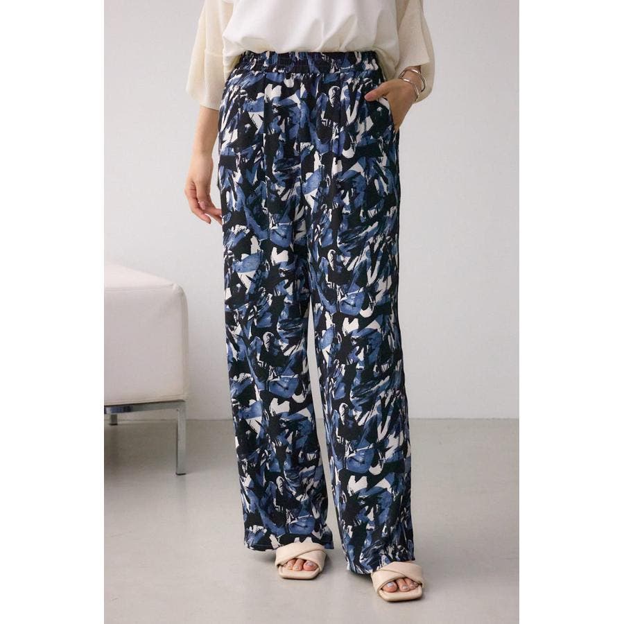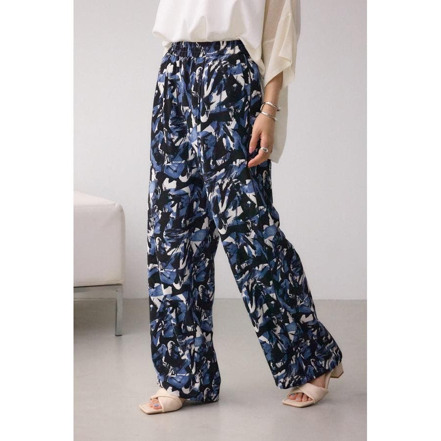 表面感のある生地にオリジナルプリントを施したイージーワイドパンツ。