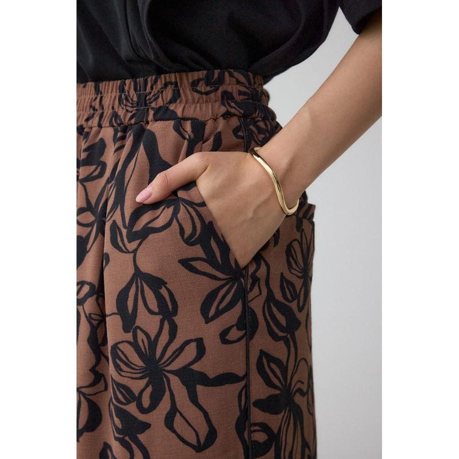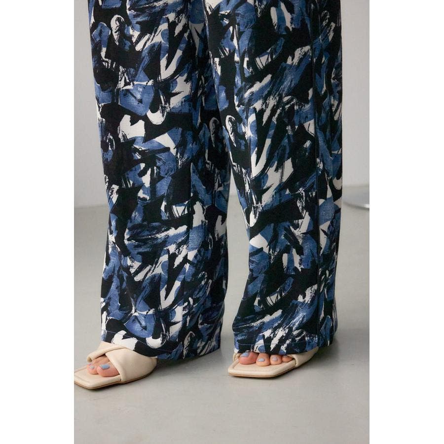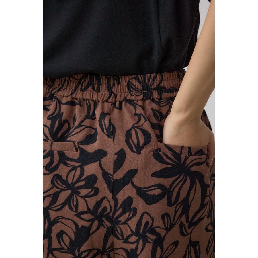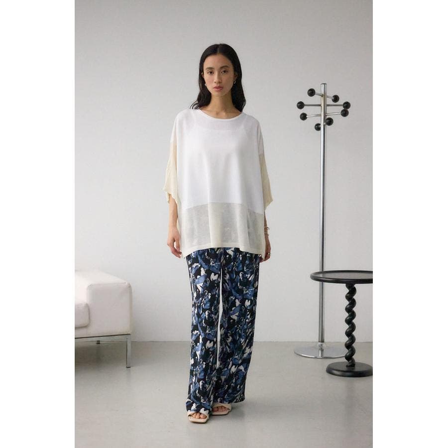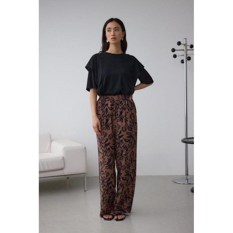 表面感のある生地にオリジナルプリントを施したイージーワイドパンツ。