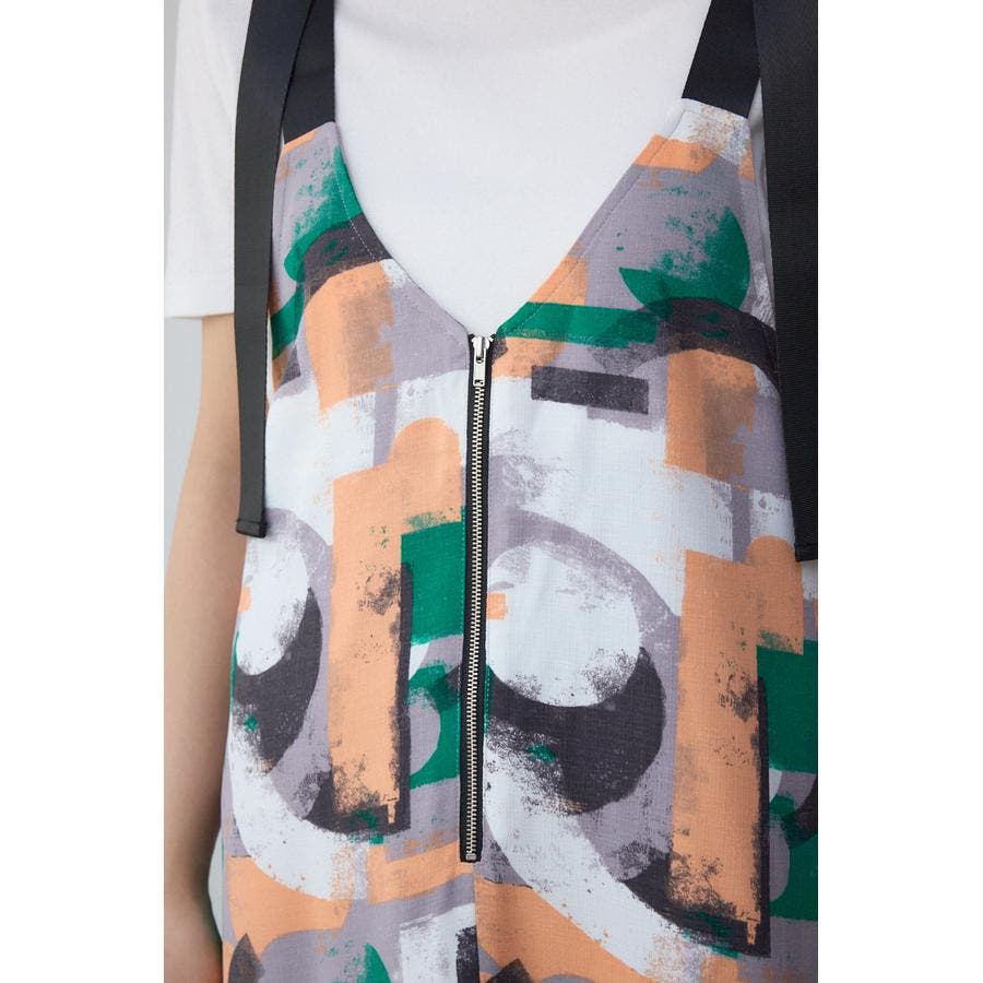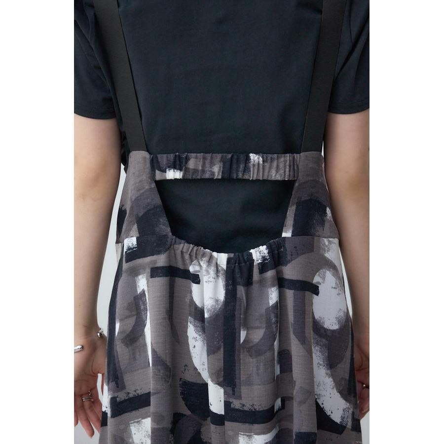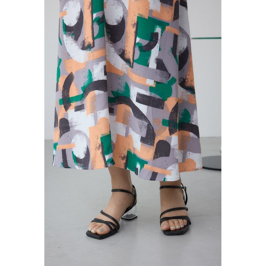 ハンドタッチの幾何学柄プリントを施したフレアワンピース。