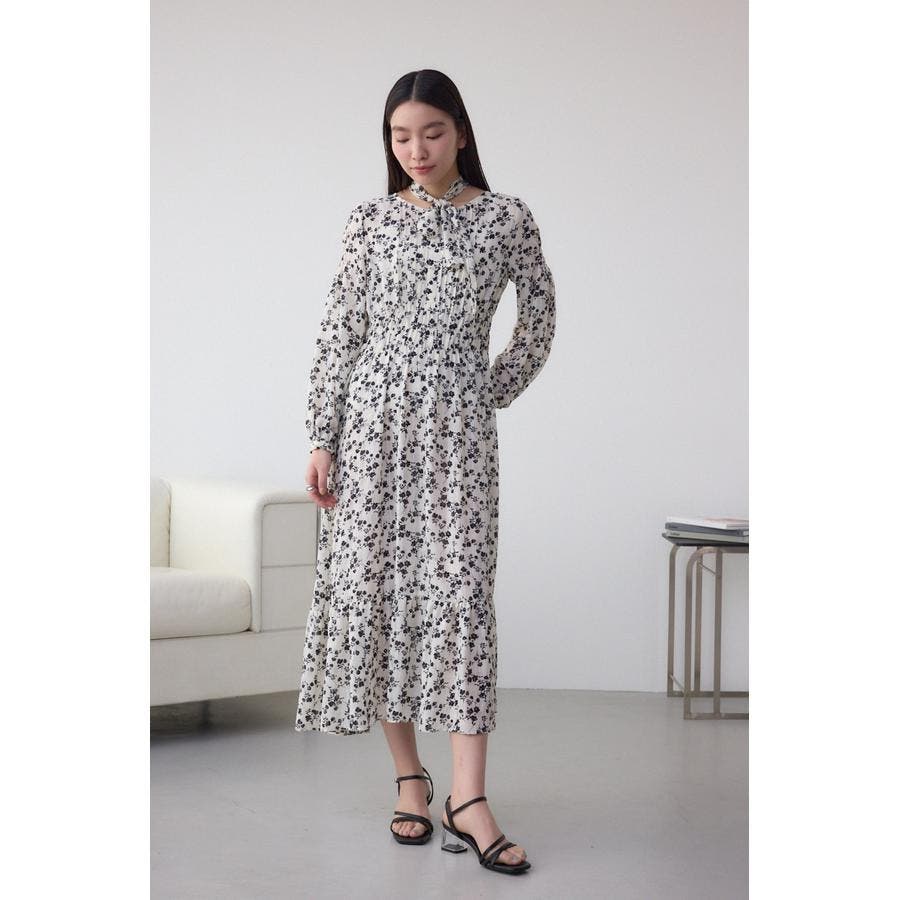 裾はティアード、袖はパフスリーブデザインで細かな仕様までこだわった1枚です。