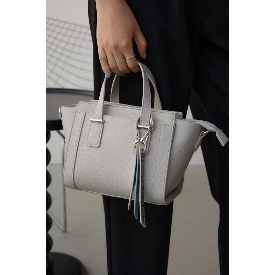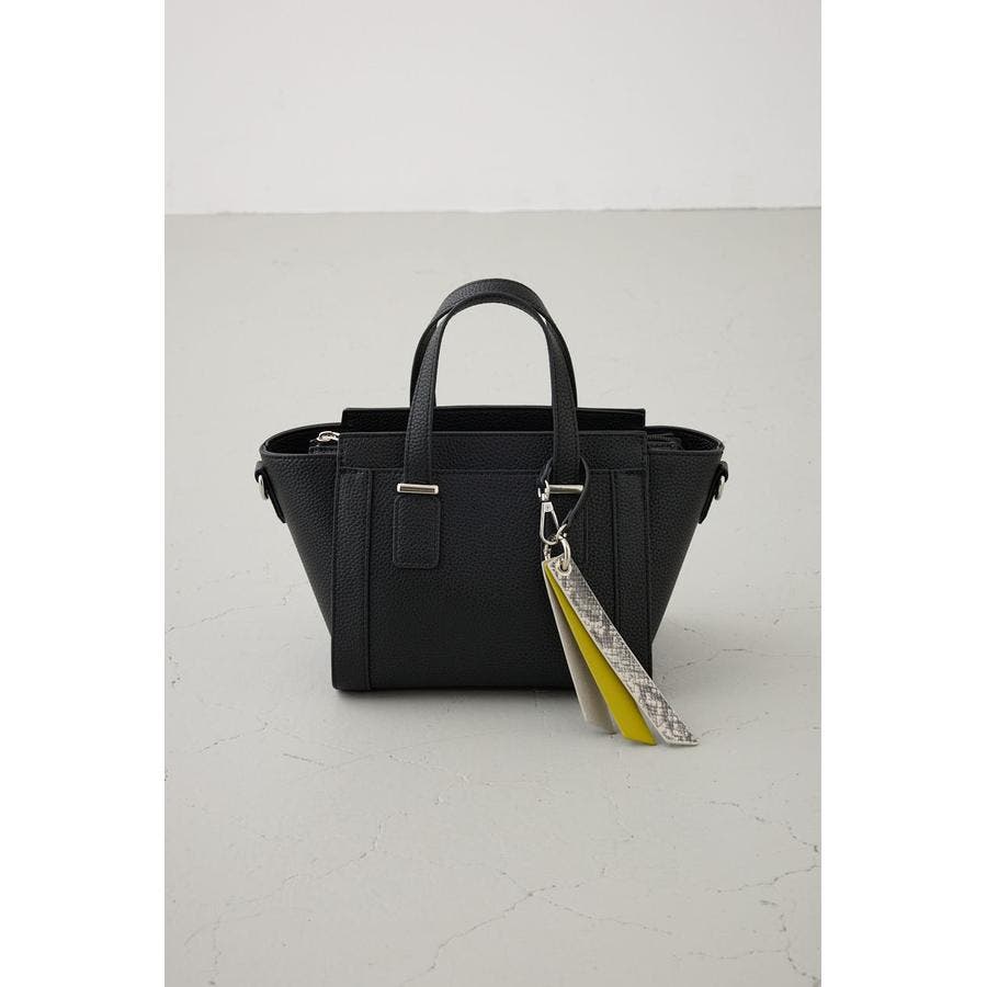 配色カラーとパターンのオリジナルチャームのついた大人バッグです。