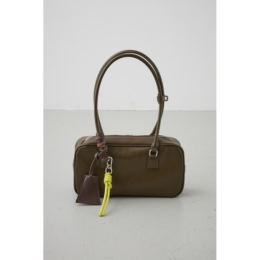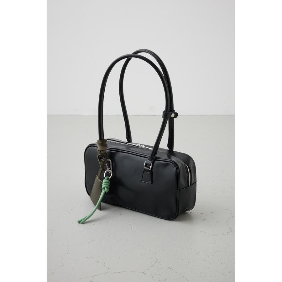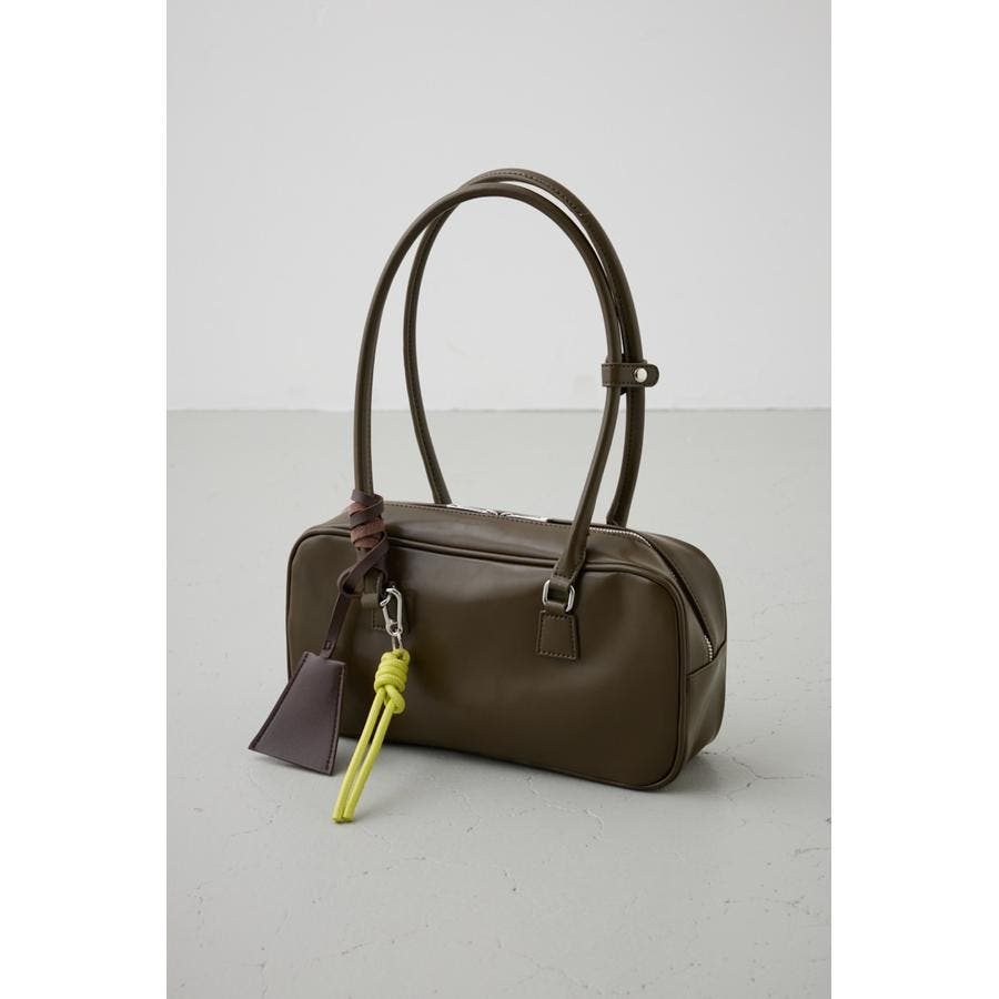 配色のチャームがセットになったトレンドのワイドシルエットのハンドバッグ。