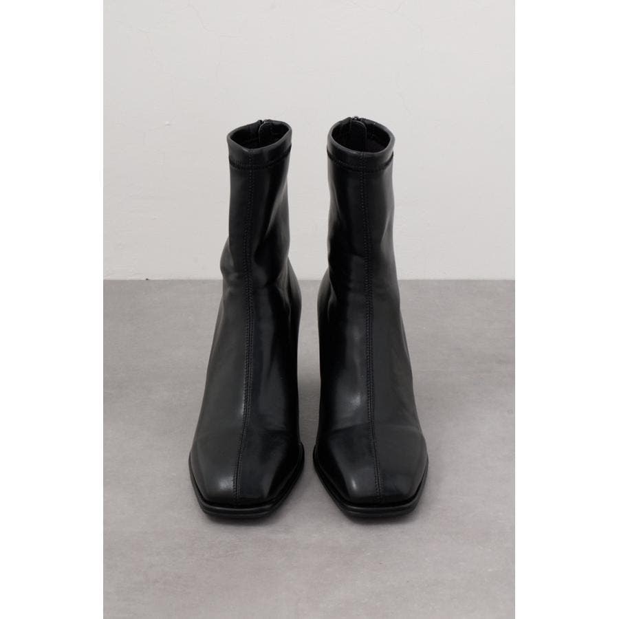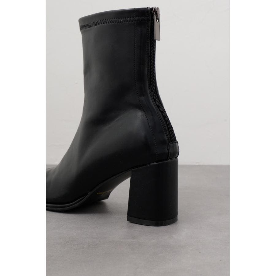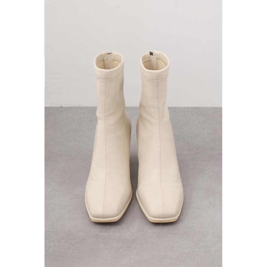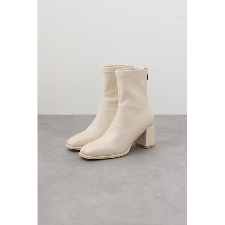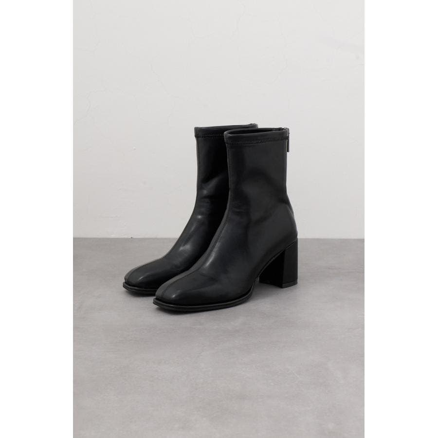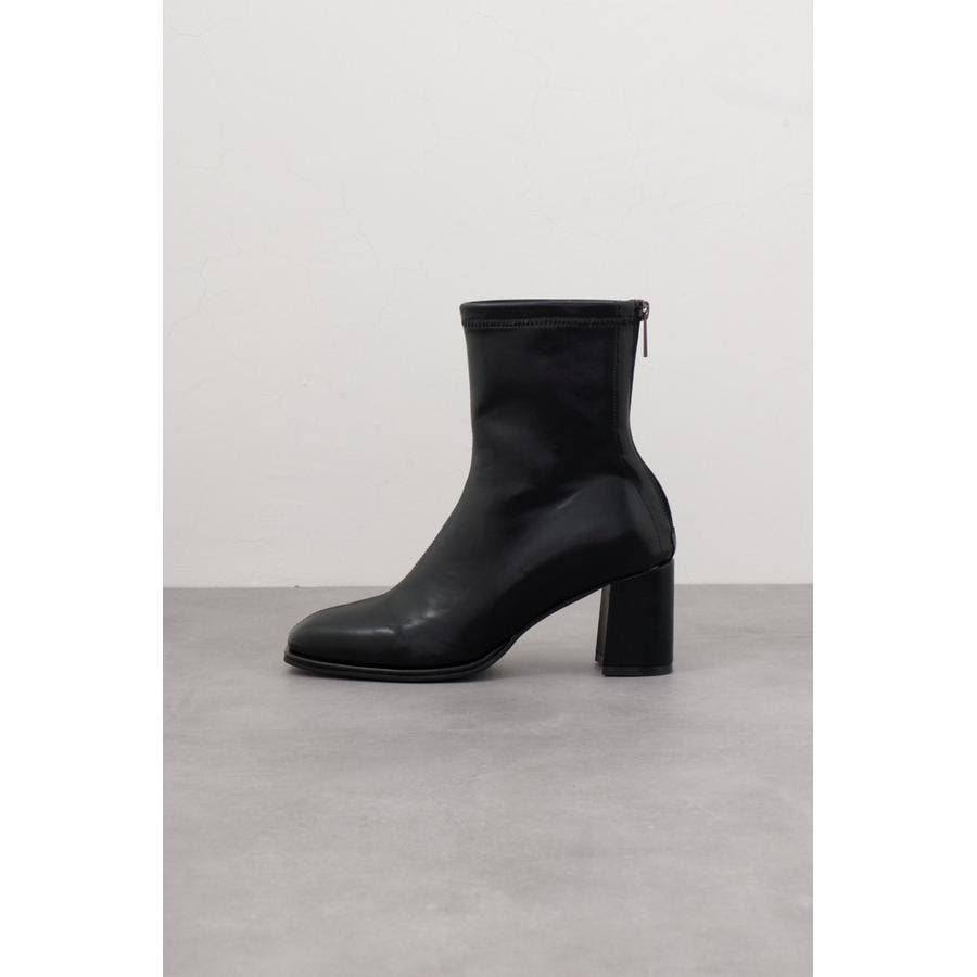 魅力的な美脚ラインを演出するストレッチ合皮のショートブーツ。