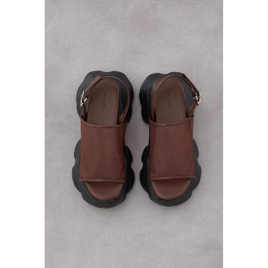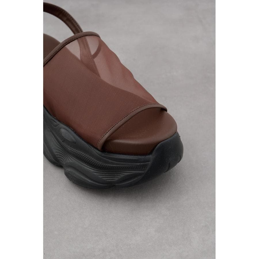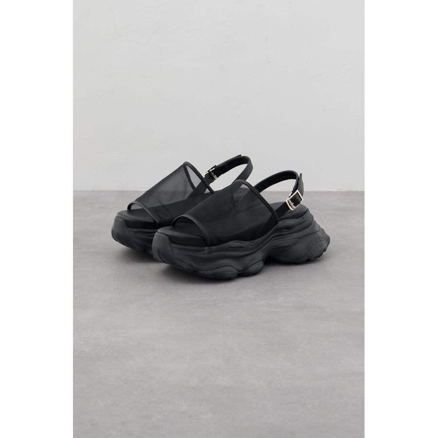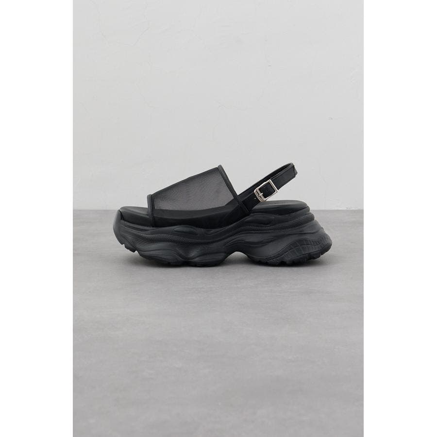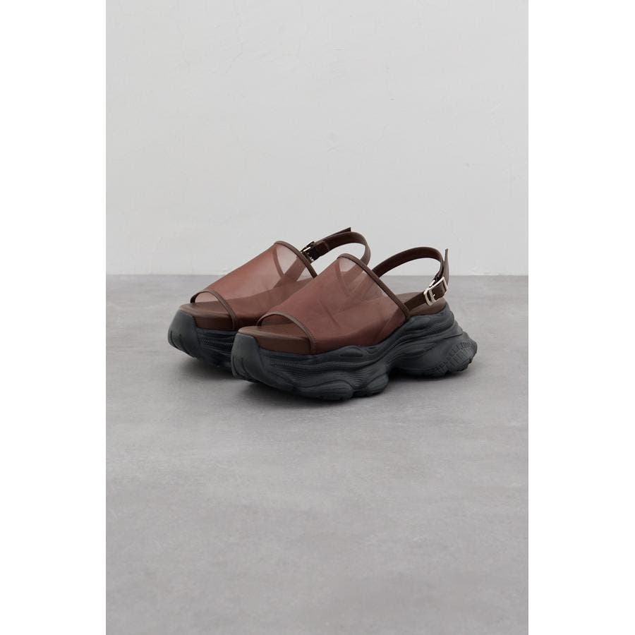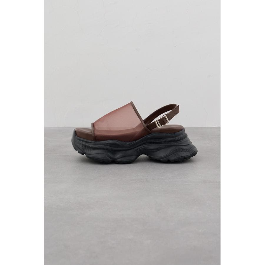 ボリューム感のあるスニーカーソールを使用したシアー素材のサンダル。