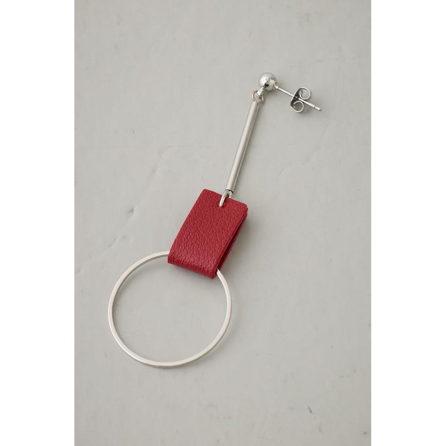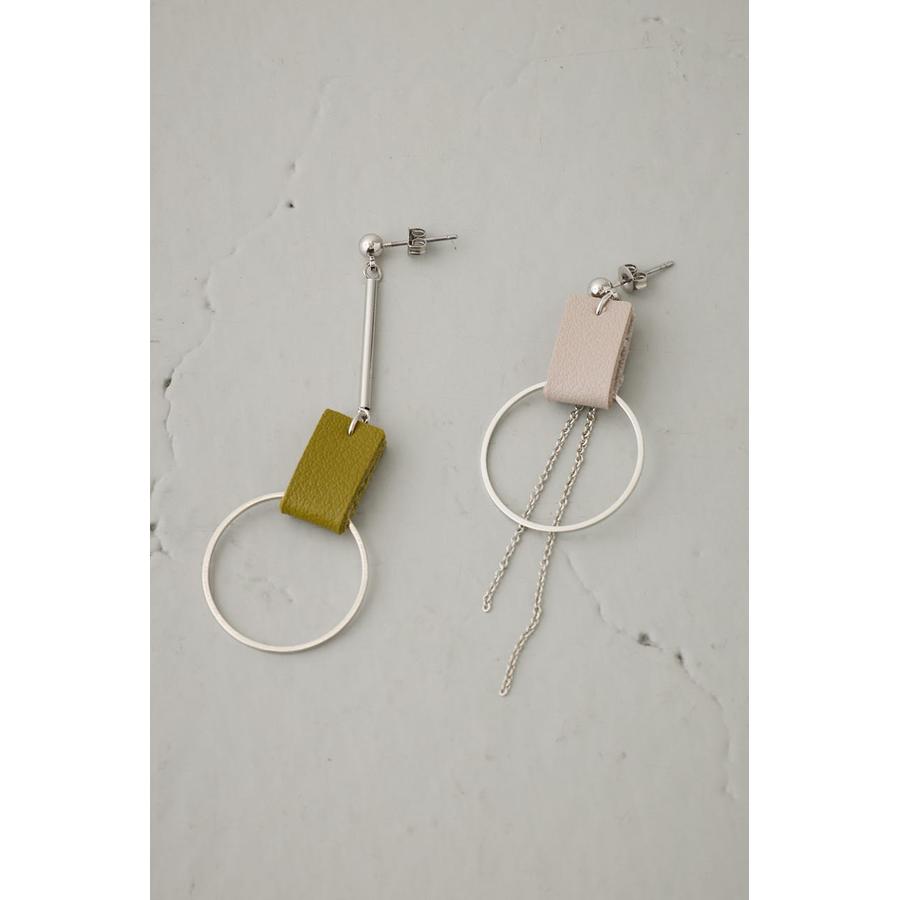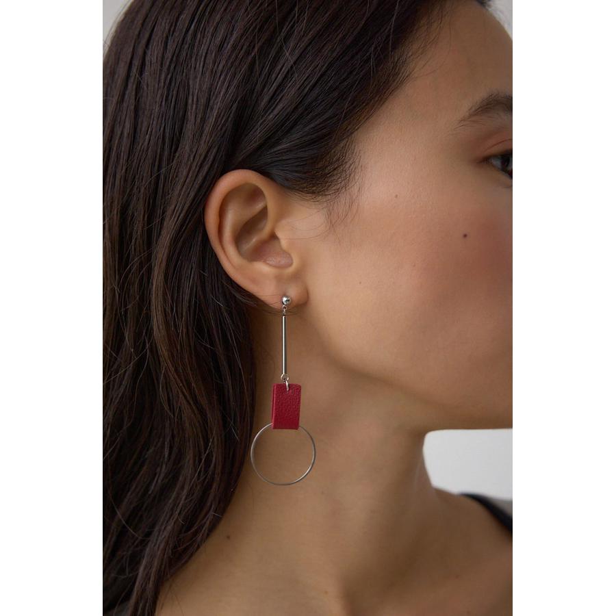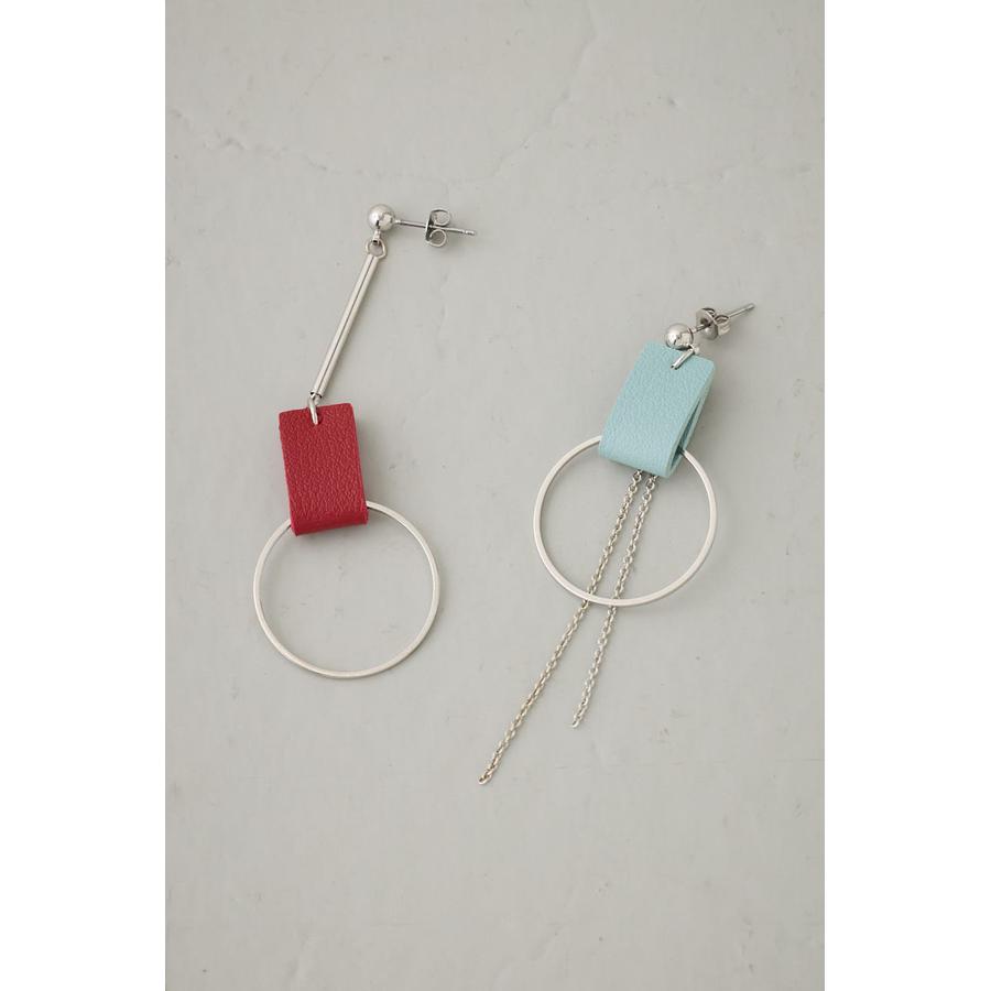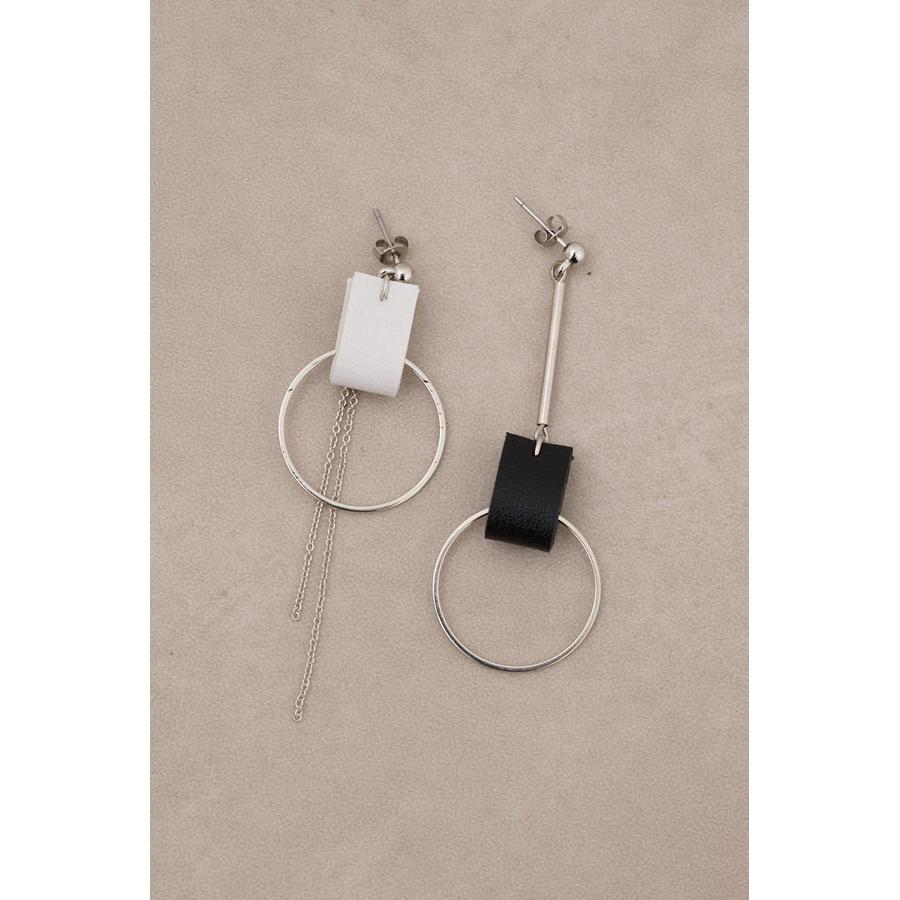 コントラストの効いたカラー使いのレザーにメタルパーツの組み合わせがポイントのピアス。