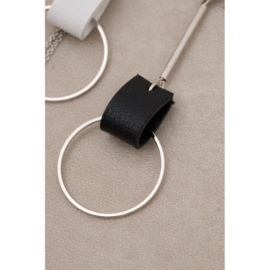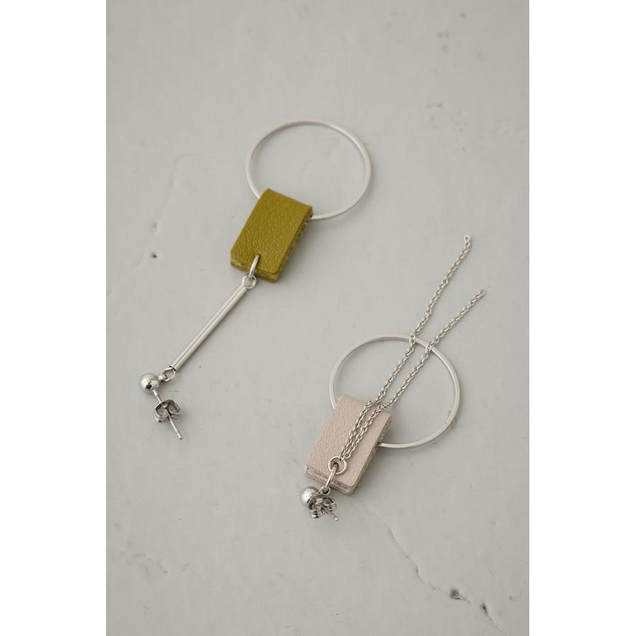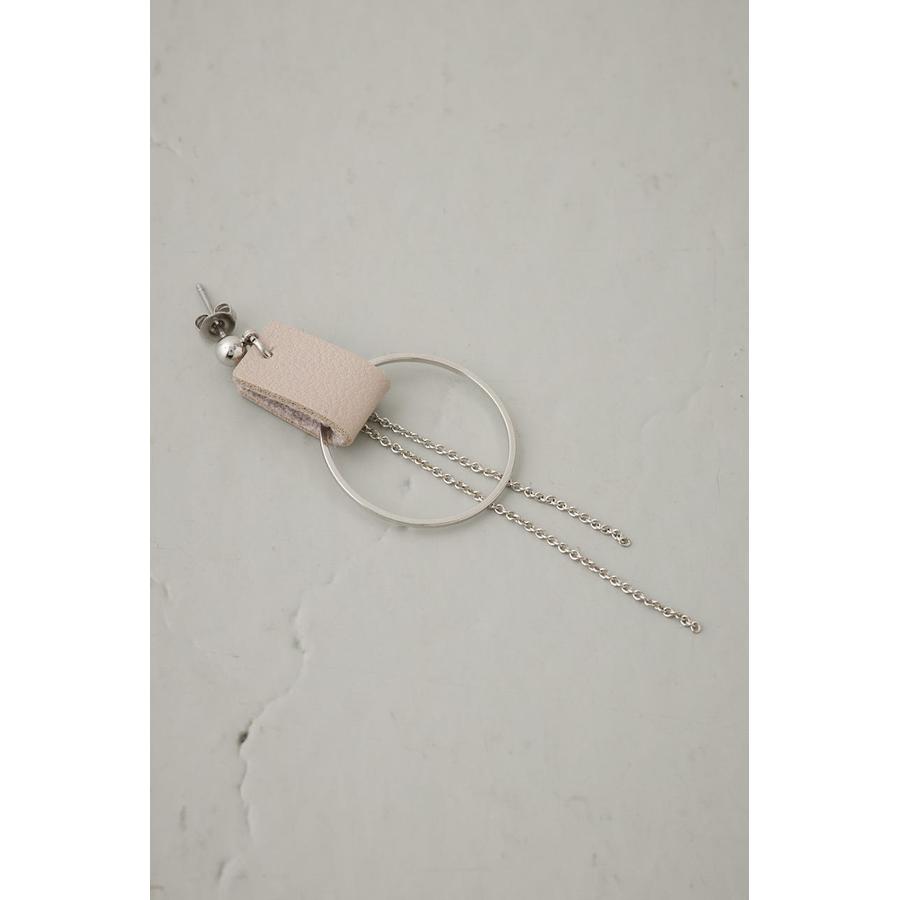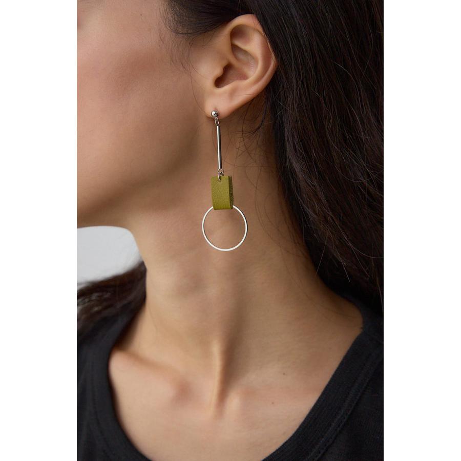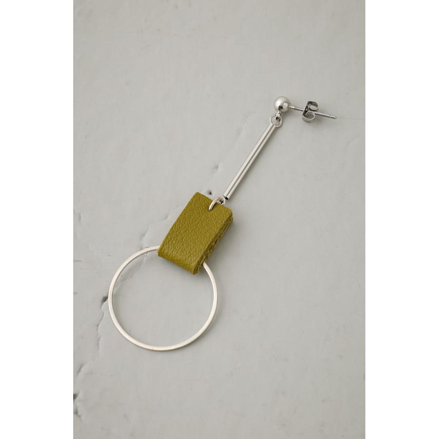 コントラストの効いたカラー使いのレザーにメタルパーツの組み合わせがポイントのピアス。