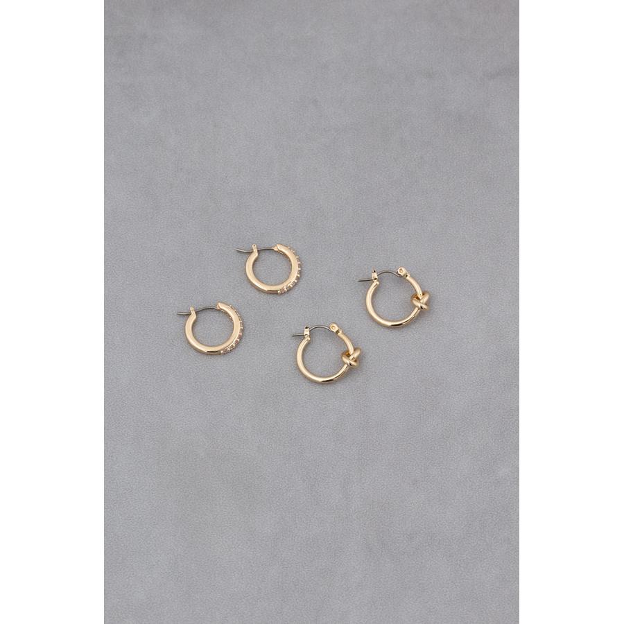 人気のノットデザインと、ラインストーンをあしらったデザインの2種類のピアスが4個セットになっています。