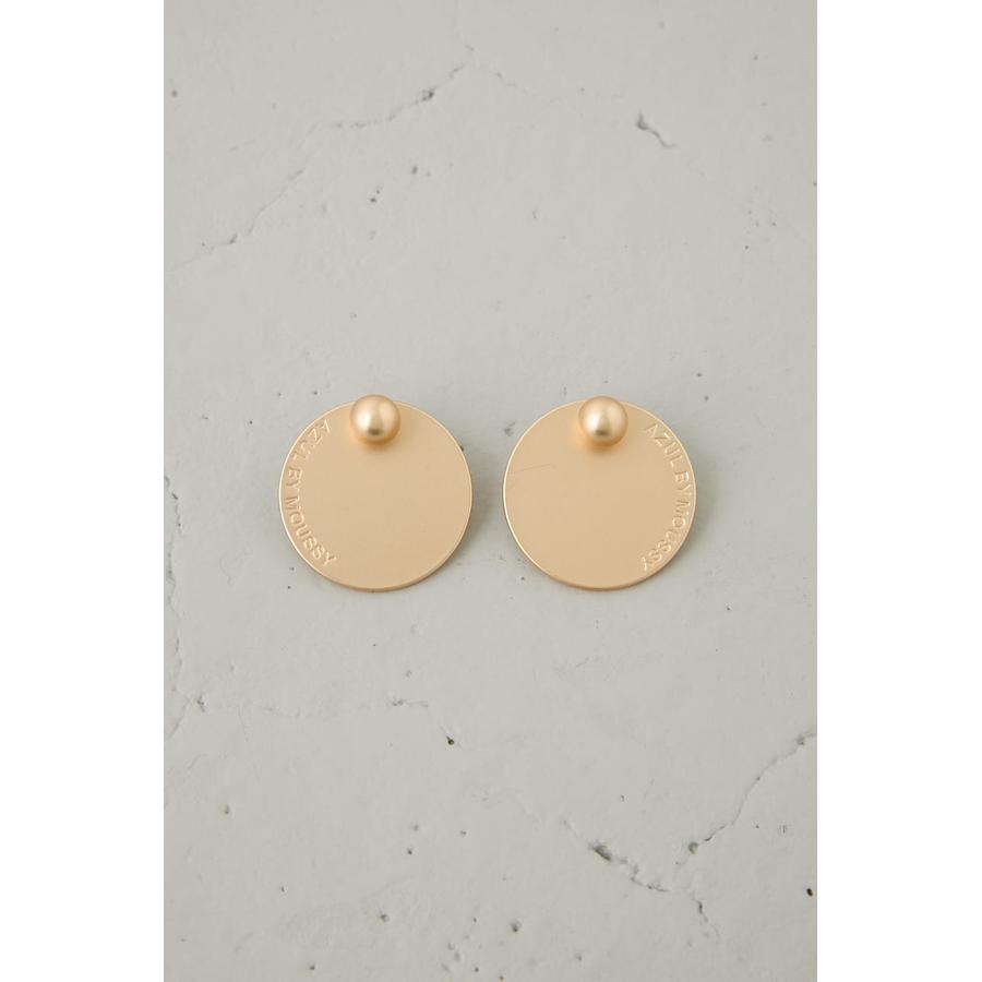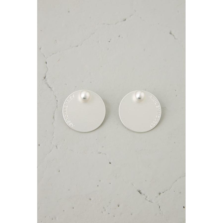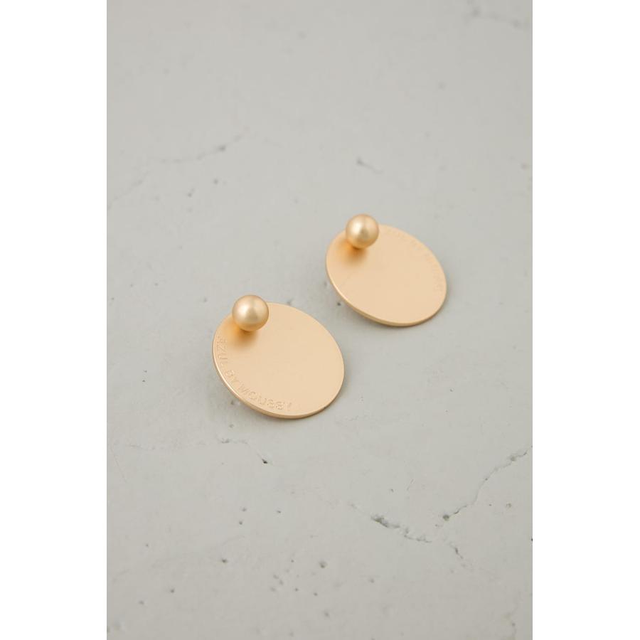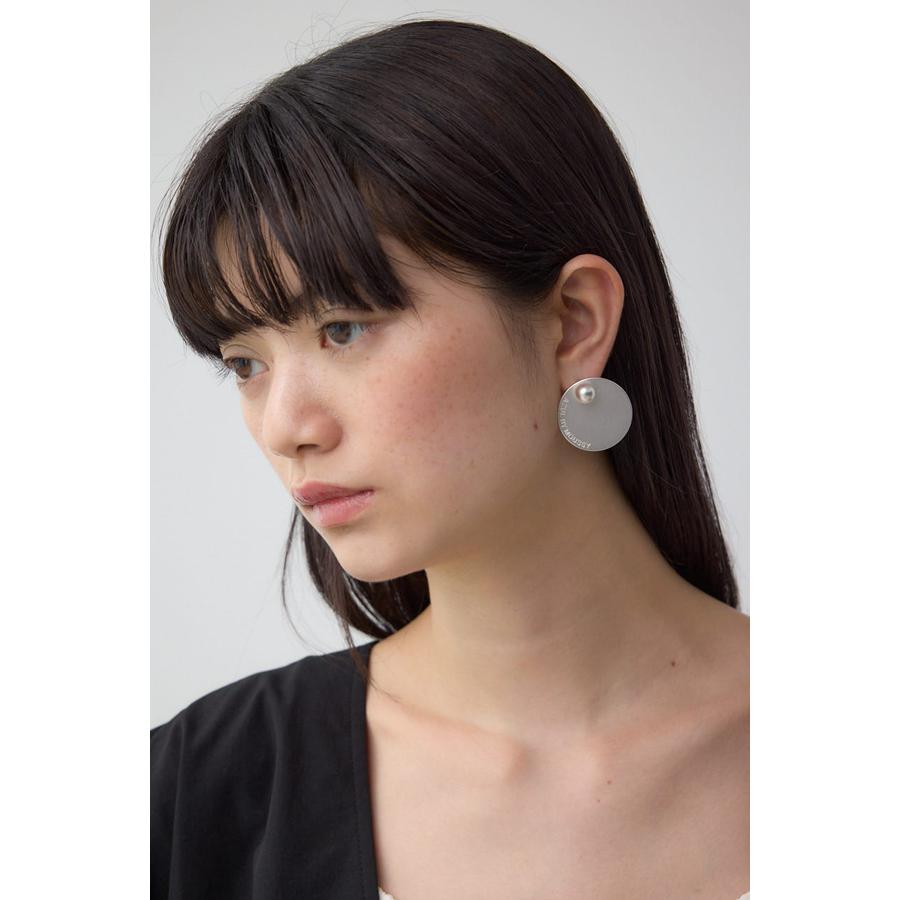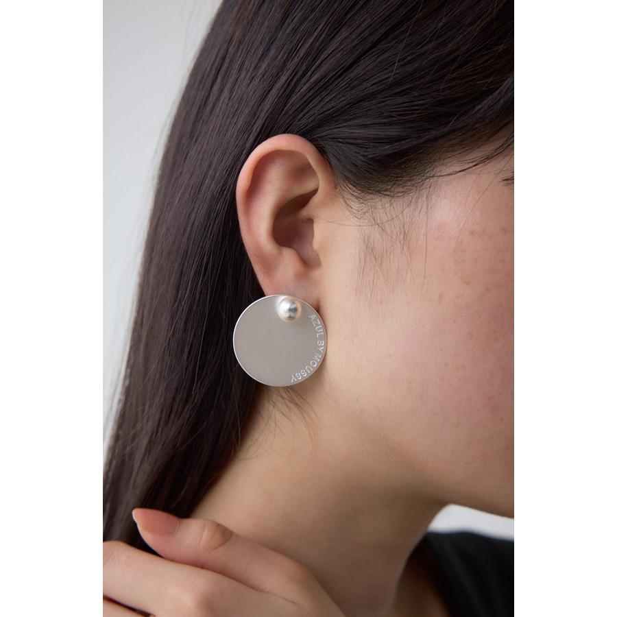 大ぶりなサークル型プレートにロゴをさりげなくあしらった、シンプルながらも存在感のあるピアス。