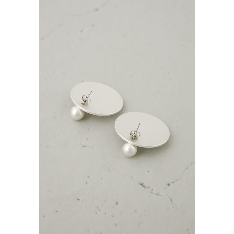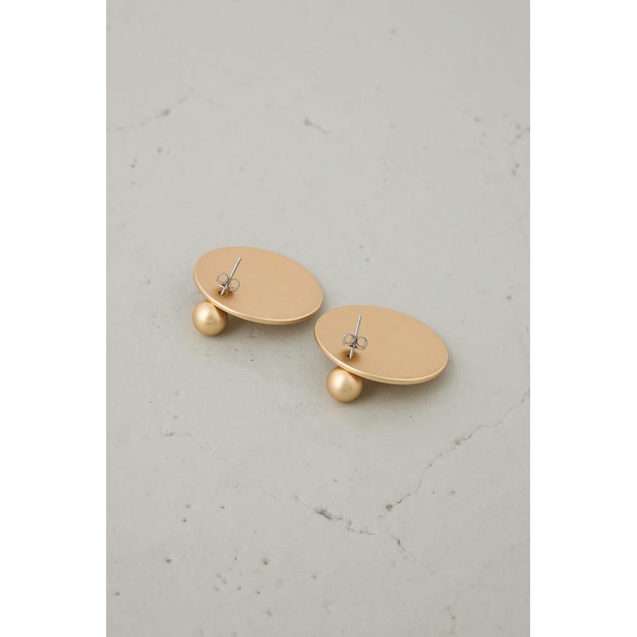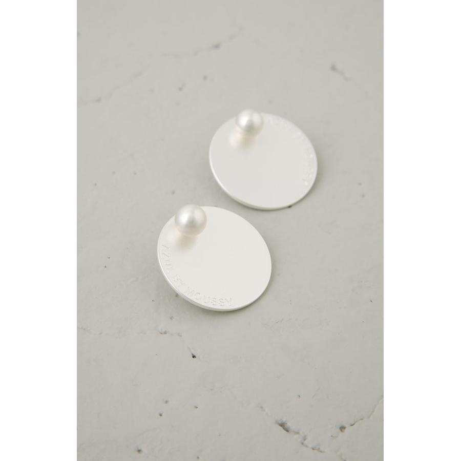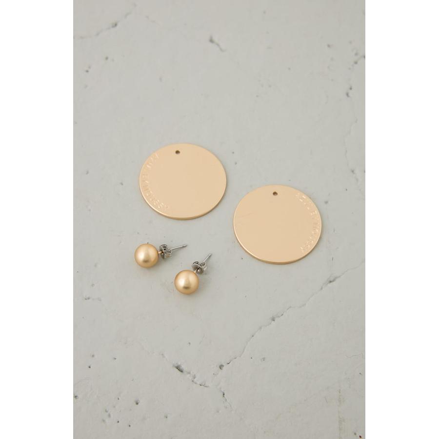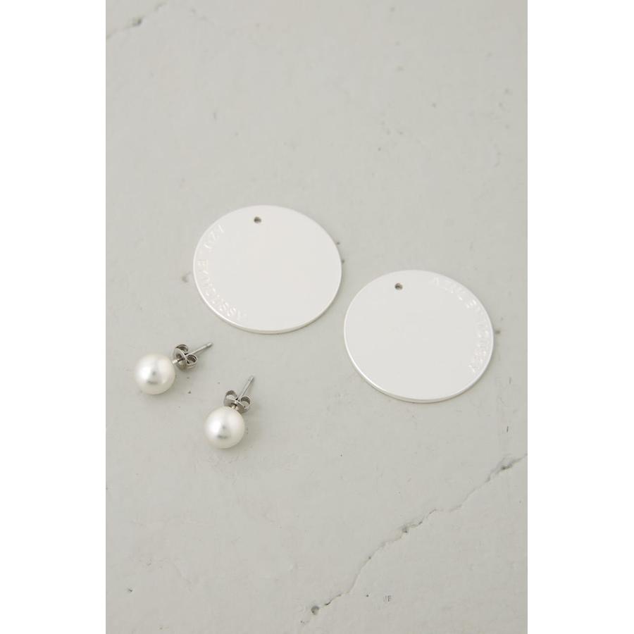 大ぶりなサークル型プレートにロゴをさりげなくあしらった、シンプルながらも存在感のあるピアス。