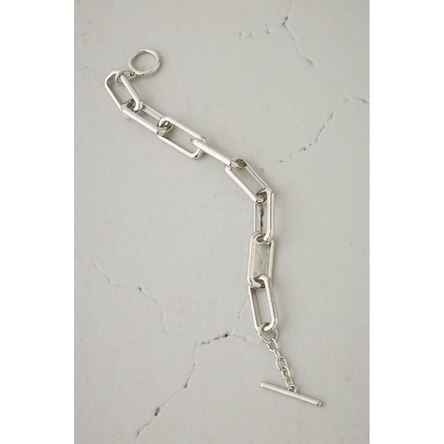 程よい太さのチェーンを連ねたブレスレットは、無駄を削がれたミニマルなデザインながら、しっかりとした存在感を放つアイテム。