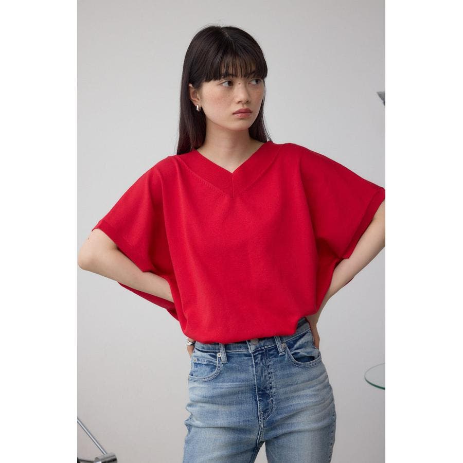 Vネックワイドルーズニット