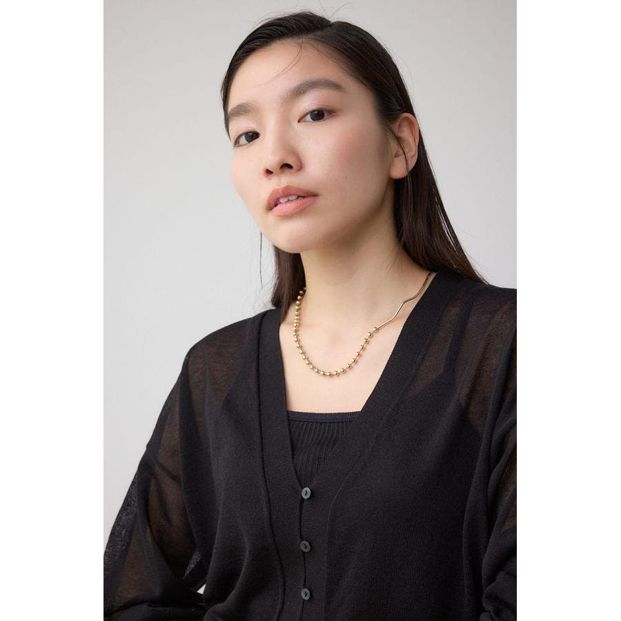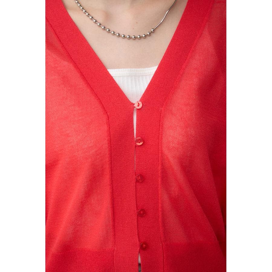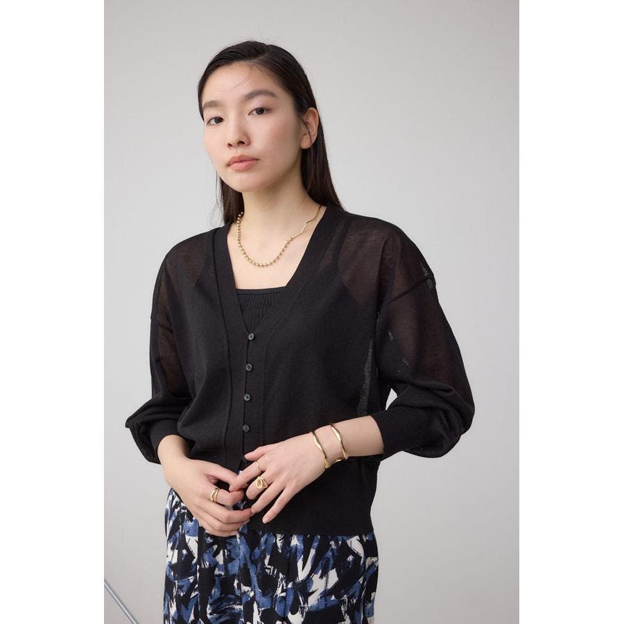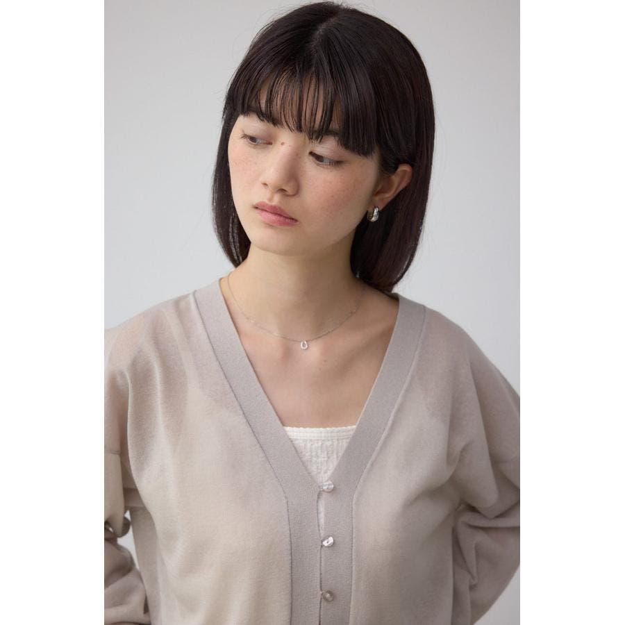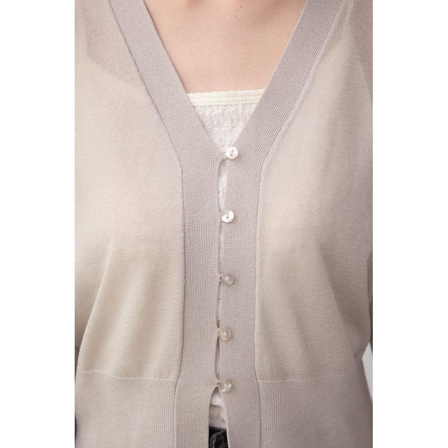 ボタンディティールでシンプルながらも、こなれ感のあるシアーカーディガン。