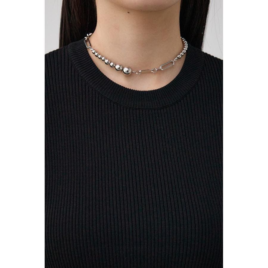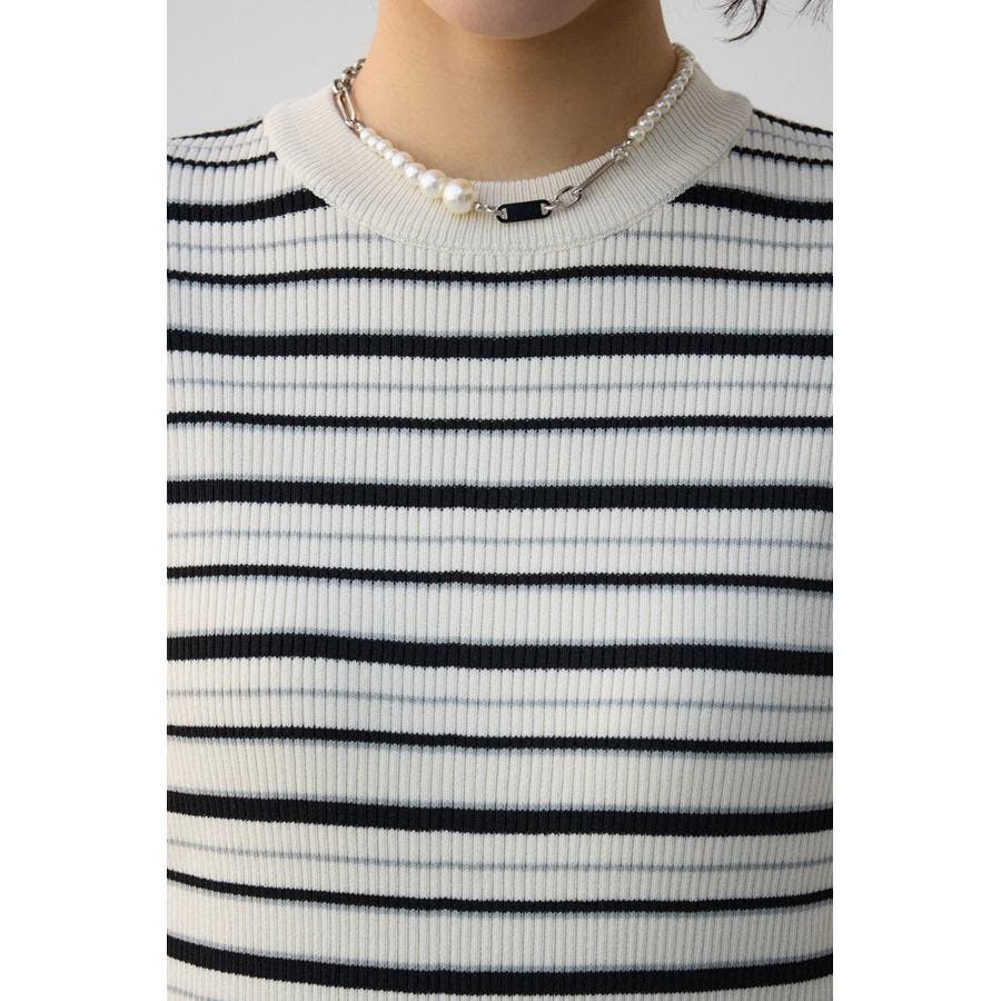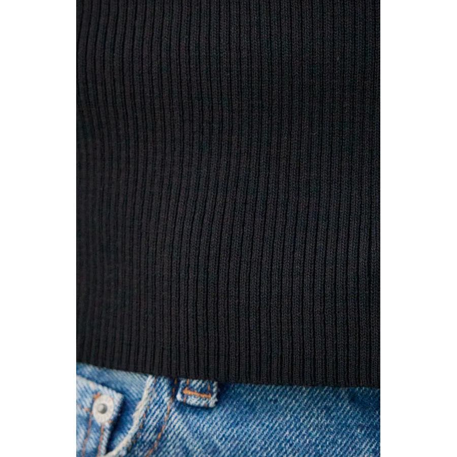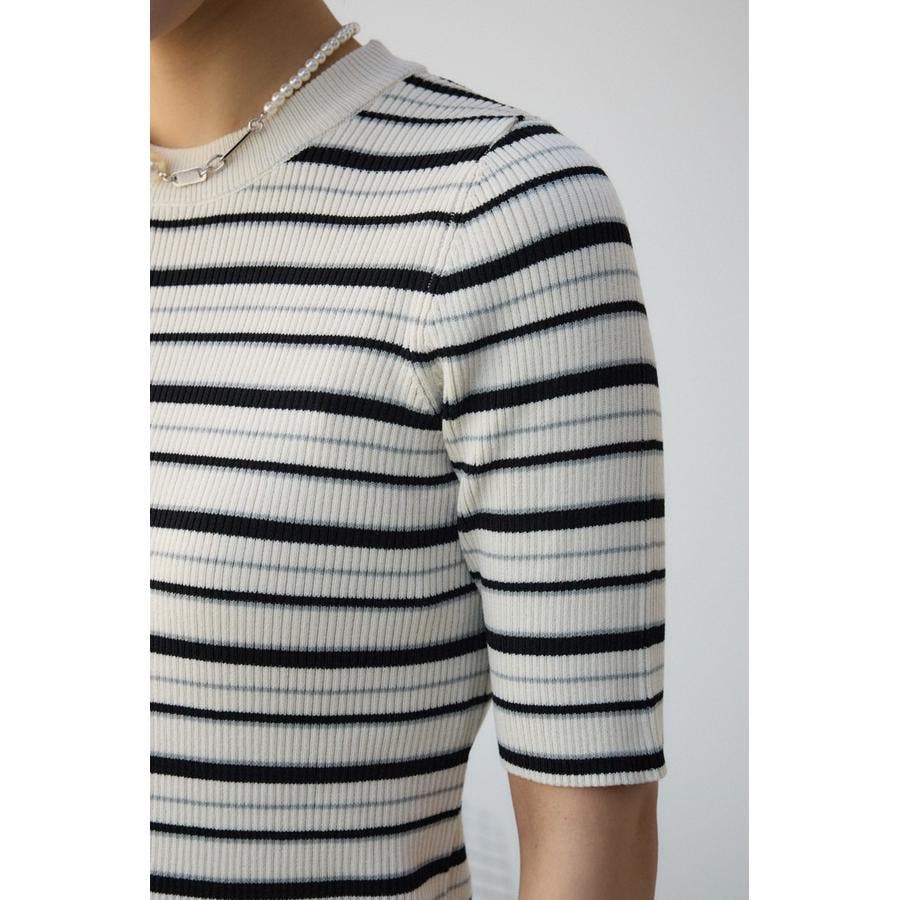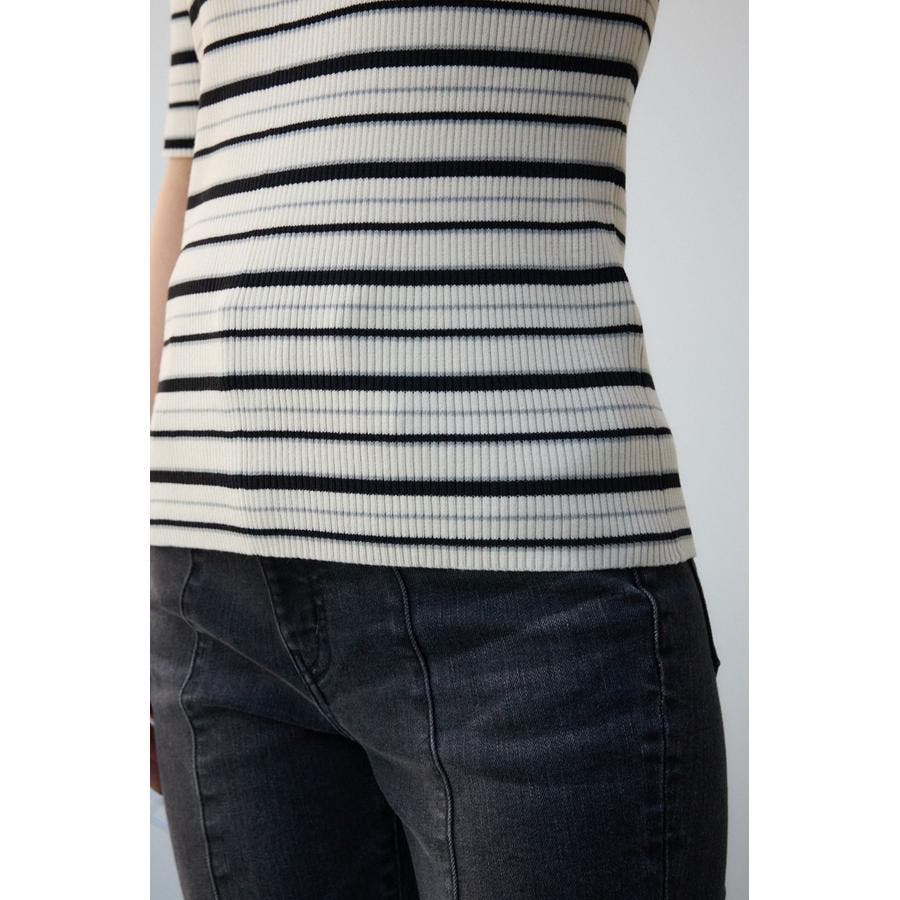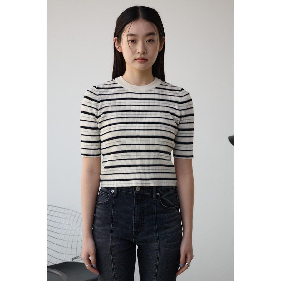 タイトシルエットのクルーネックデザインのリブニットトップス。