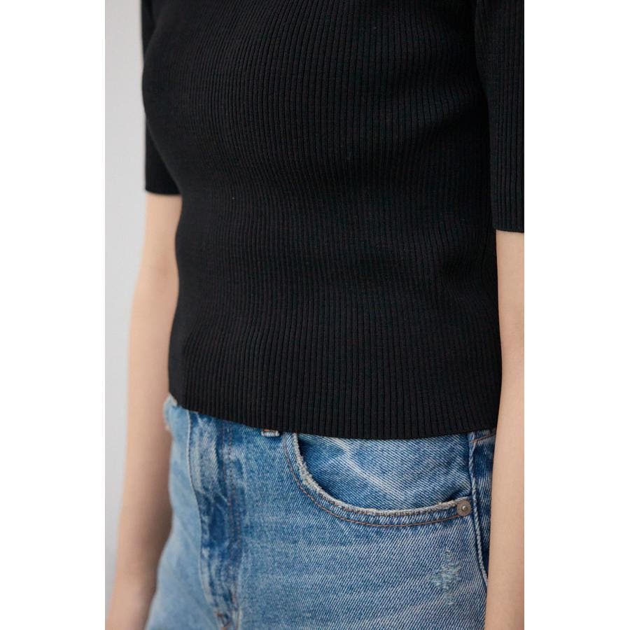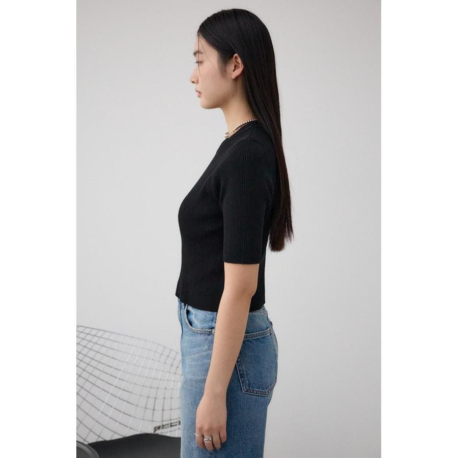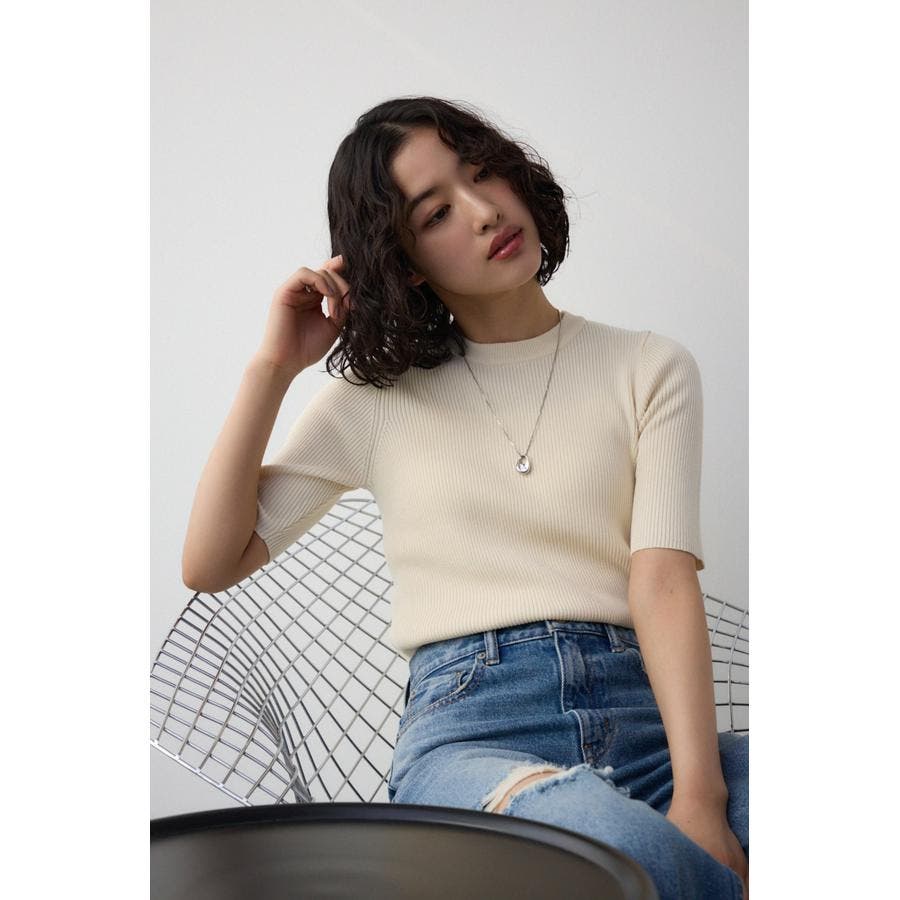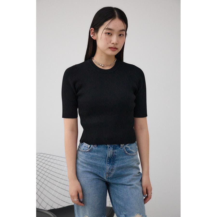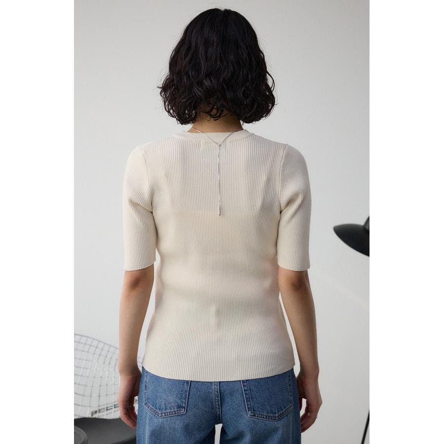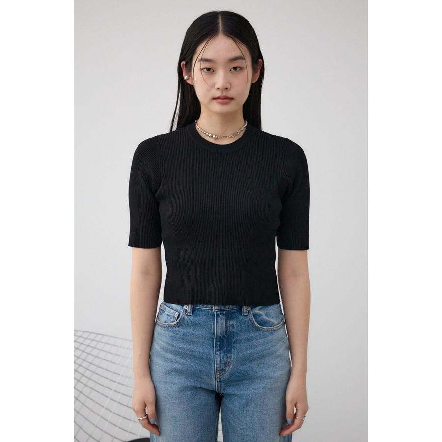 ■ハーフスリーブクルーネックリブトップス